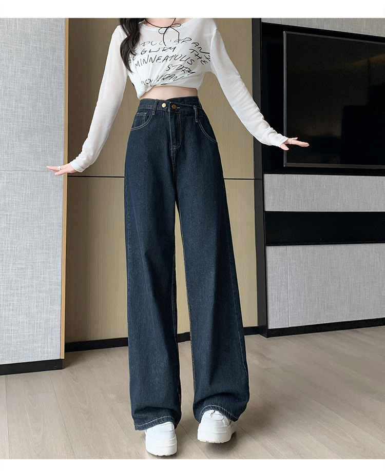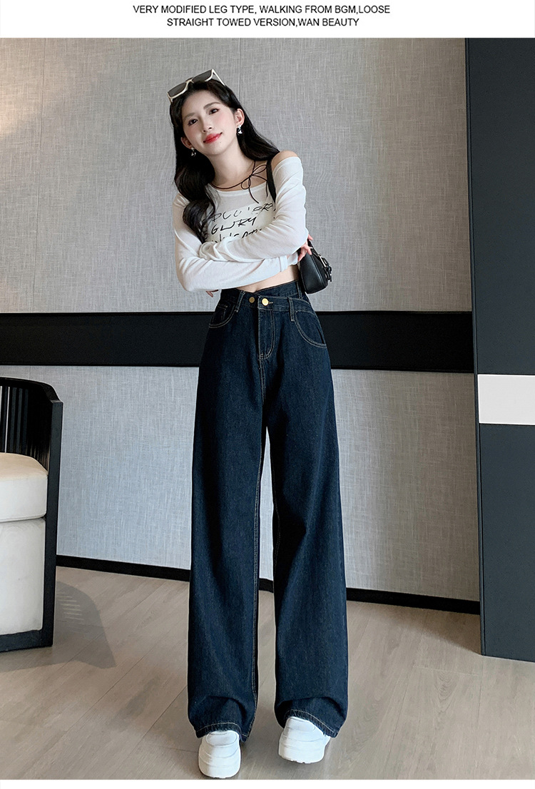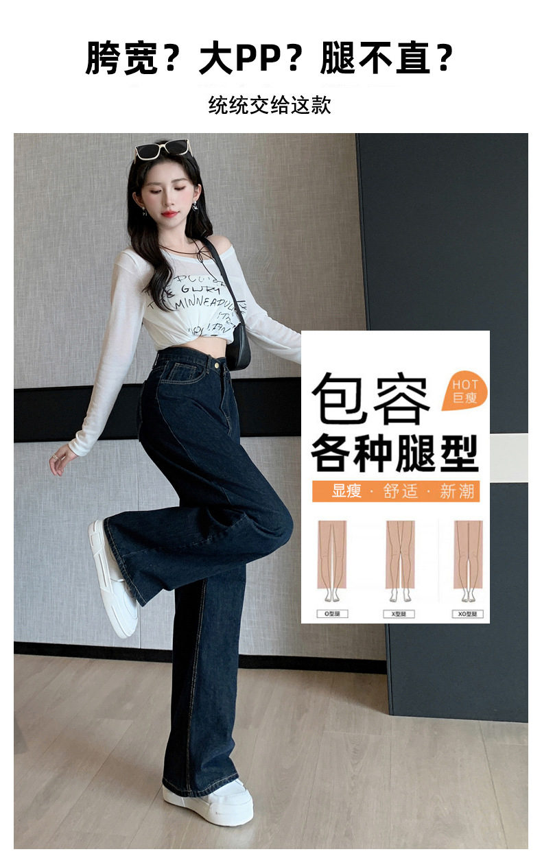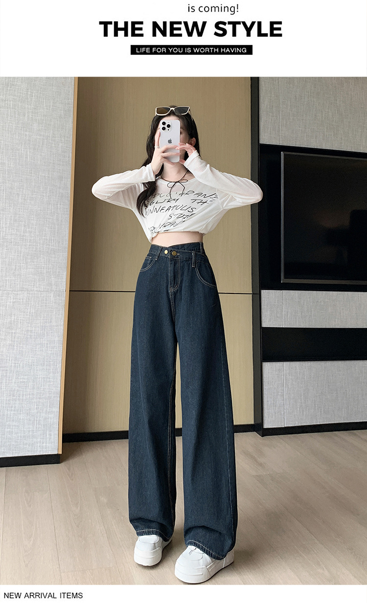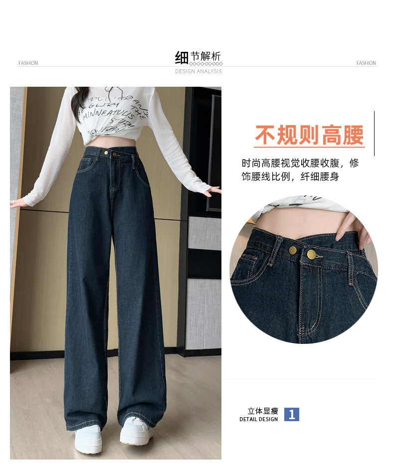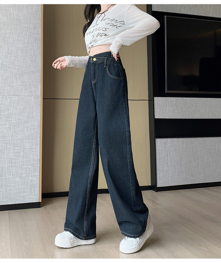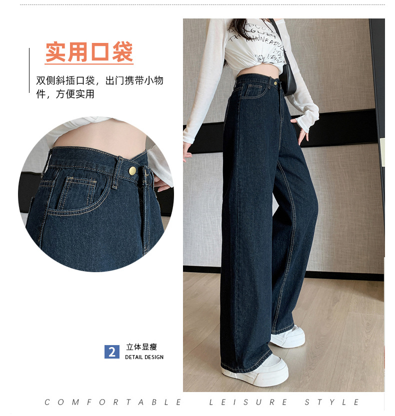 春季新款2025韩版大码胖妹妹宽松不规则高腰显瘦阔腿牛仔裤女