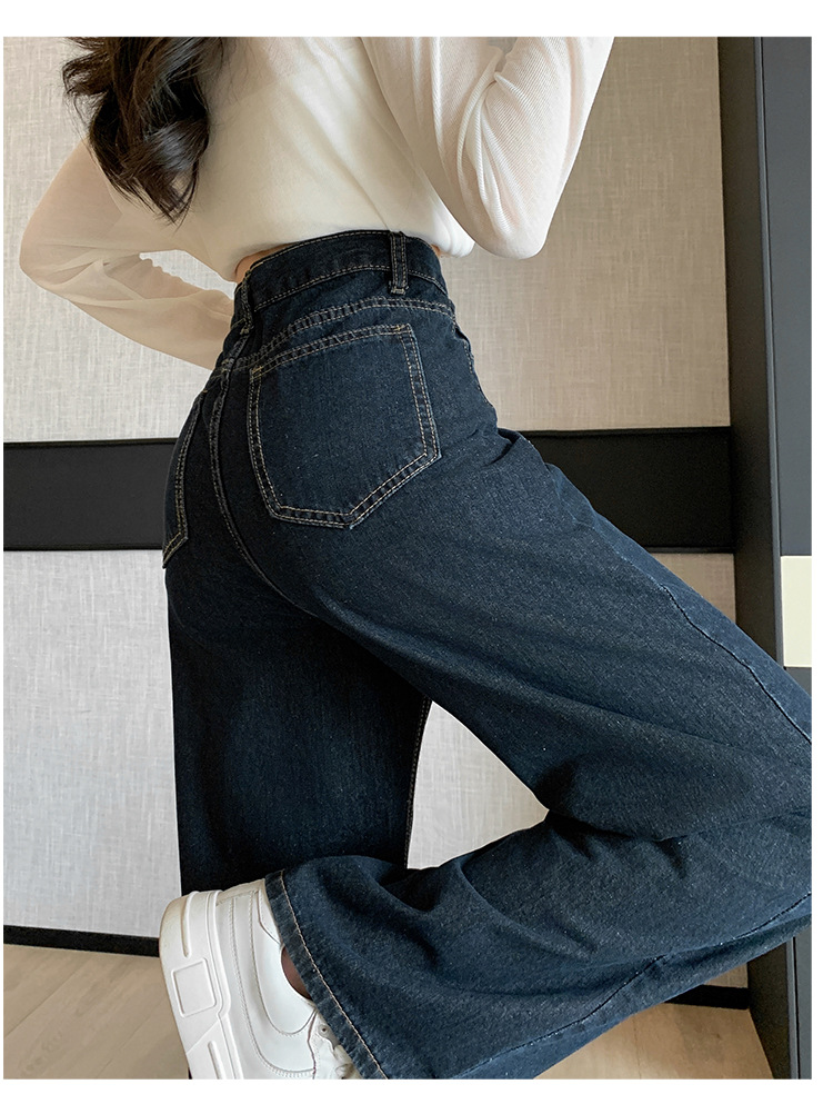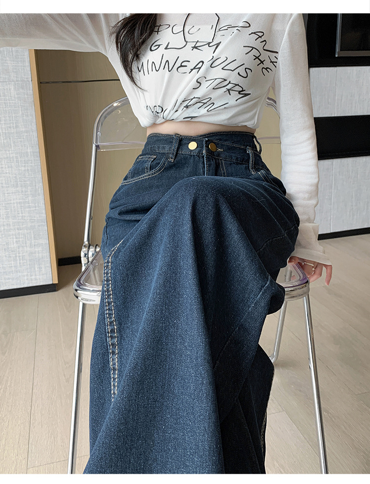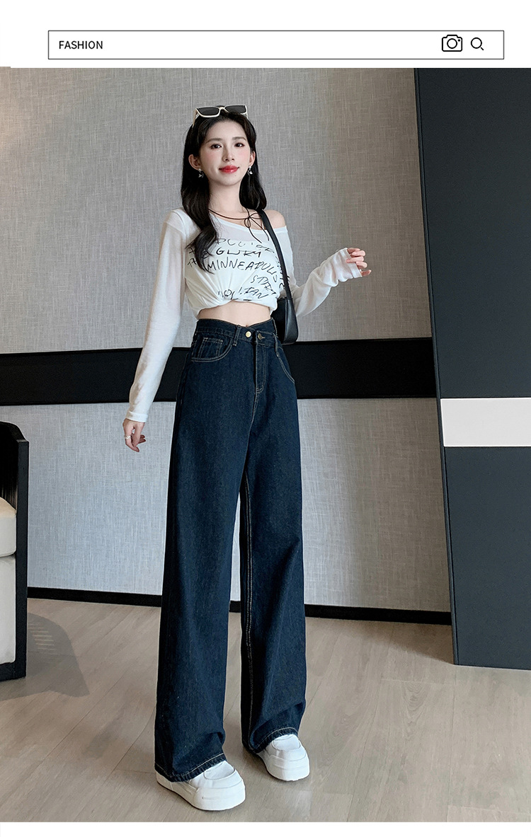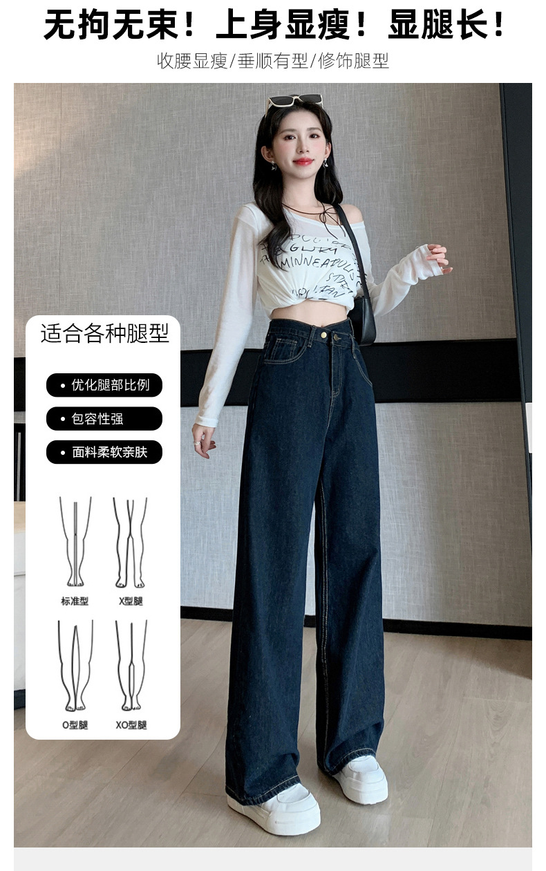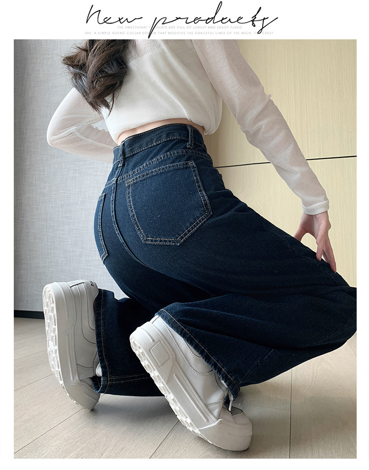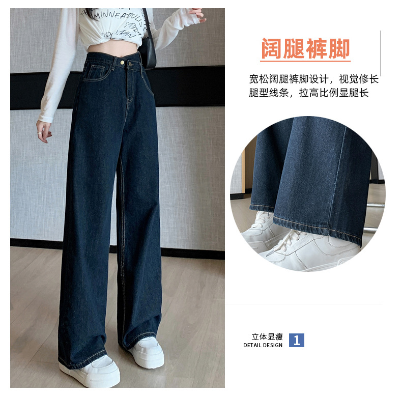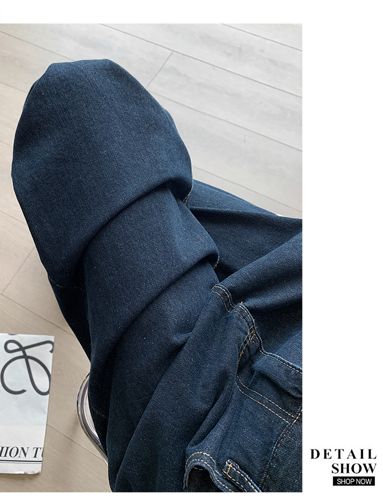 春季新款2025韩版大码胖妹妹宽松不规则高腰显瘦阔腿牛仔裤女