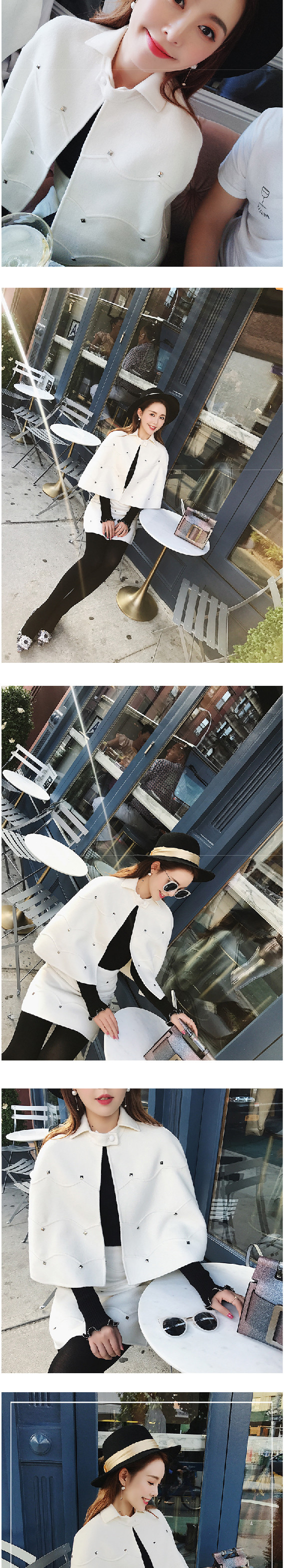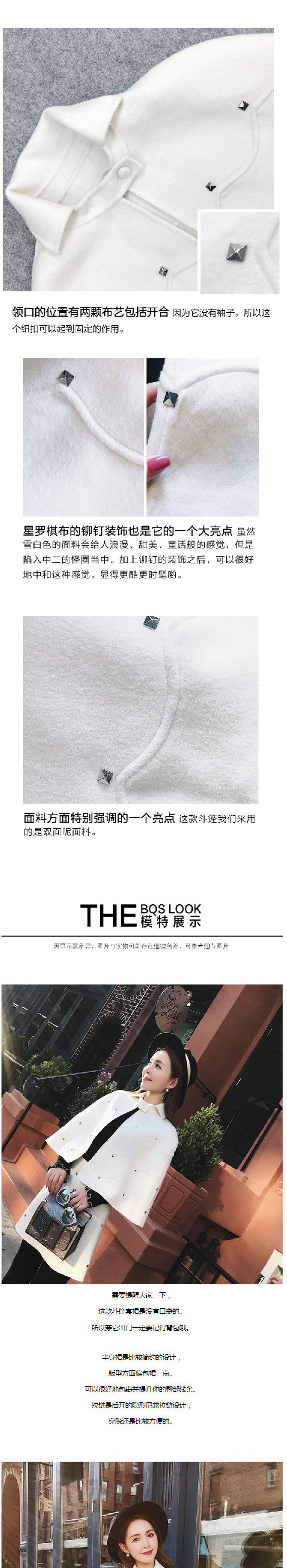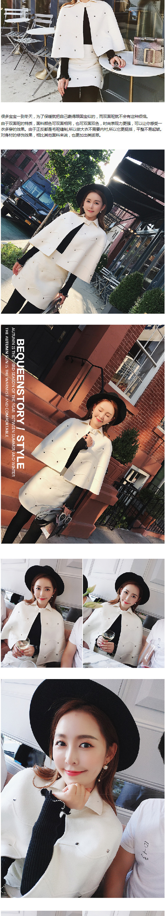 余潇潇秋冬新款铆钉羊毛双面呢斗篷披肩外套女白色半身裙两件套女 商品图4