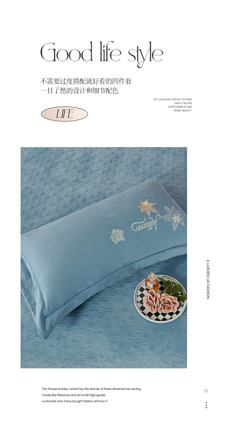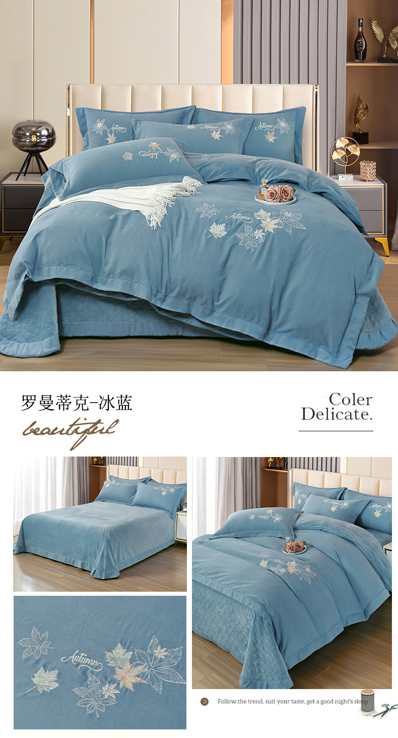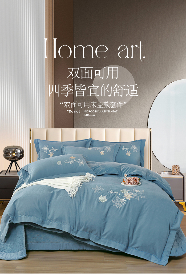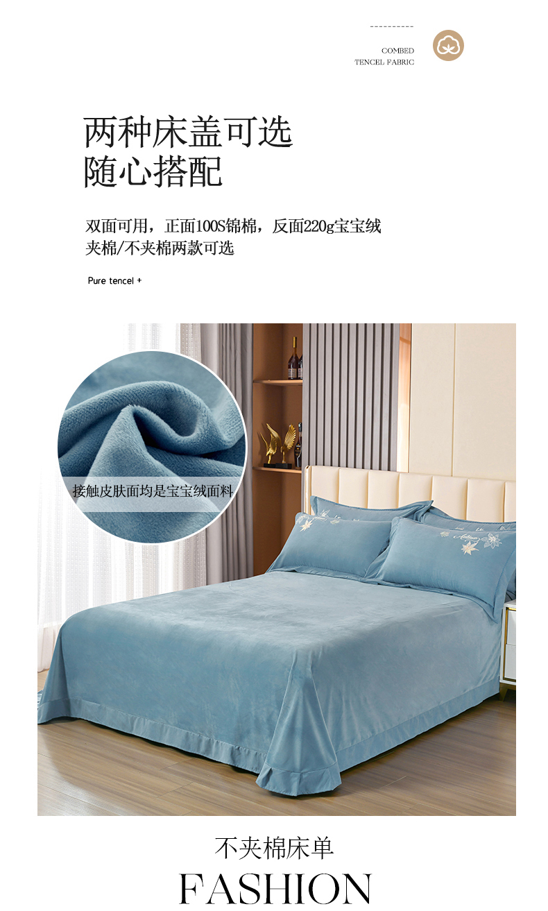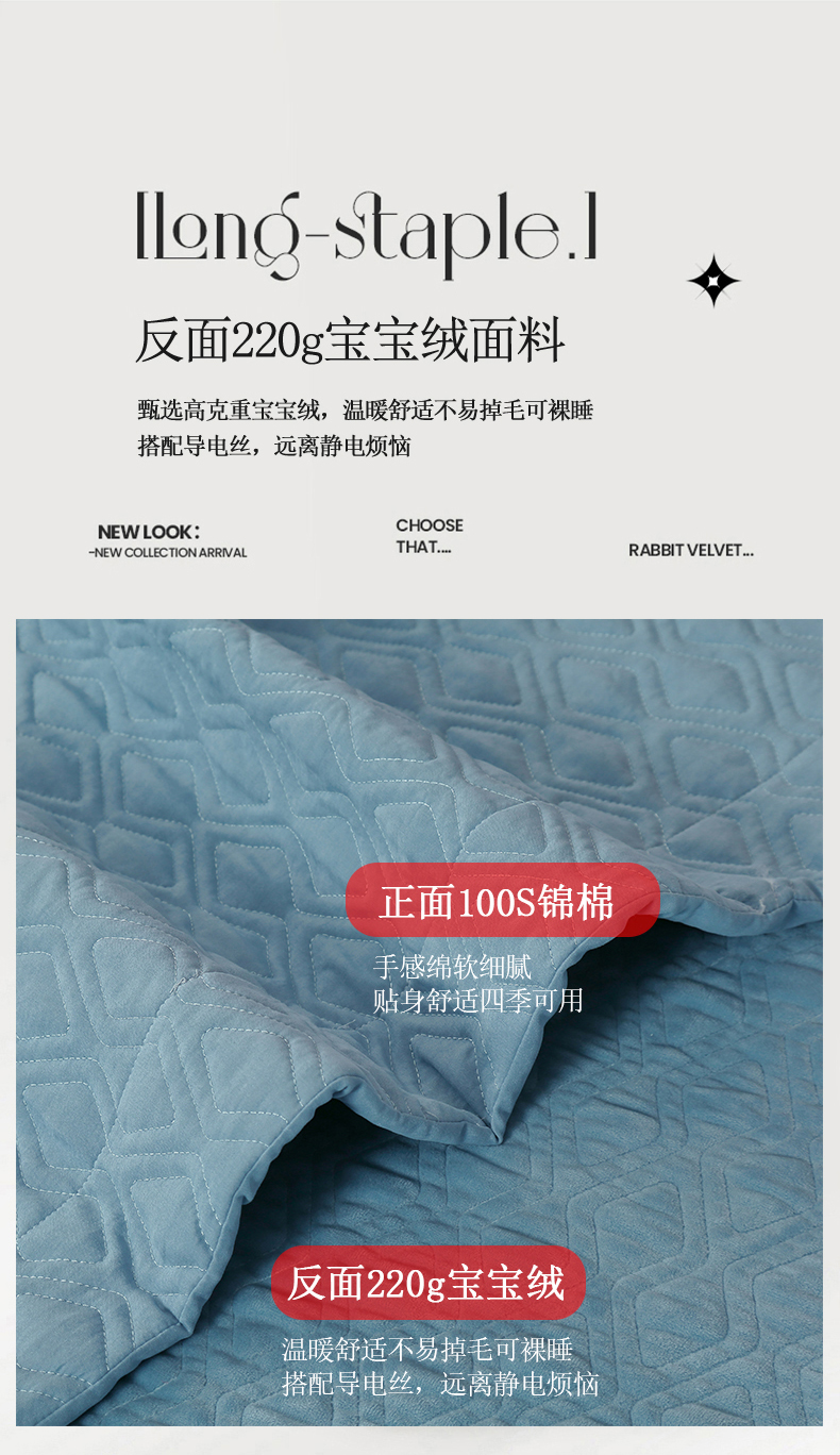 【四季双面可用】双面床盖夹棉四件套 正面锦棉四季用+反面220g宝宝绒秋冬用