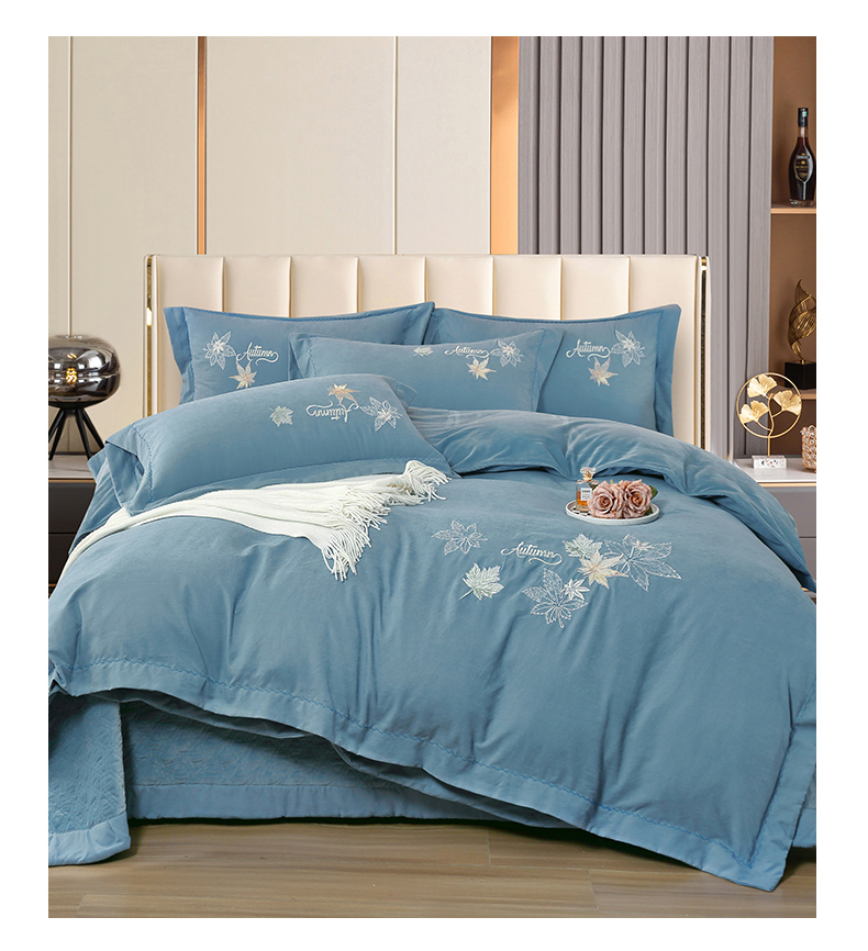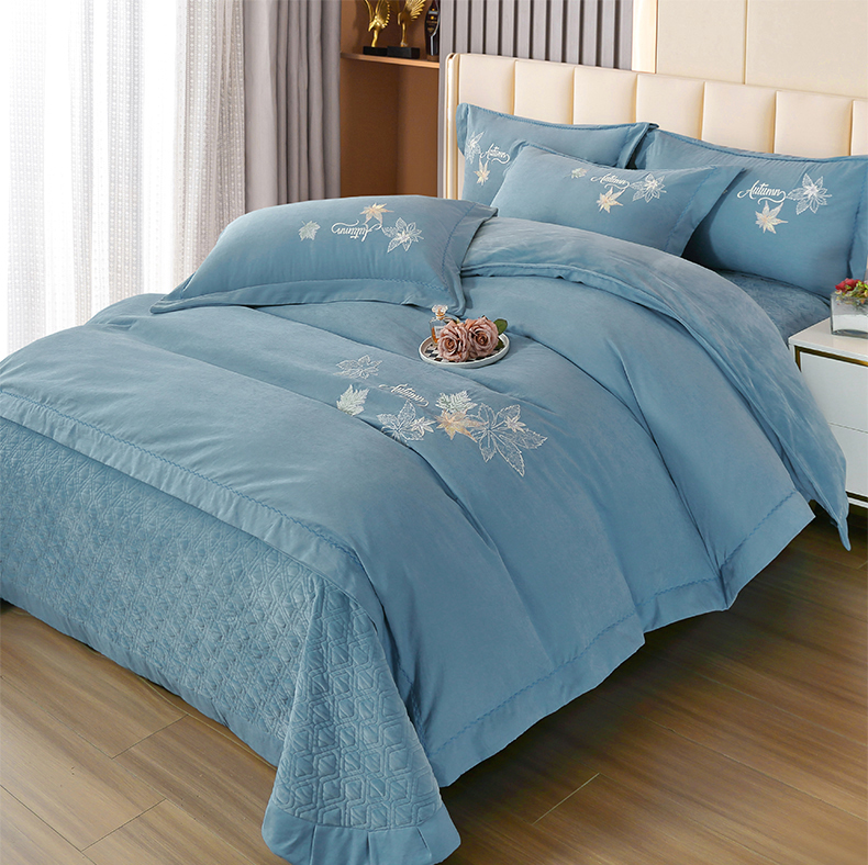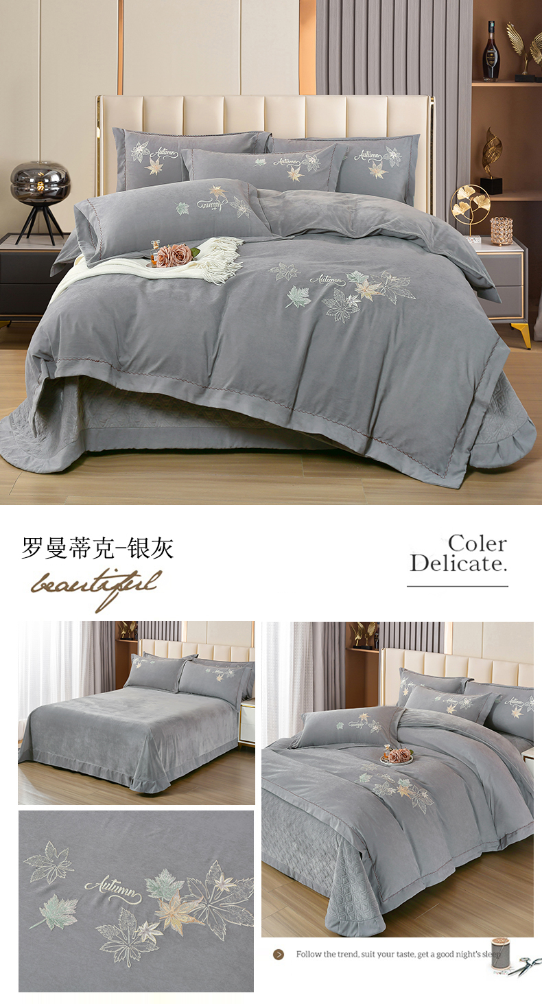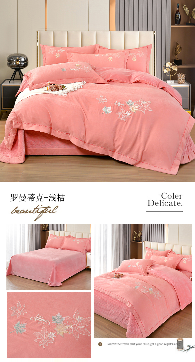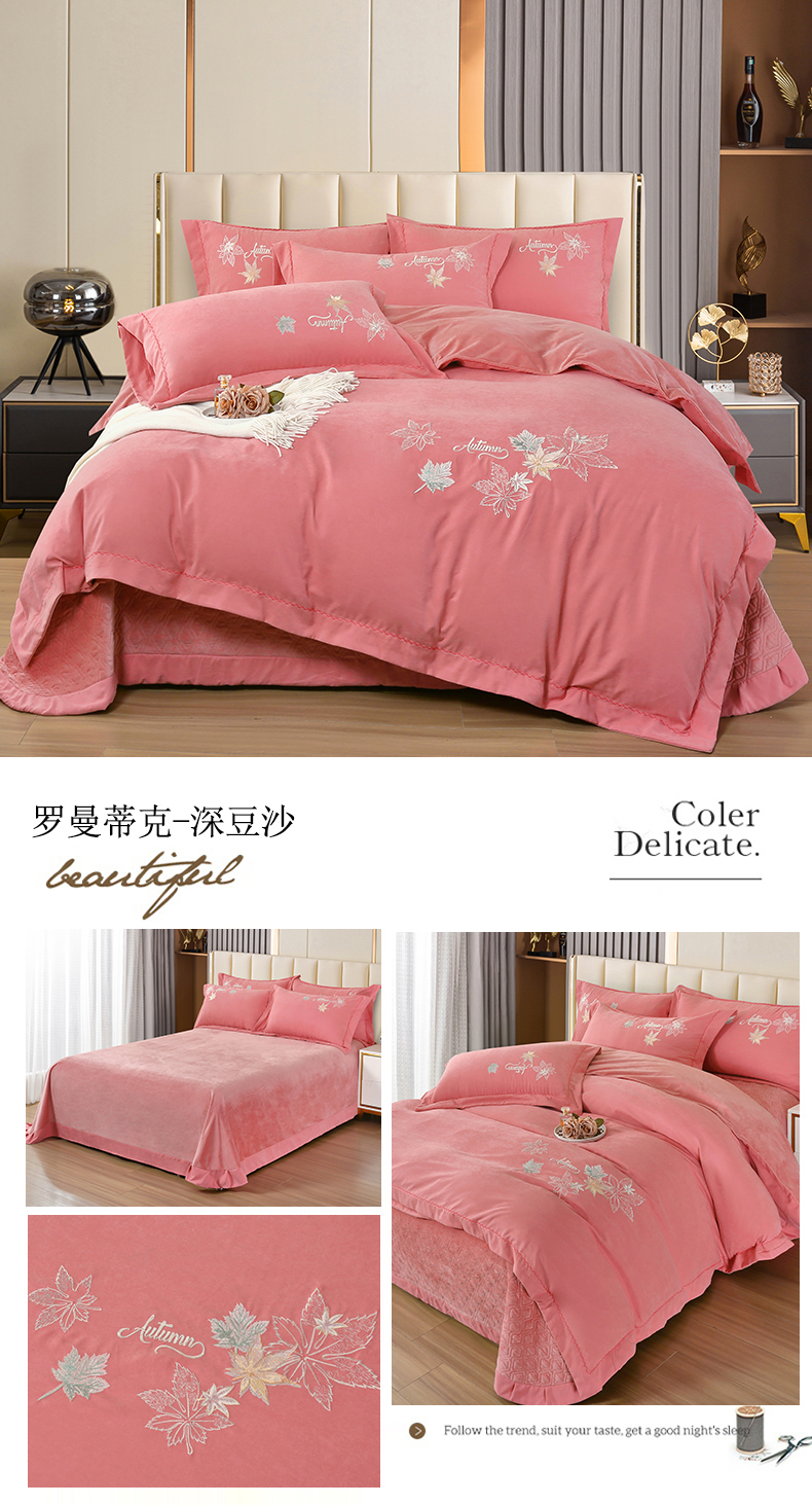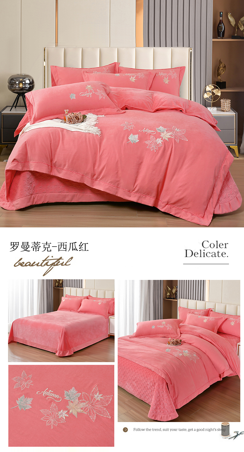 【四季双面可用】双面床盖夹棉四件套 正面锦棉四季用+反面220g宝宝绒秋冬用