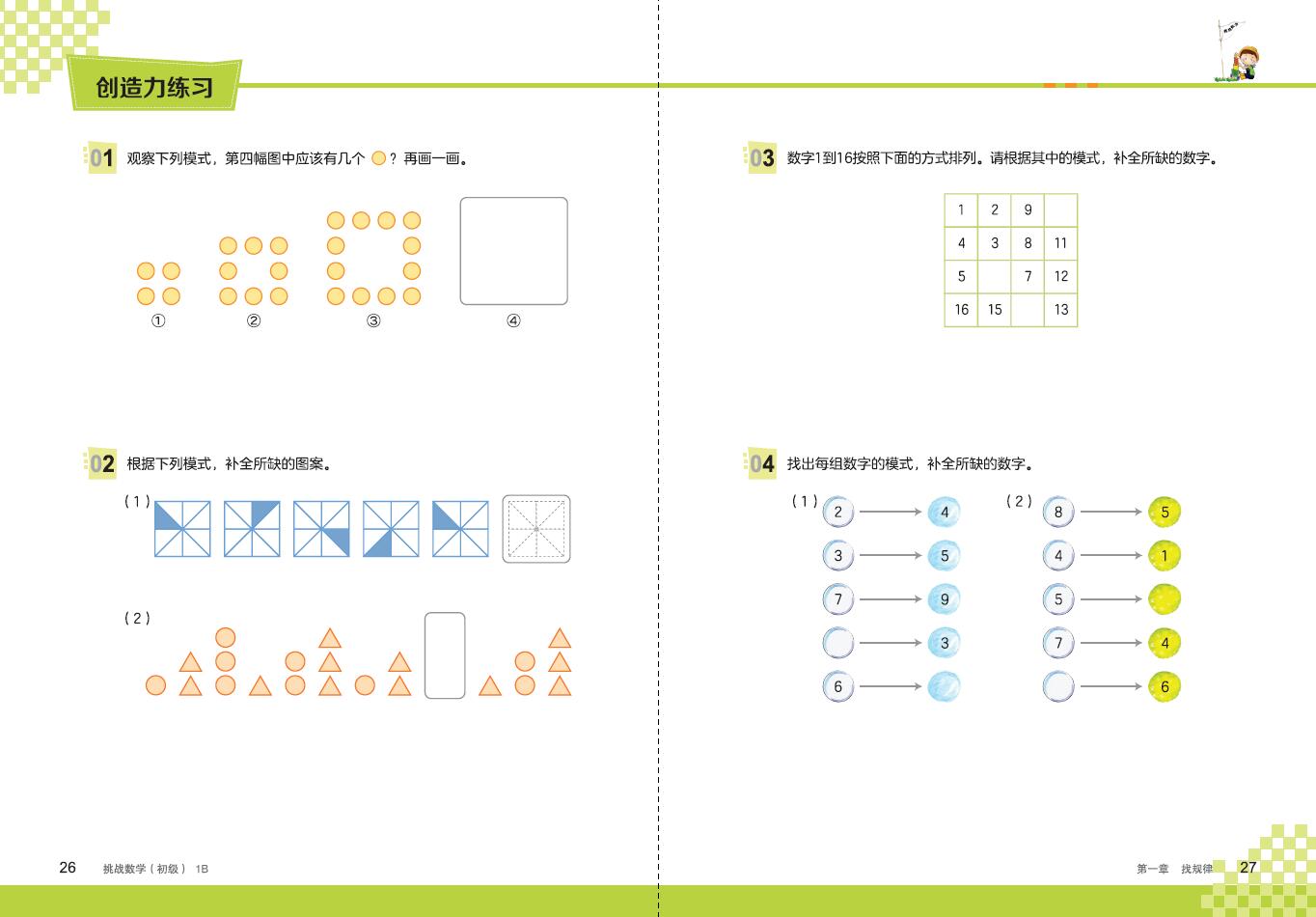 《挑战数学》(初级)采用新加坡CPA教学法,可以培养孩子创造性和批判性思维,适合幼小衔接及小学低年级的学生使用。书中通过一个个专题,引导孩子利用创造性思维来解决日常生活中的数学问题,既能覆盖新课标主要知识点,又有大量拓展知识。每本书都包含四部分内容:学习和探索概念,例题详解,不同类型的习题巩固,利用创造性思维解决高难度问题。这套图书能提升孩子对数学的兴趣,加深对数学知识的理解,培养数学思维,增强解决实际问题的能力。