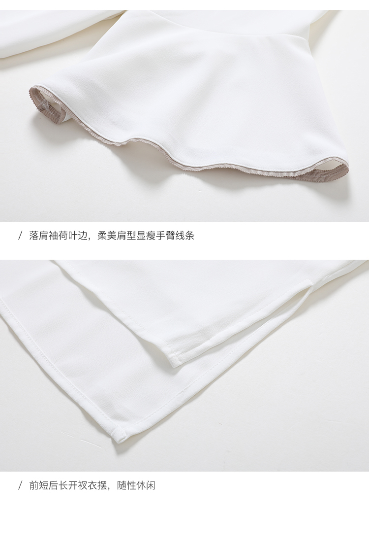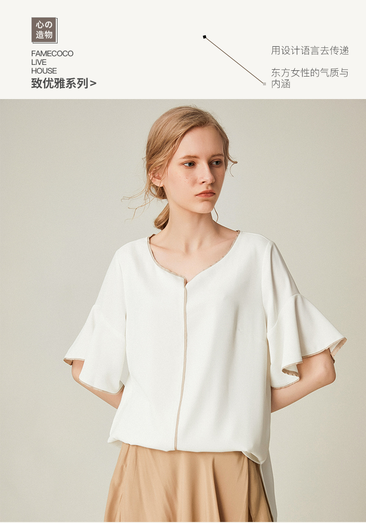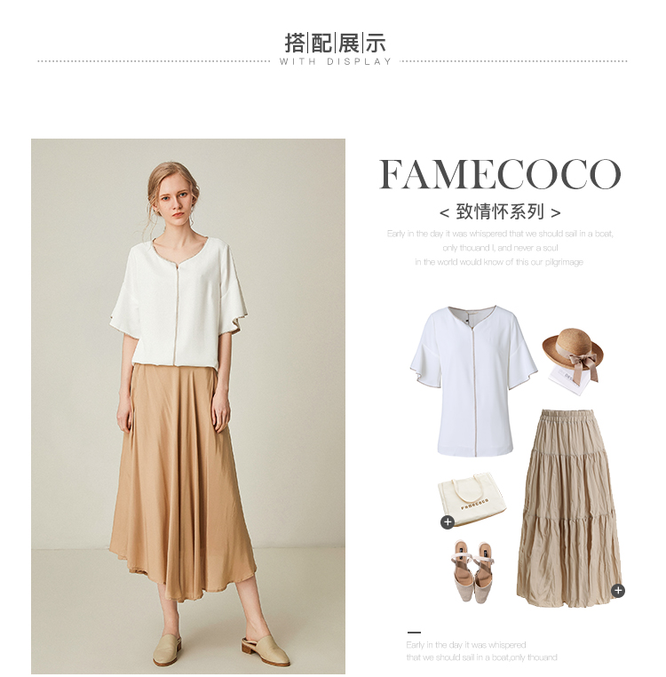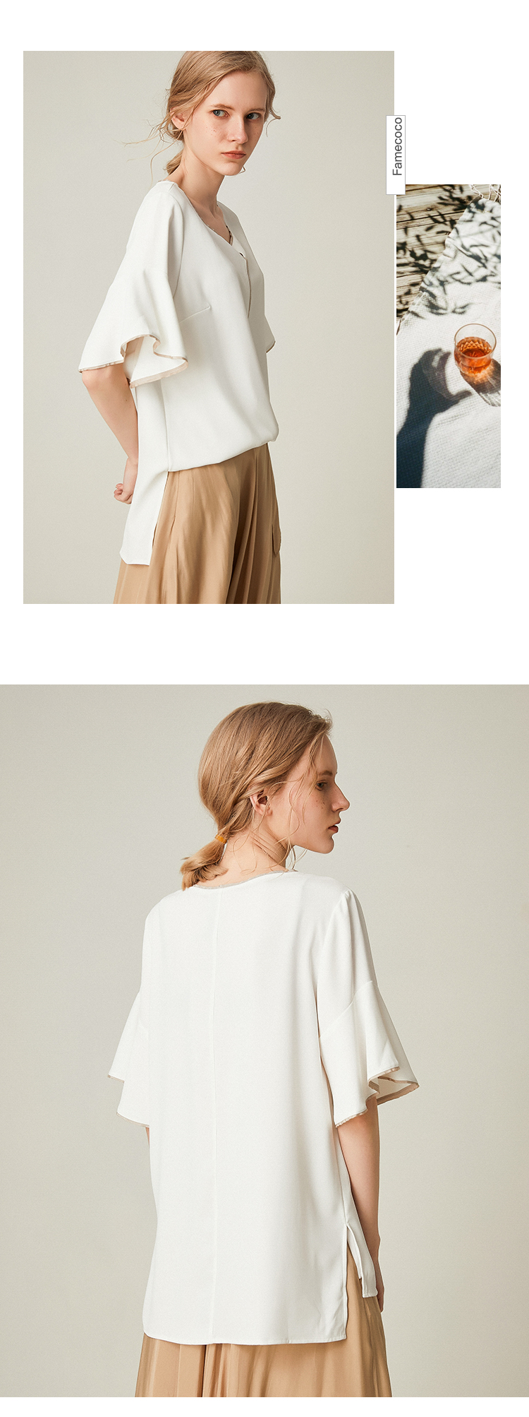 famecoco范可儿荷叶边短袖T恤女夏季不规则纯色上衣F193BE004