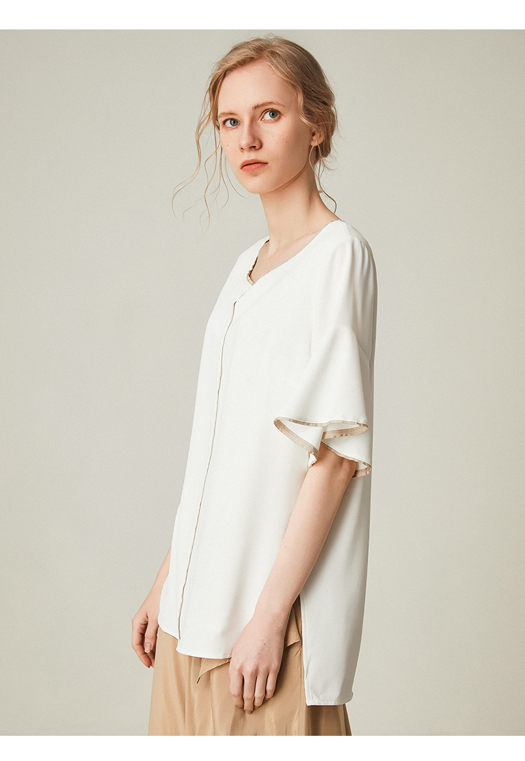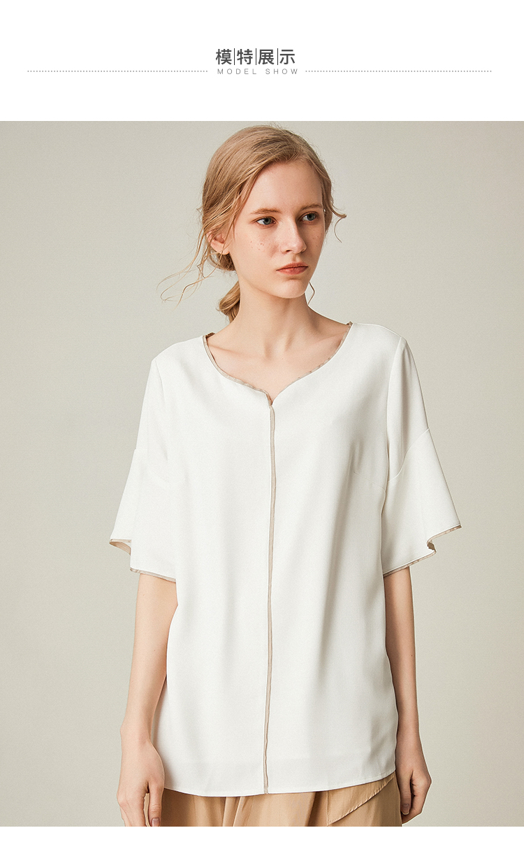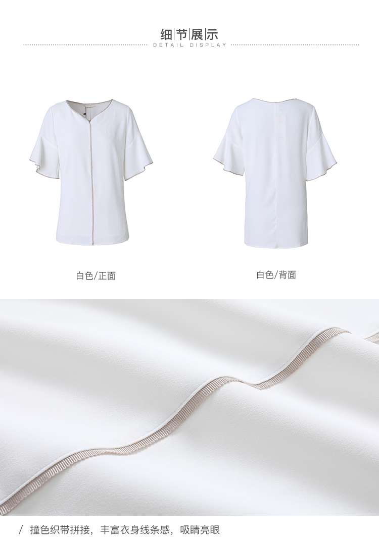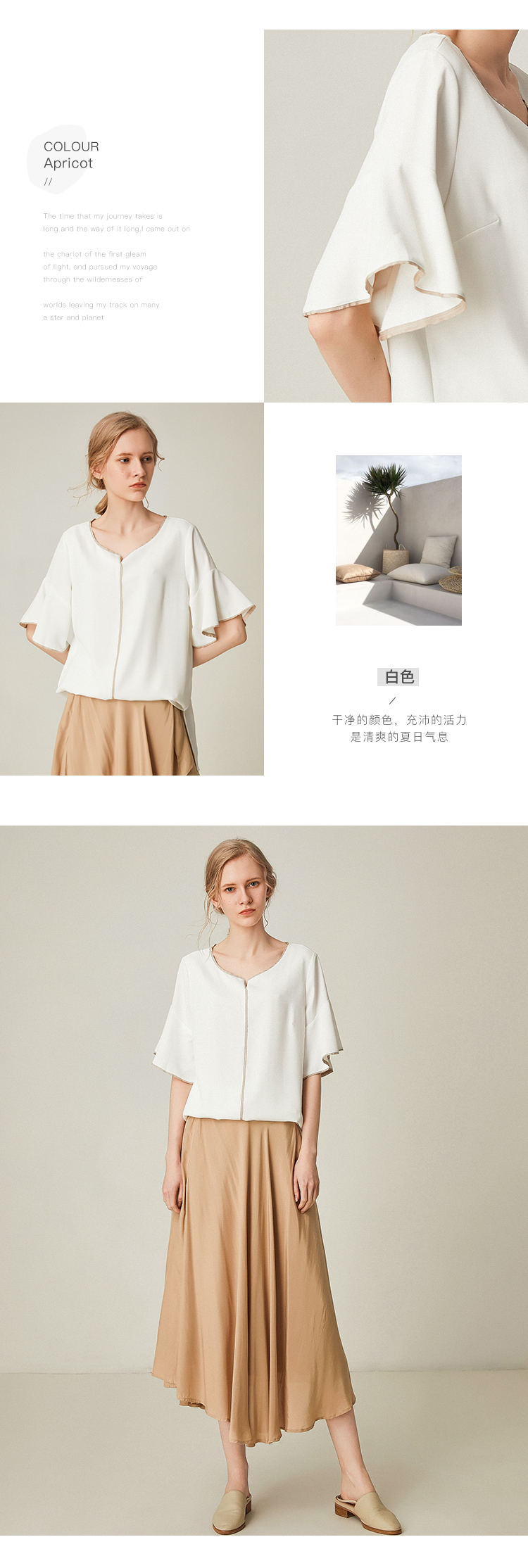 famecoco范可儿荷叶边短袖T恤女夏季不规则纯色上衣F193BE004