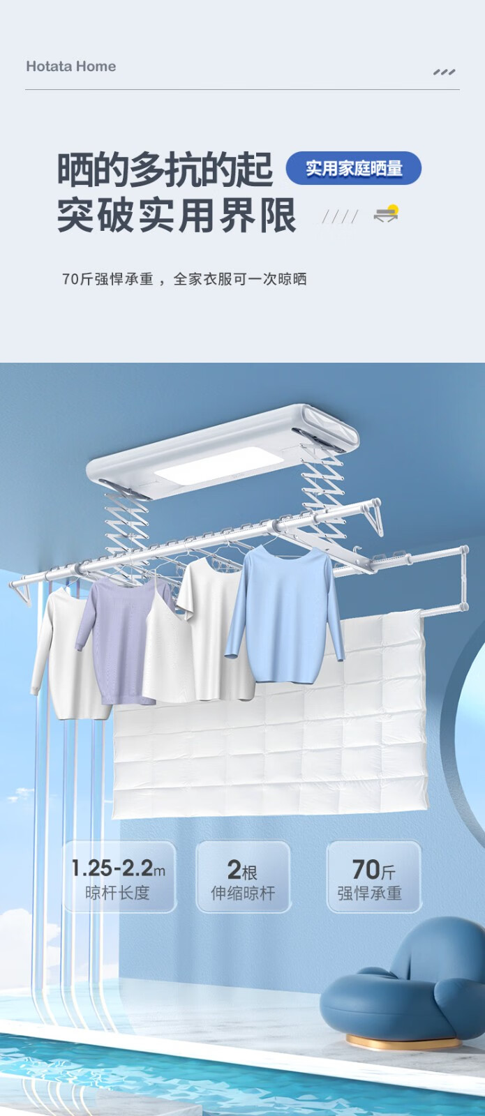 好太太(Hotata) 好太太晒客系列升降智能电动晾衣机阳台照明四杆 SK-336