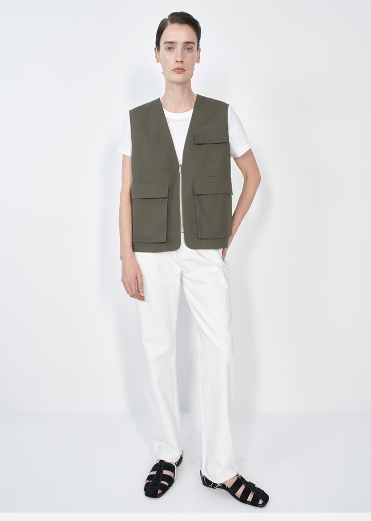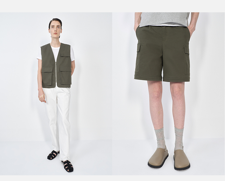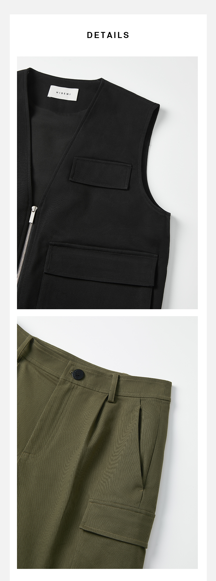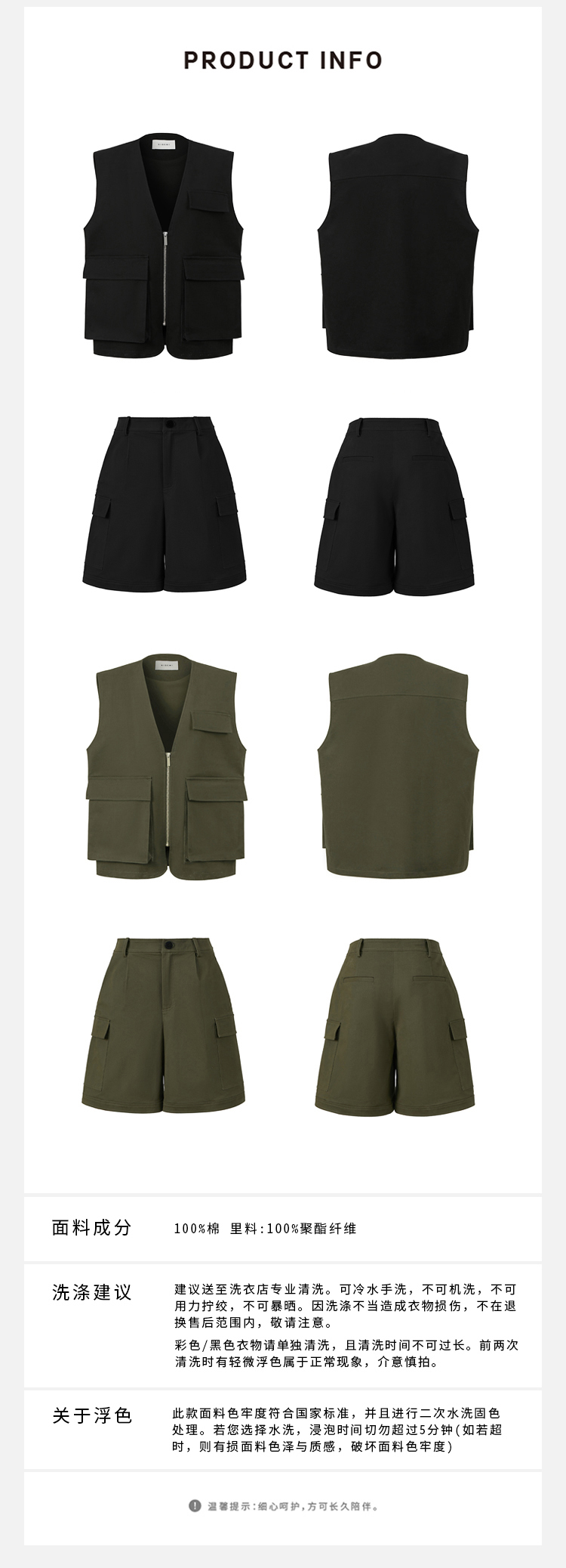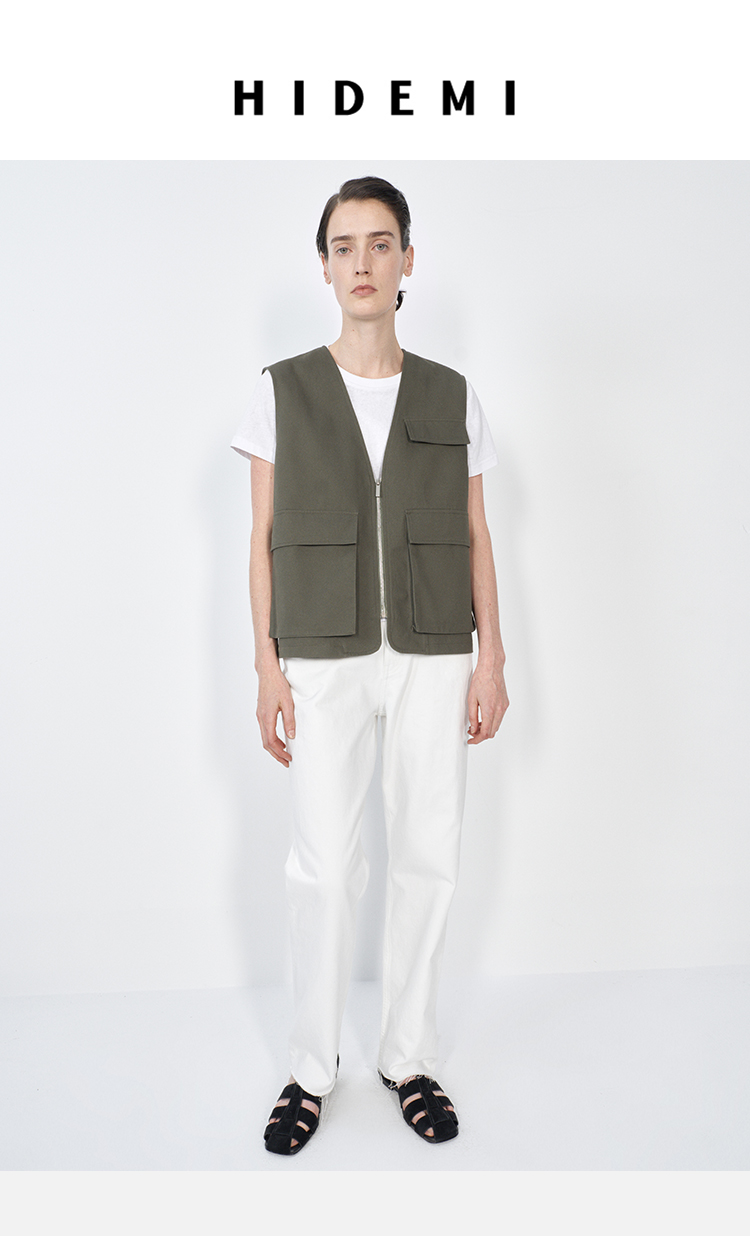 HIDEMI 小男孩系列春日新款女口袋工装感水洗斜纹棉导演马甲外套裤子短裤套装