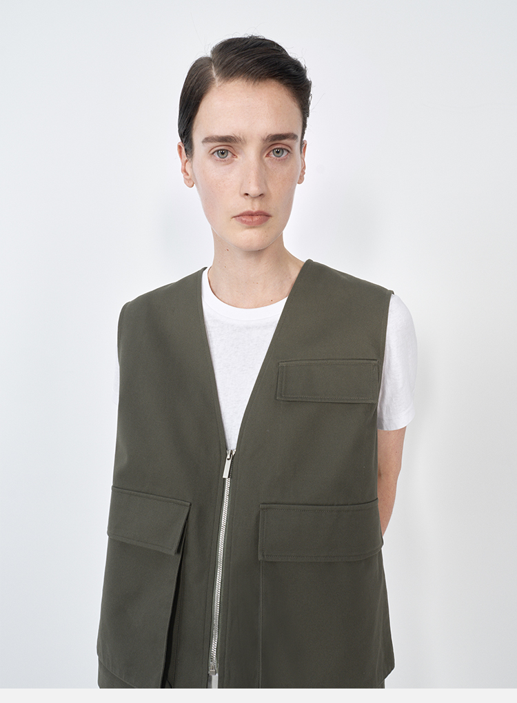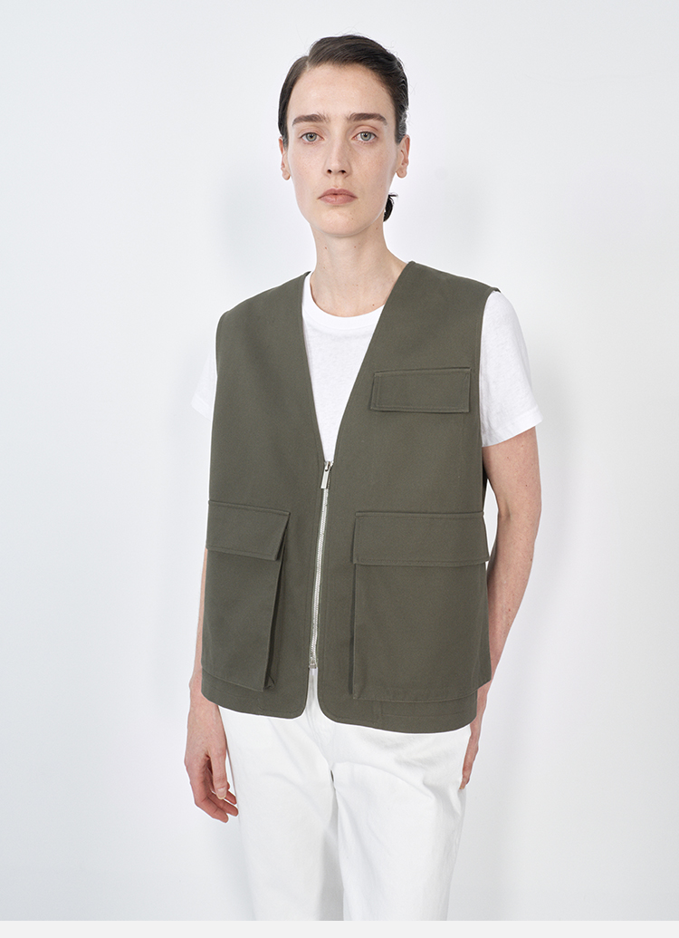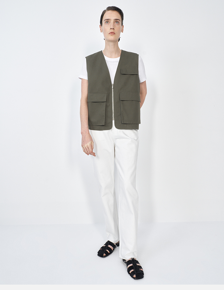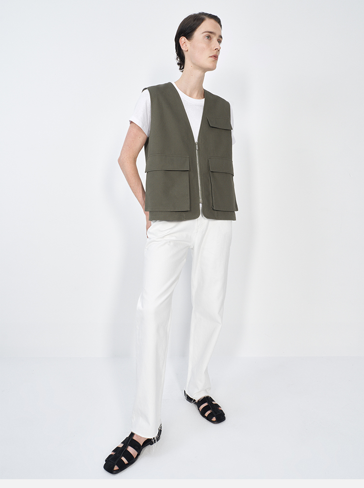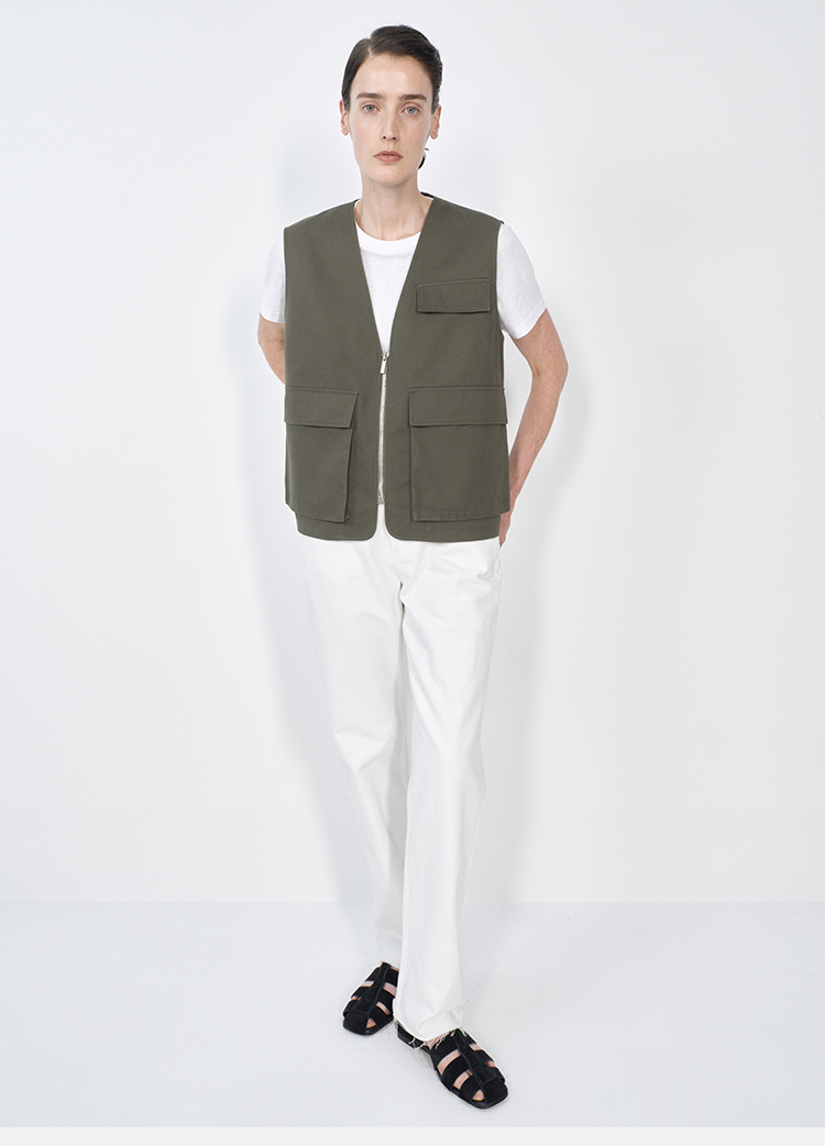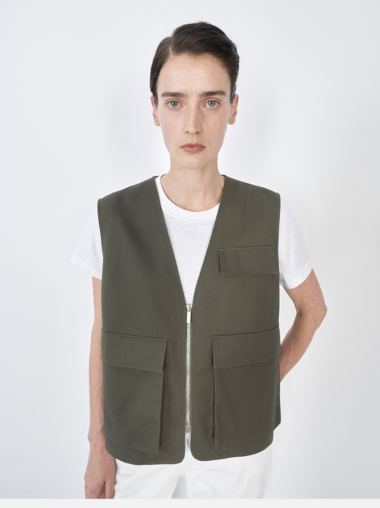 HIDEMI 小男孩系列春日新款女口袋工装感水洗斜纹棉导演马甲外套裤子短裤套装