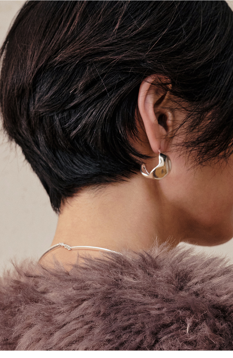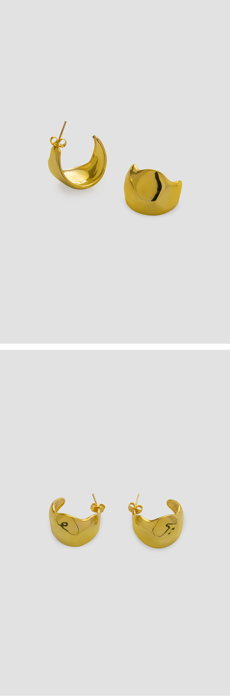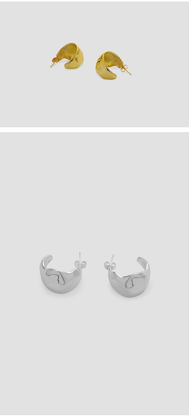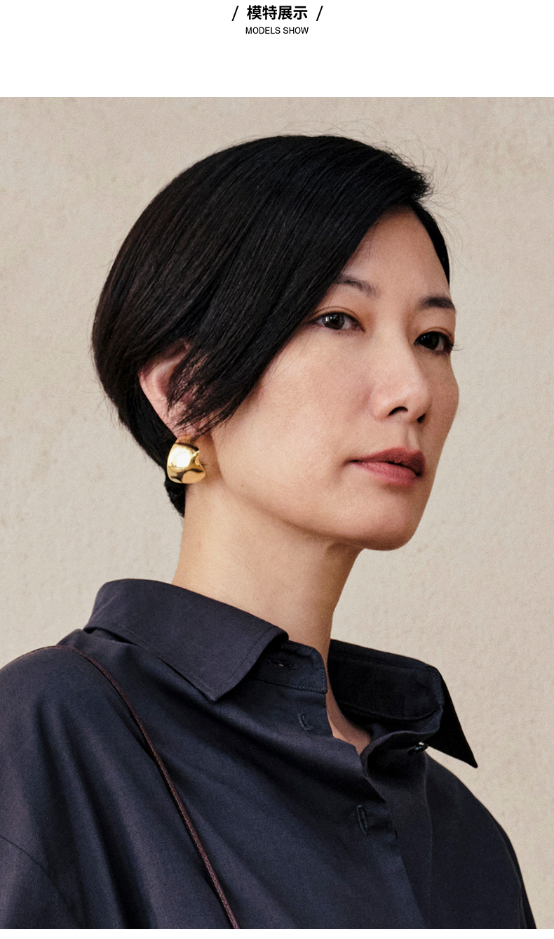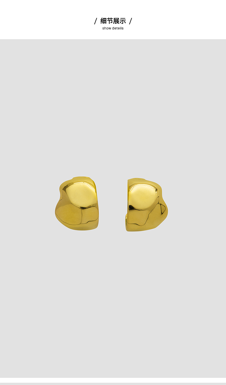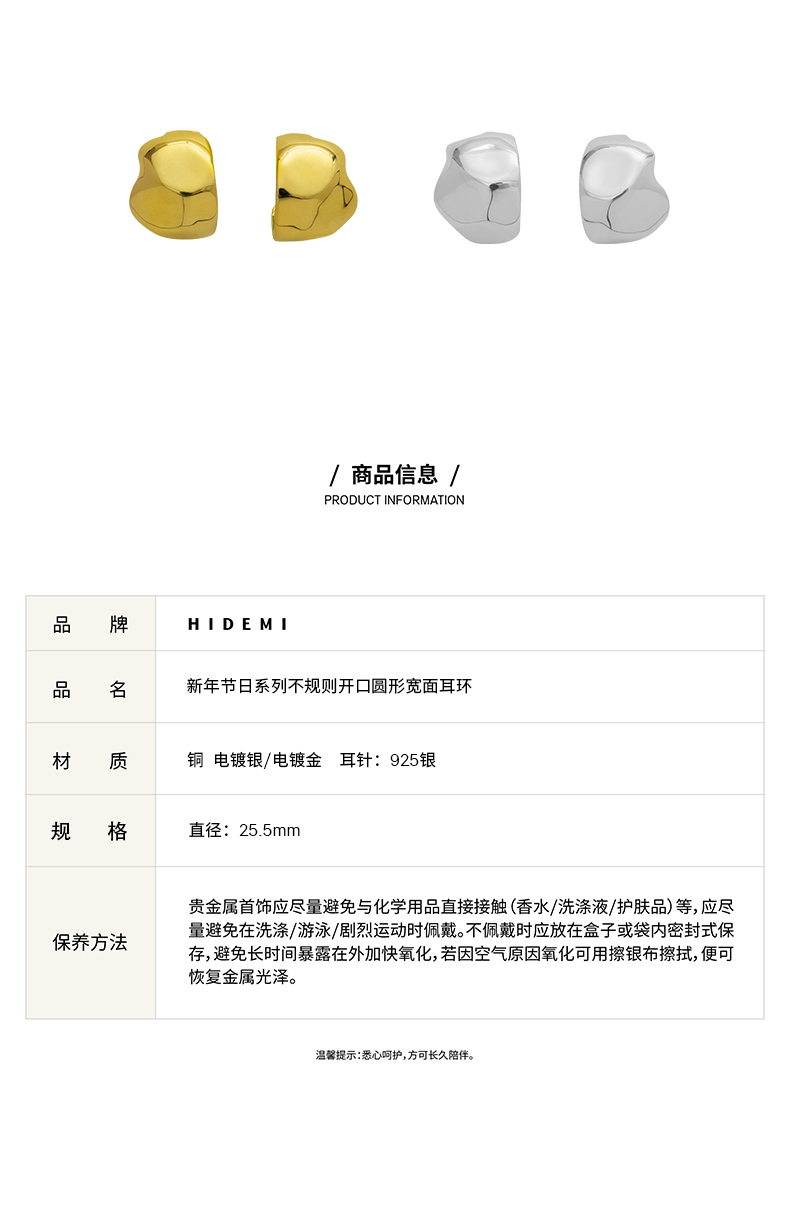 HIDEMI 不规则开口圆形宽面耳环 金色/银色