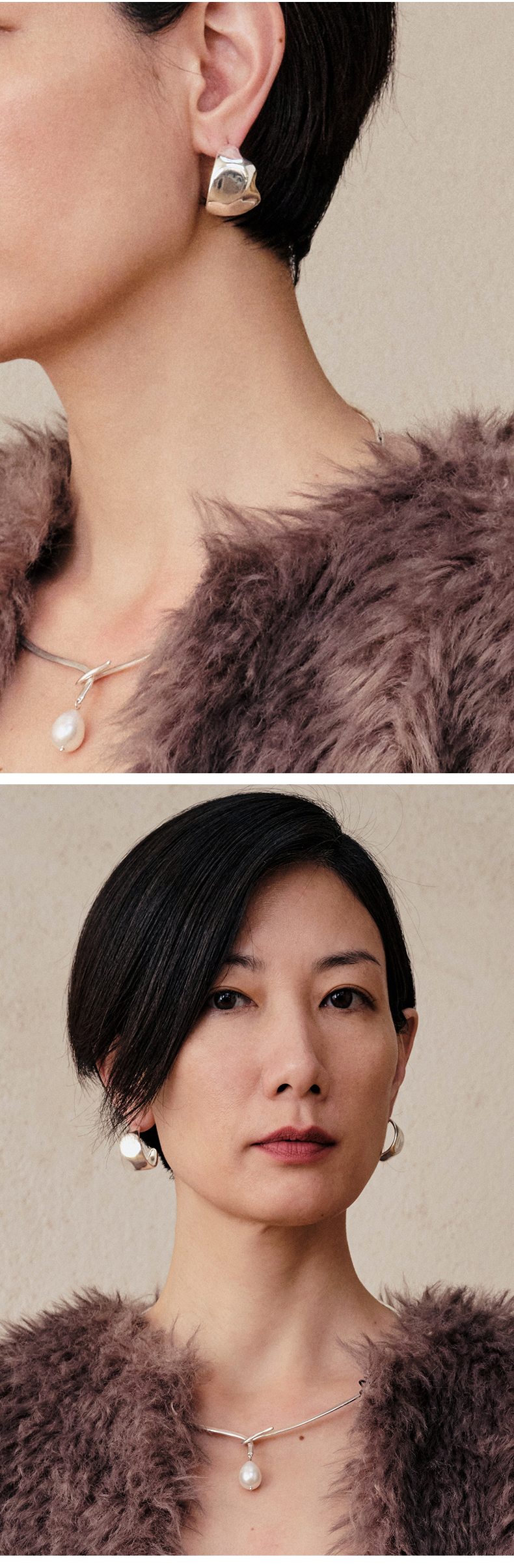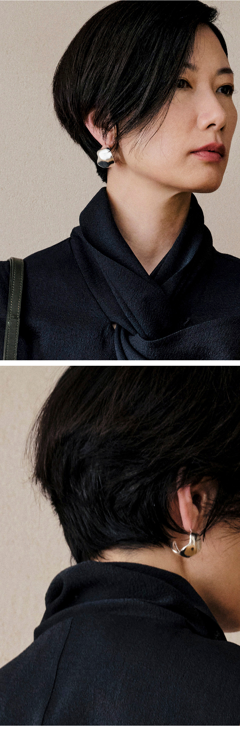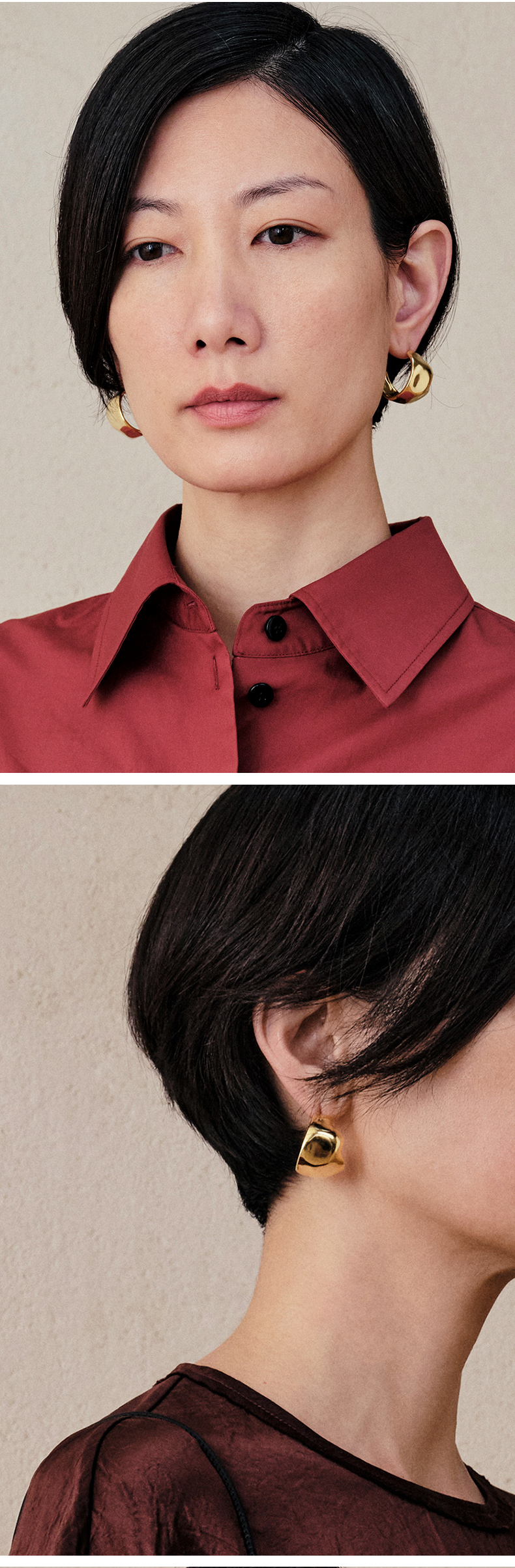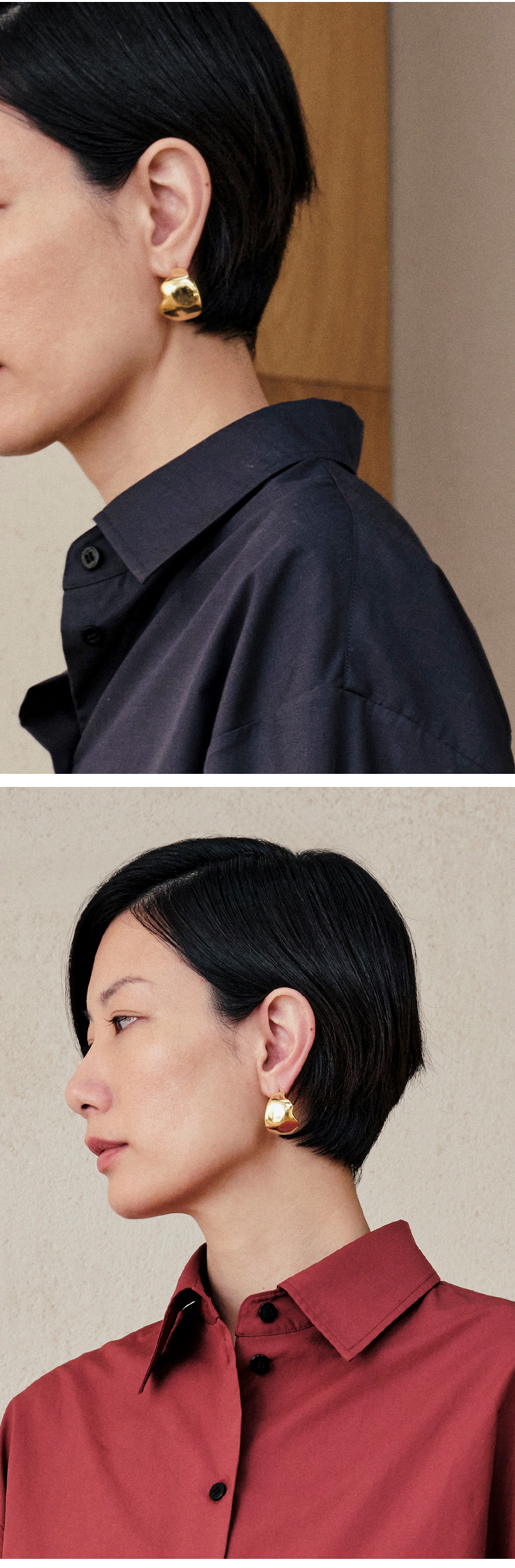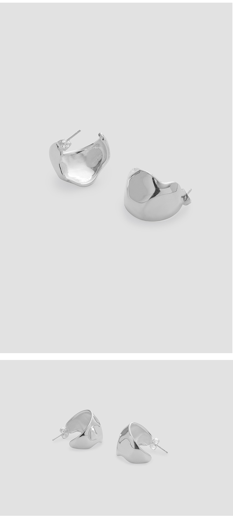 HIDEMI 不规则开口圆形宽面耳环 金色/银色