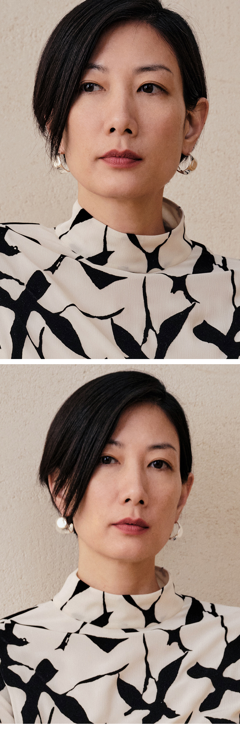 HIDEMI 简约设计感微荡立领半袖廓形套装 黑色/白色 上衣/半身裙