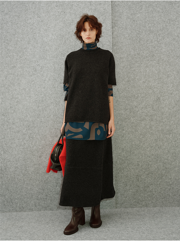 HIDEMI “我们做印花”特殊纸感几何桌椅剪影式印花廓形衬衫