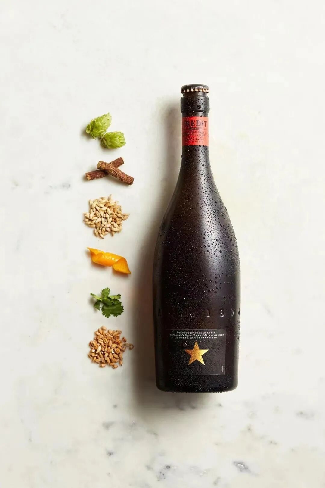 这款酒是由Ferran Adrià和西班牙巴塞罗那最知名的成立于1876年的啤酒品牌Damm合作而来,