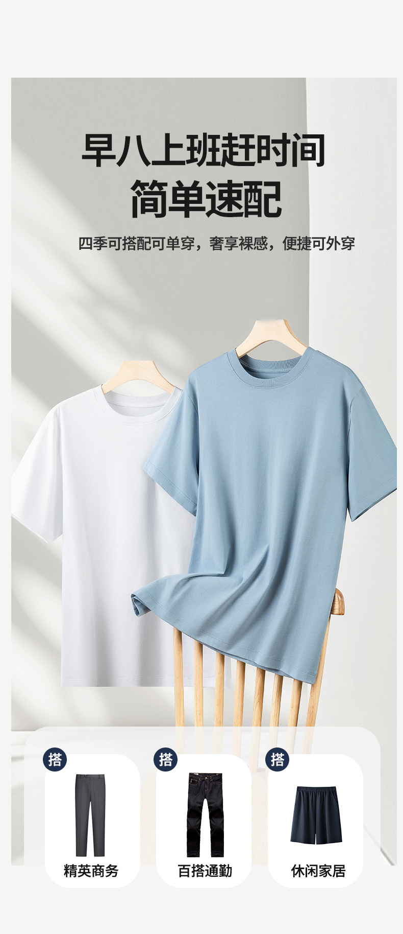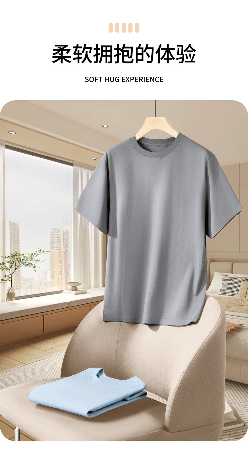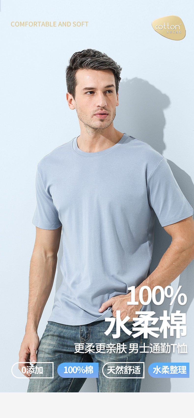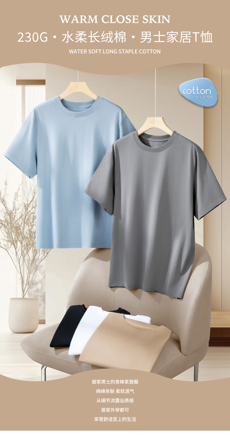 【129元2件】【专柜大牌品质】【230g水柔长绒棉】男士春夏全棉短袖 顺滑柔软透气休闲简约T恤