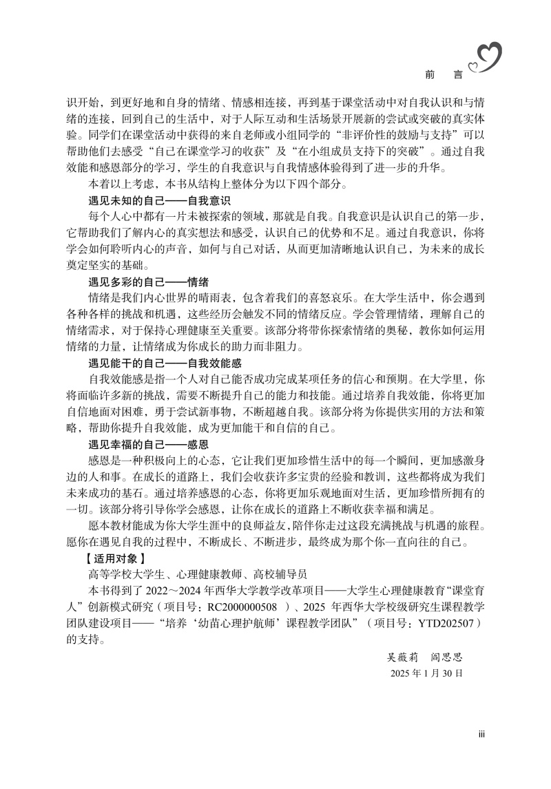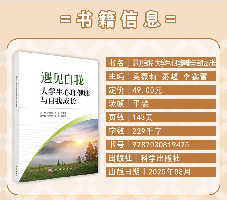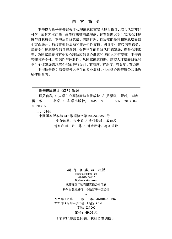 遇见自我 大学生心理健康与自我成长 吴薇莉 綦越 李鑫蕾 适合普通高等学校全体学生及从事心理健康通识课教师教学或参考使用科学出版社
