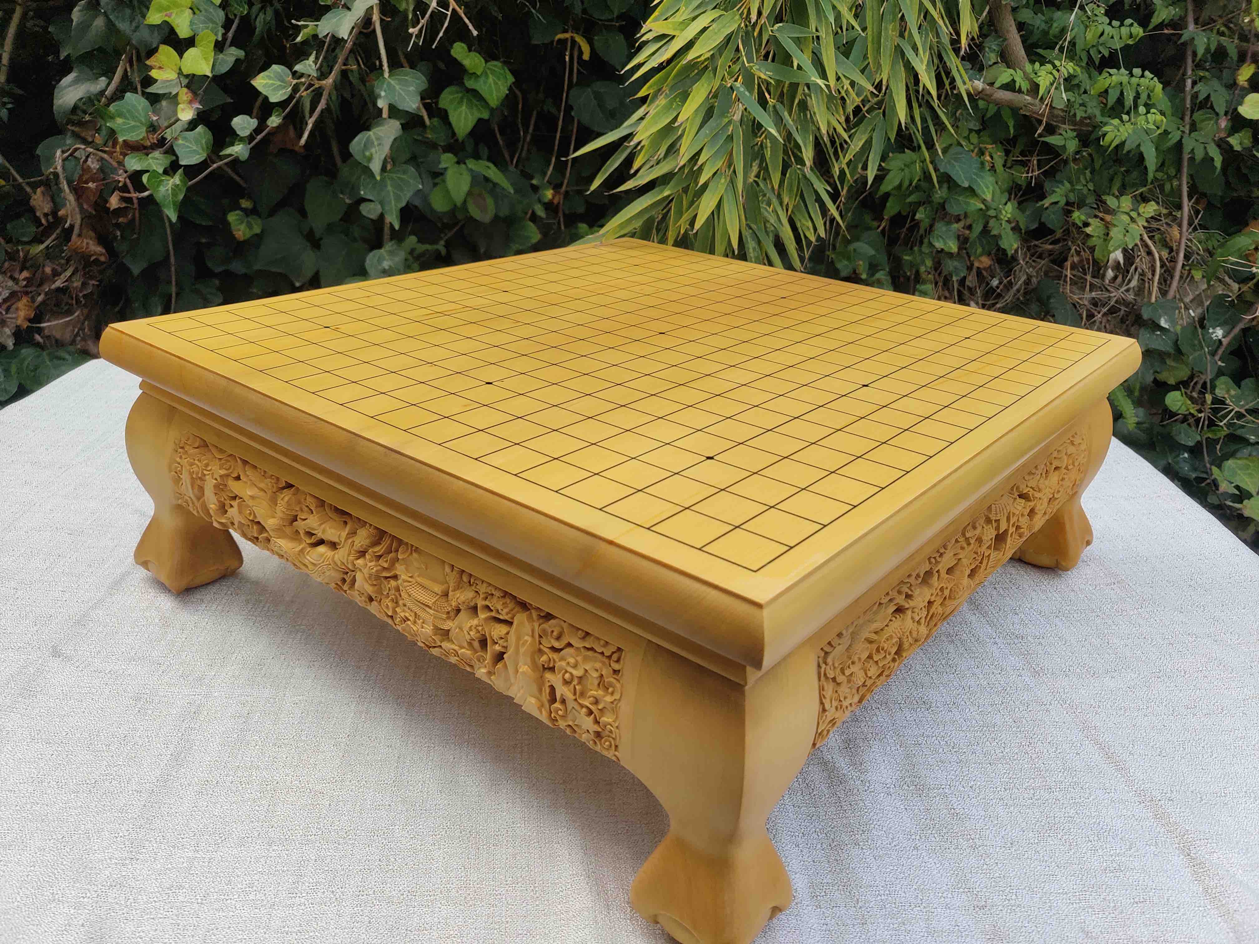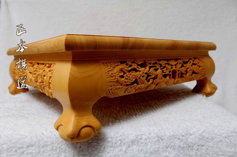 乌龙精品棋盘 实木棋盘 新榧 香榧实木 雕花围棋桌 围棋墩