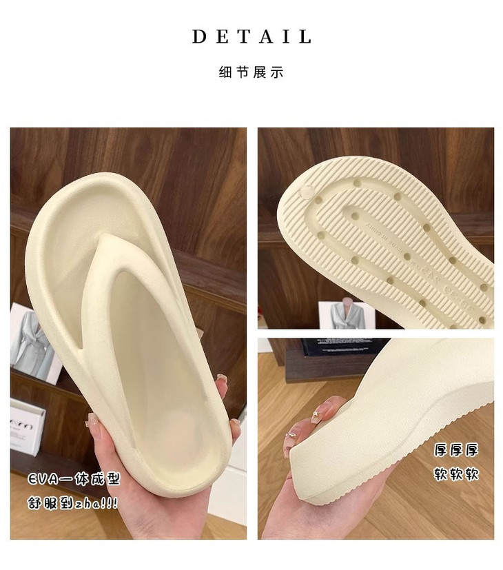 EVA材质,人字拖轻盈无感,放在水里能飘起来,穿它比穿袜子还无感舒适~ 加厚鞋底,又软又弹,脚踩在上面跟踩在果冻上一样,就算是石头路都能如履平地不硌脚。 加深防滑鞋底,雨天,湿滑的地板想穿就穿,不用担脚底打滑~