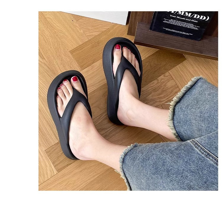 这双人字拖好舒服!一体成型不易断,自带4cm厚底,舒服到不想脱 时髦精们穿它压根不需要考虑穿搭,再精致再商务的衣服都跟它有种莫名的和谐感~