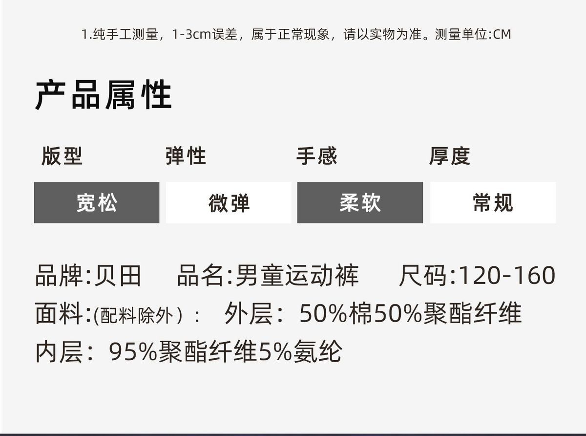 贝田2025秋季新款男童裤子春秋款儿童运动裤薄款卫裤男孩秋天长裤