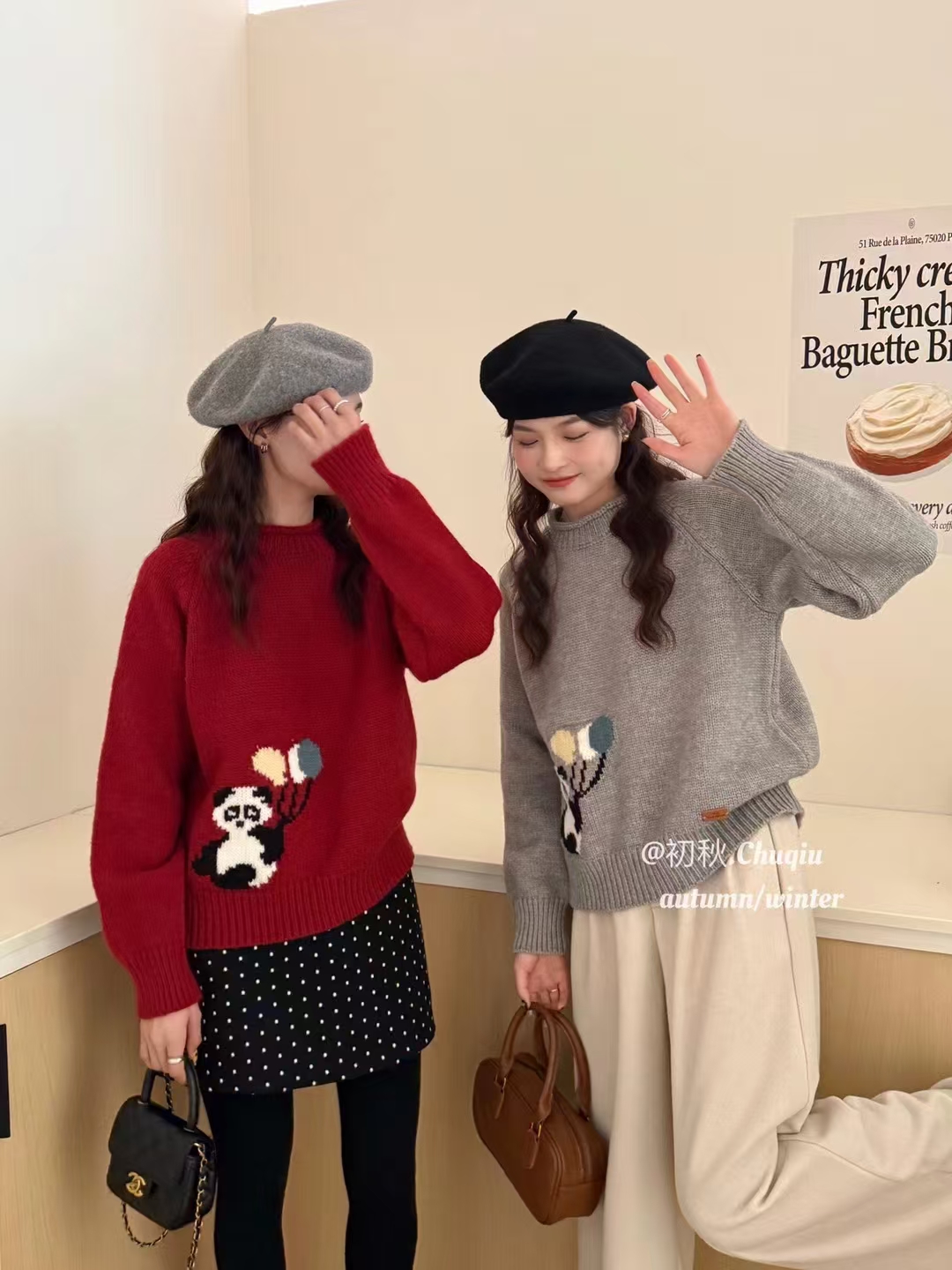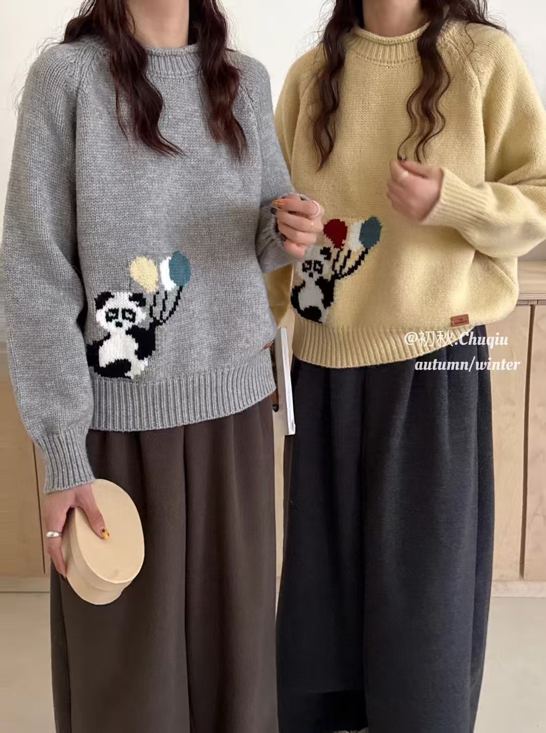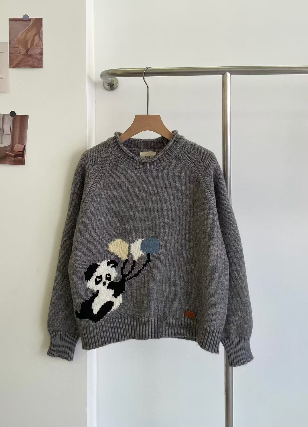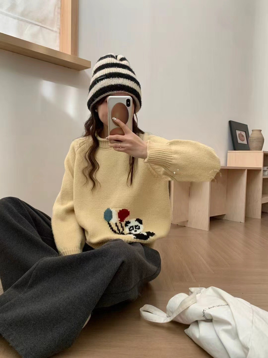 【YW】无忧购韩系ins百搭气球小熊卡通可爱圆领针织衫86103(截单后7天发货)