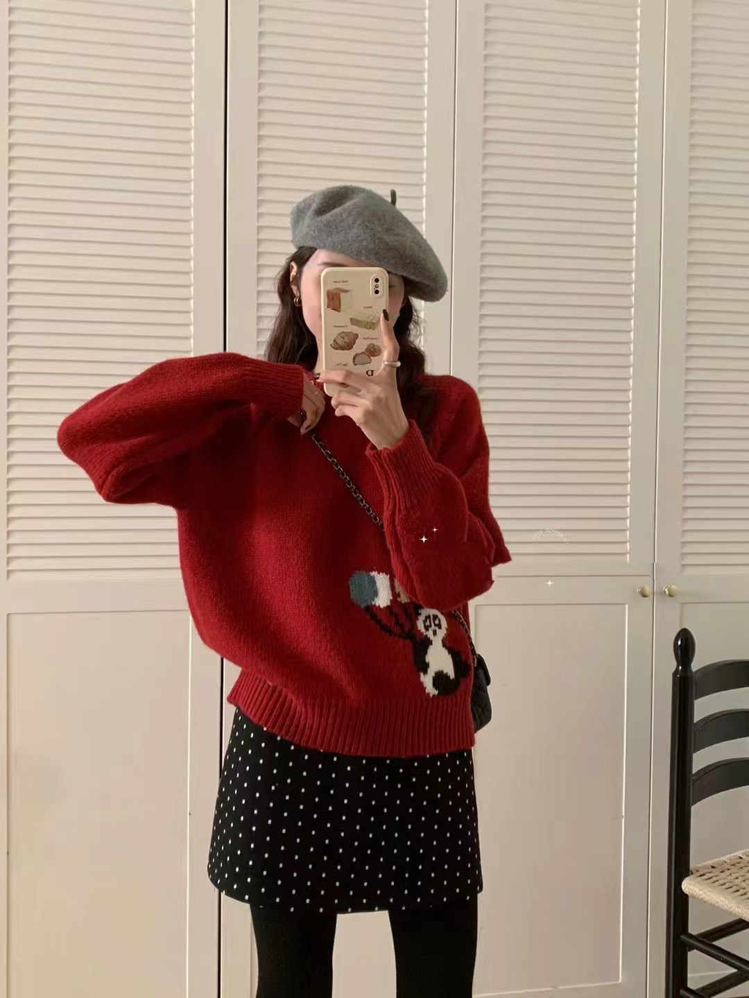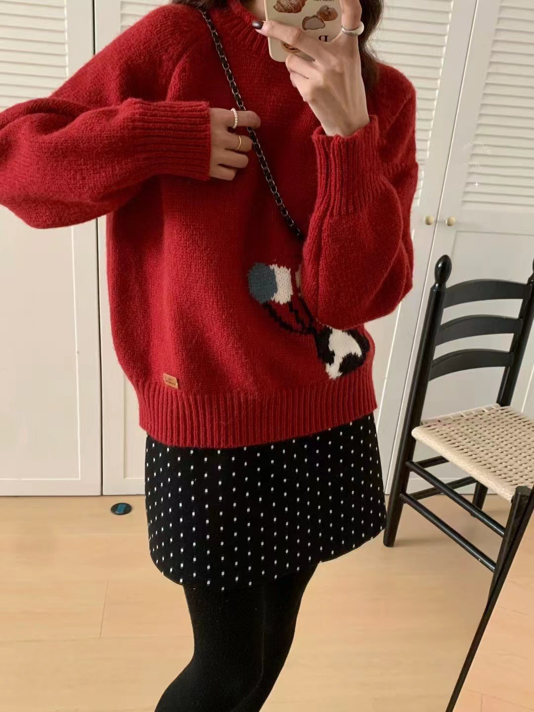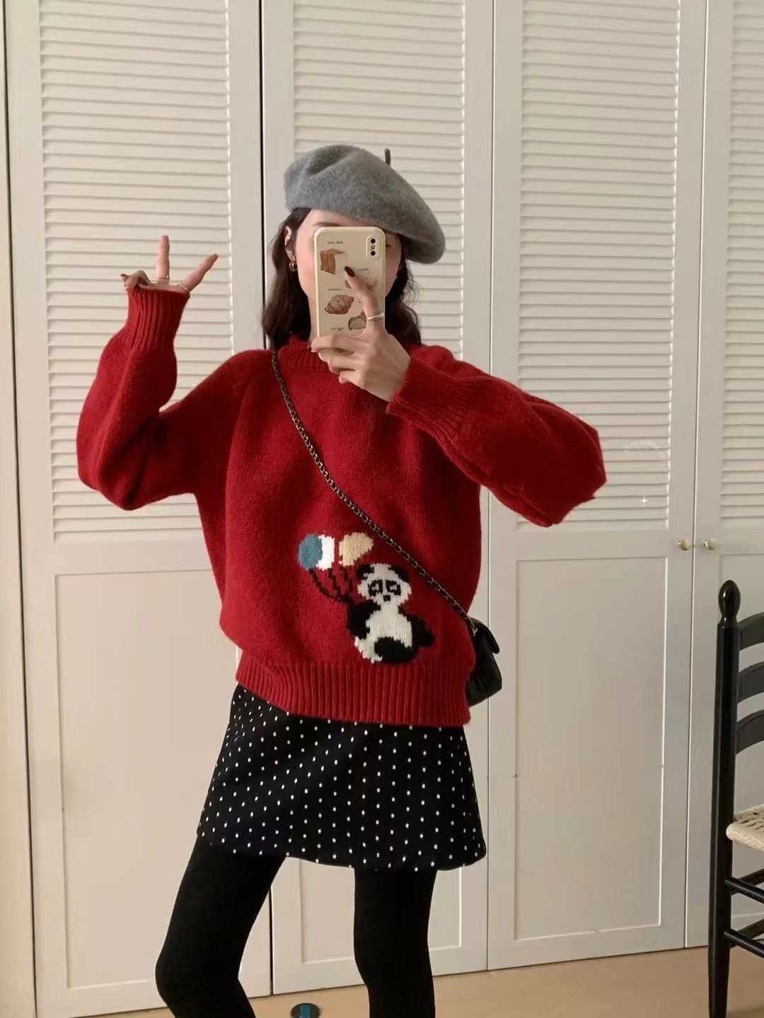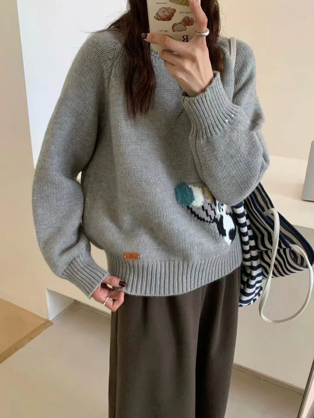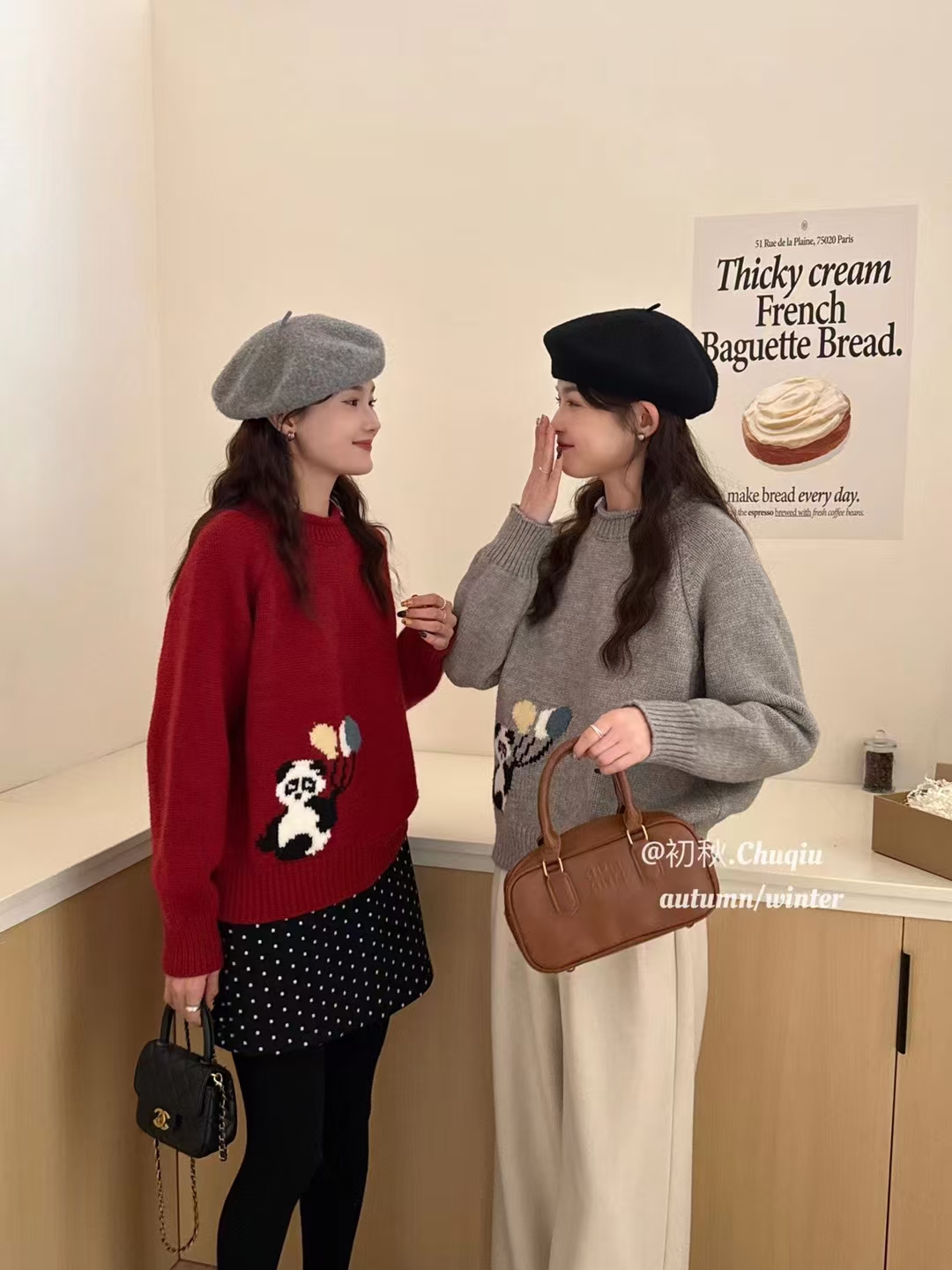 【YW】无忧购韩系ins百搭气球小熊卡通可爱圆领针织衫86103(截单后7天发货)