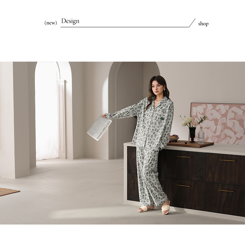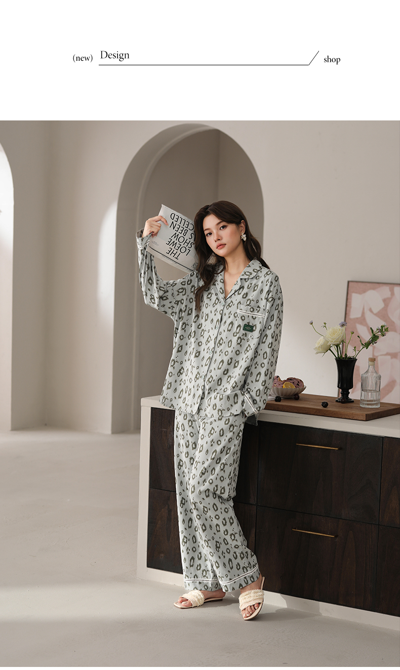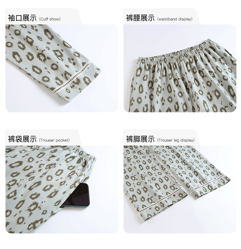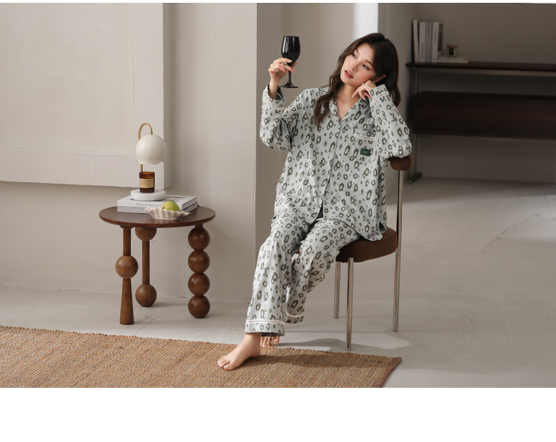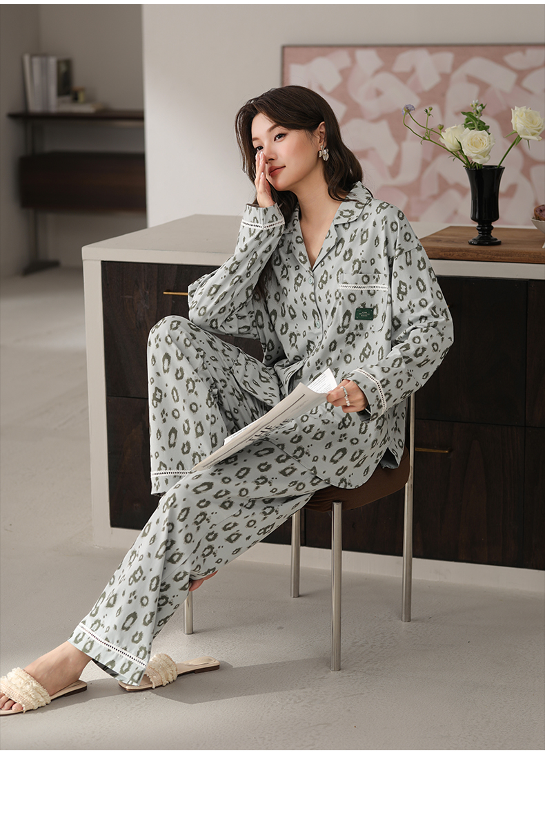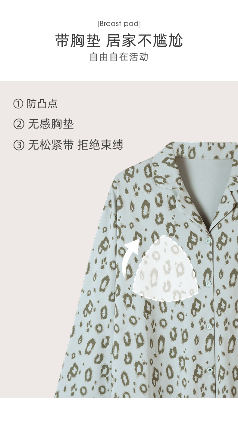可人儿春秋季带胸垫奥力棉女士长袖长裤睡衣可外出纯棉家居服套装