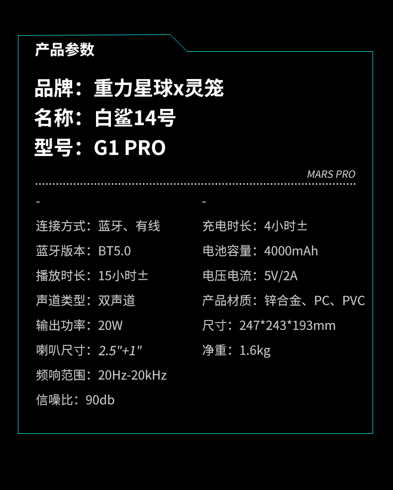 Gravastar 重力星球 蓝牙音箱 G1 pro 灵笼限量款
