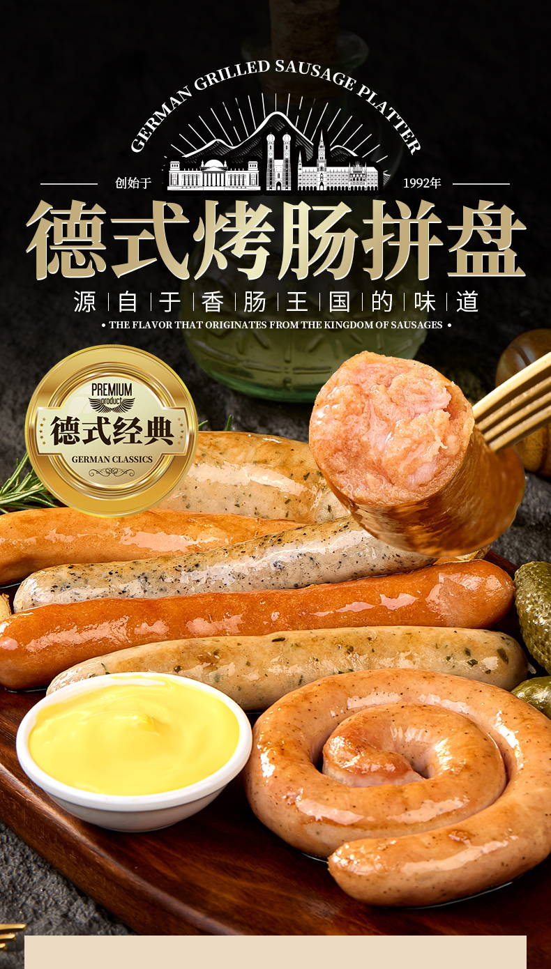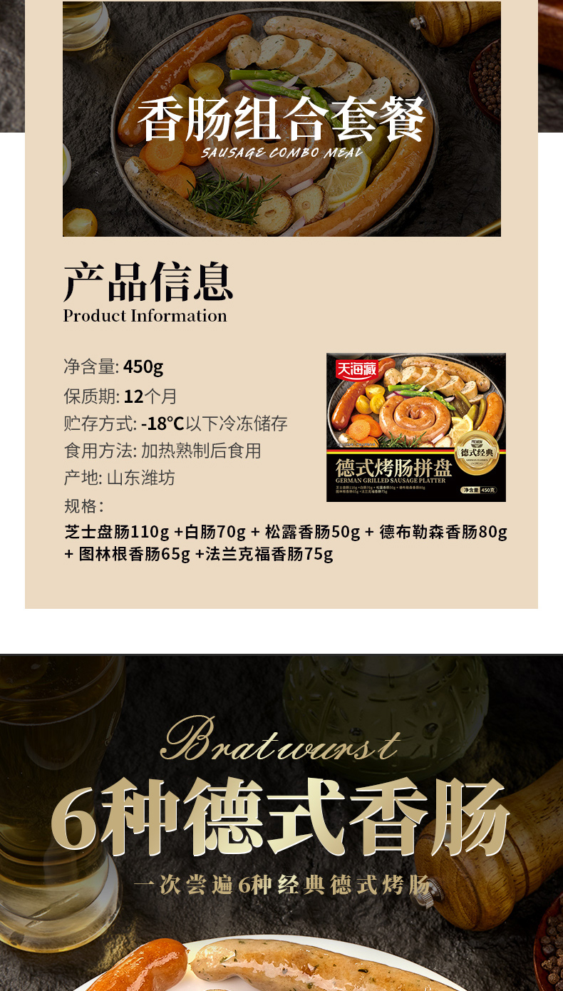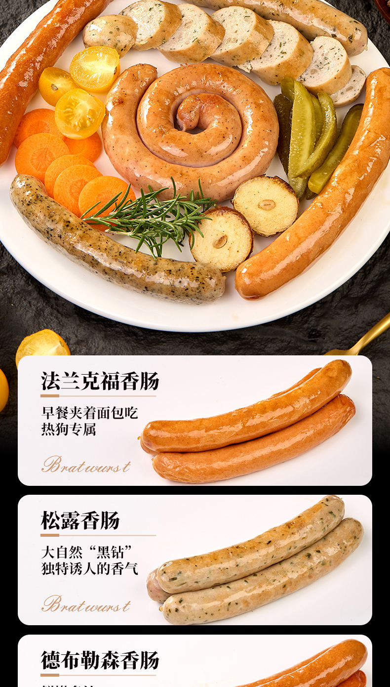 粉丝专属【秒杀❗️69.9抢三袋🔥德式烤肠拼盘450g/袋】 甄选品质原料制作,六种烤肠香肠组合,芝士盘肠 白肠 松露香肠 德布勒森香肠 图林根香肠 法兰克福香肠,年货餐宴送礼佳选L-d