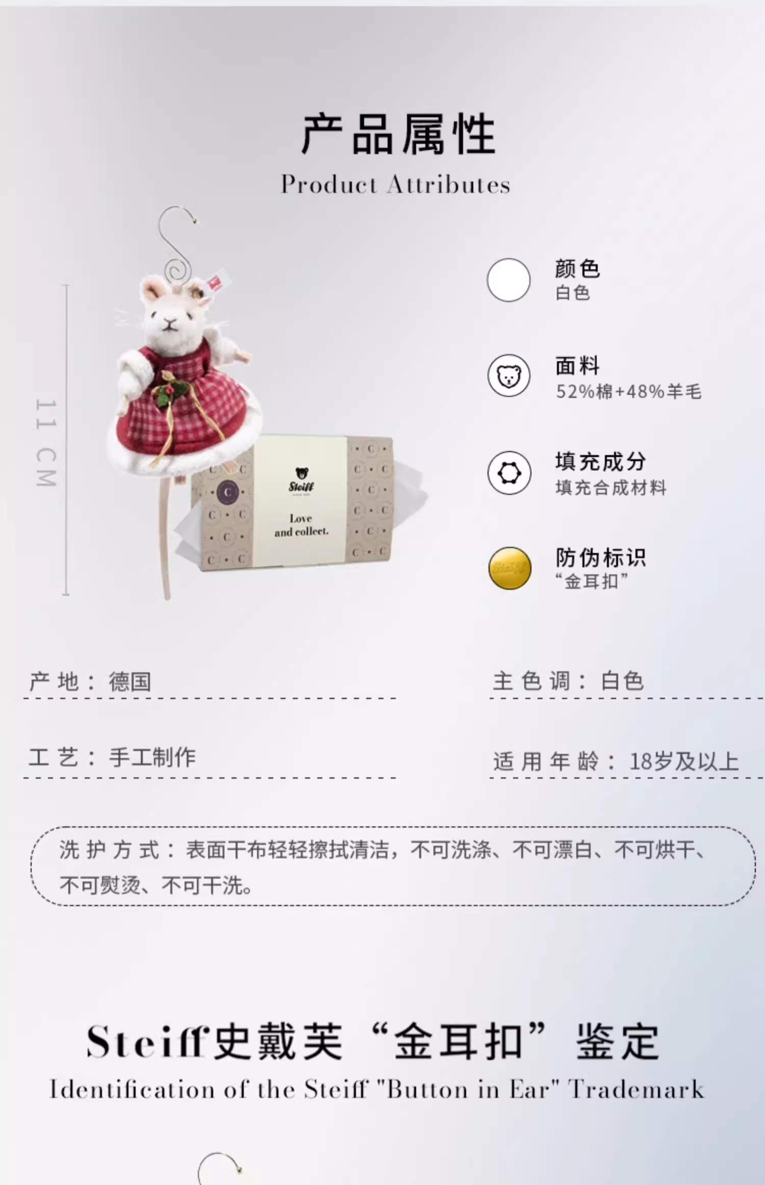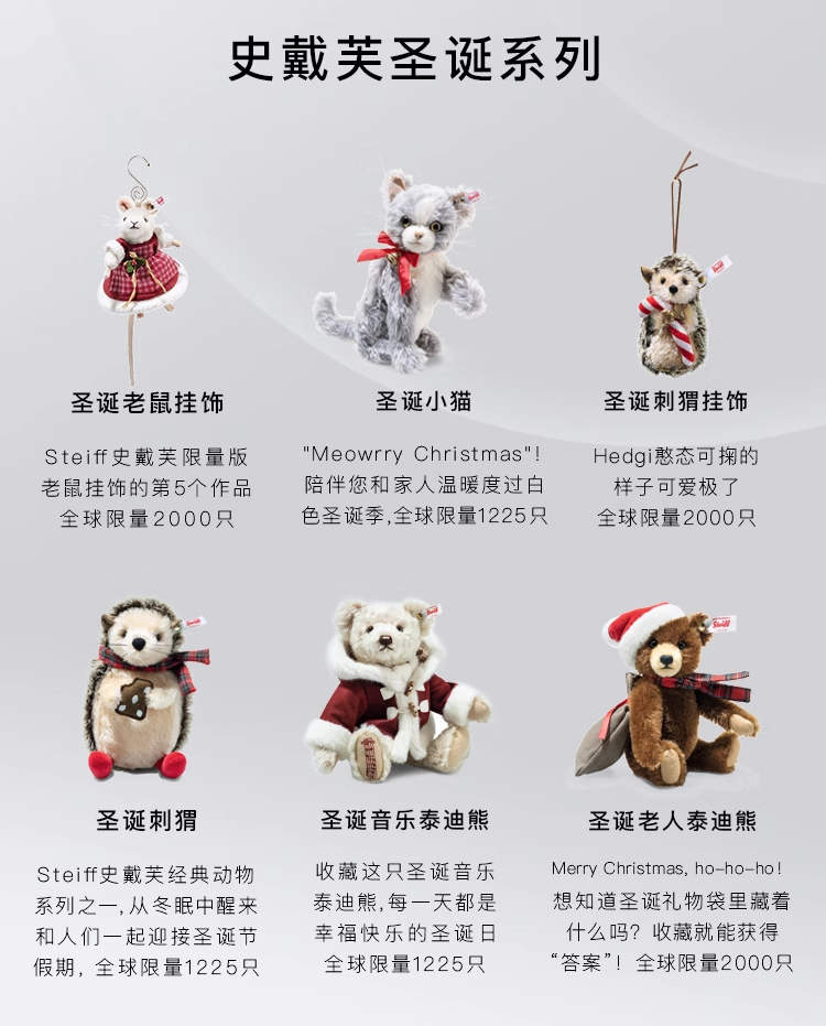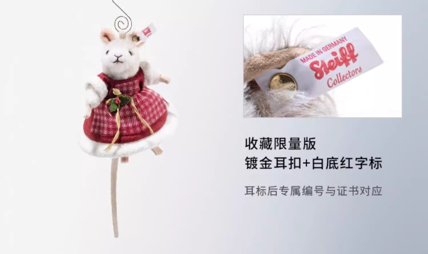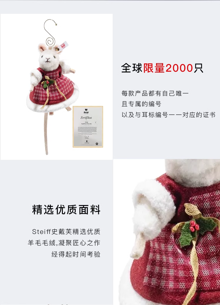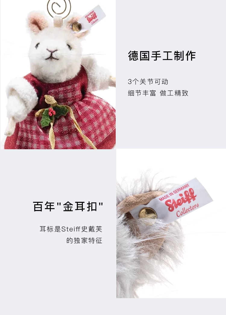 Steiff史戴芙收藏限量版-圣诞老鼠挂饰(11厘米)STEC007453玩偶