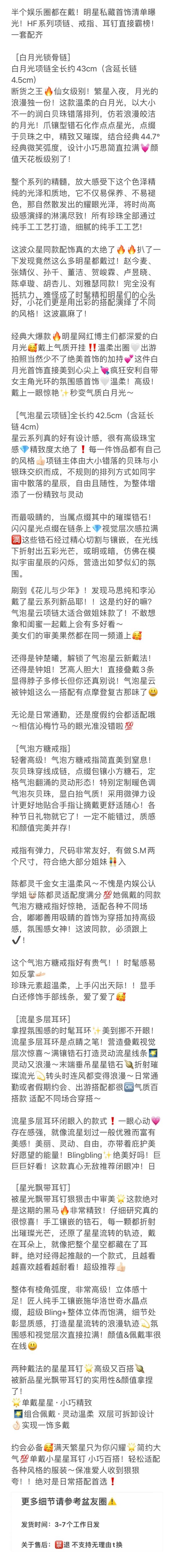 全明星同款!渠道货 HF饰品系列 项链/戒指/耳钉
