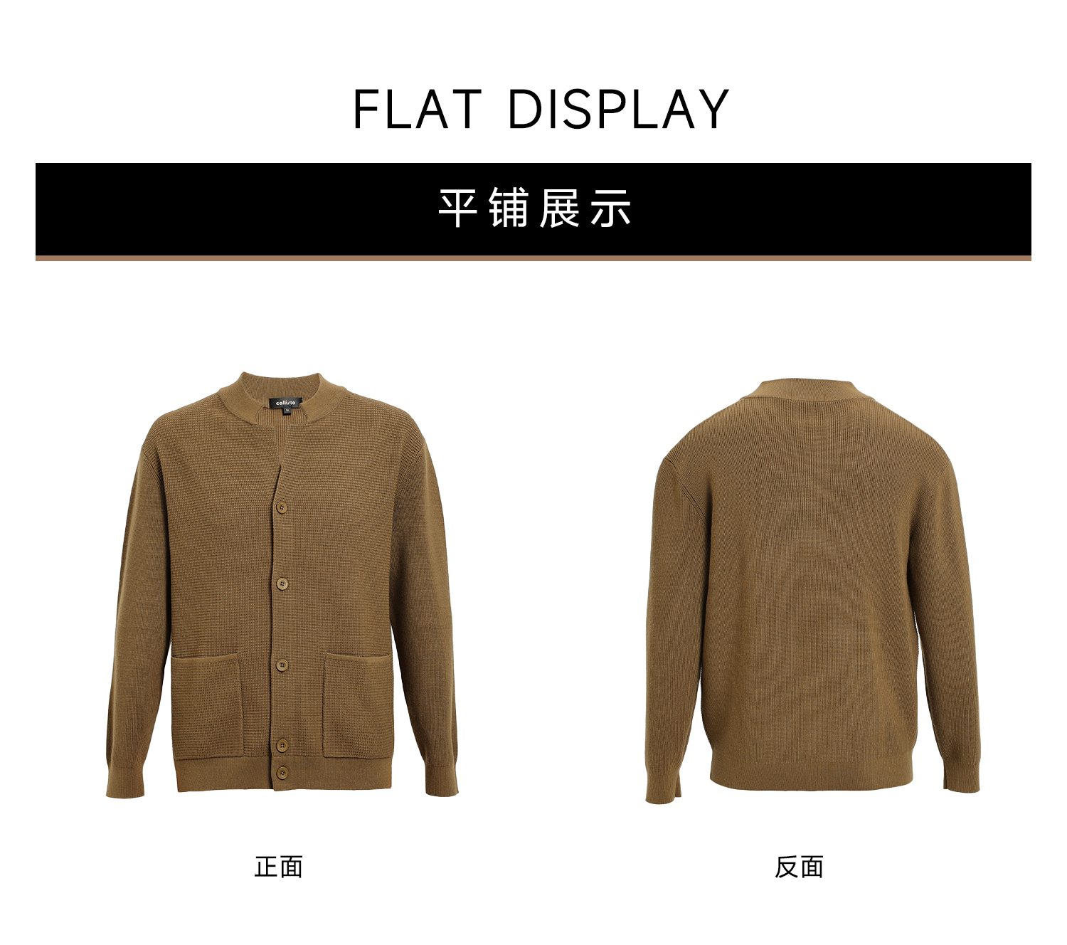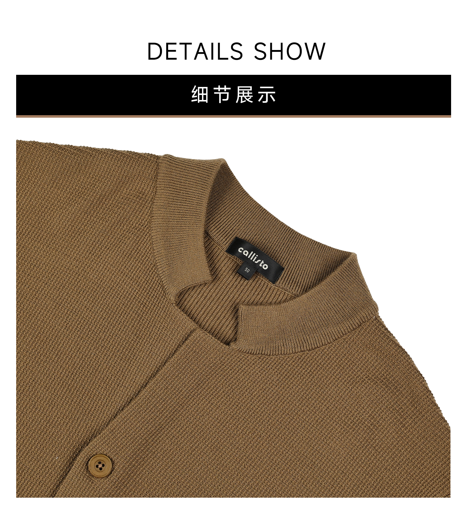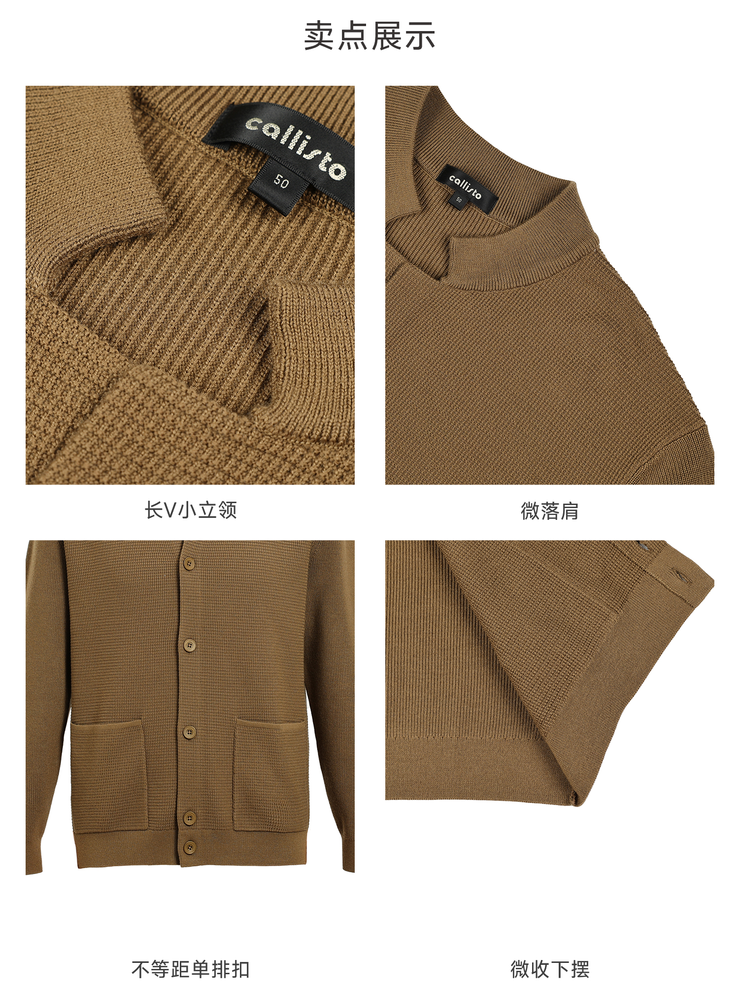 callisto燕麦卡其长V小立领针织开衫