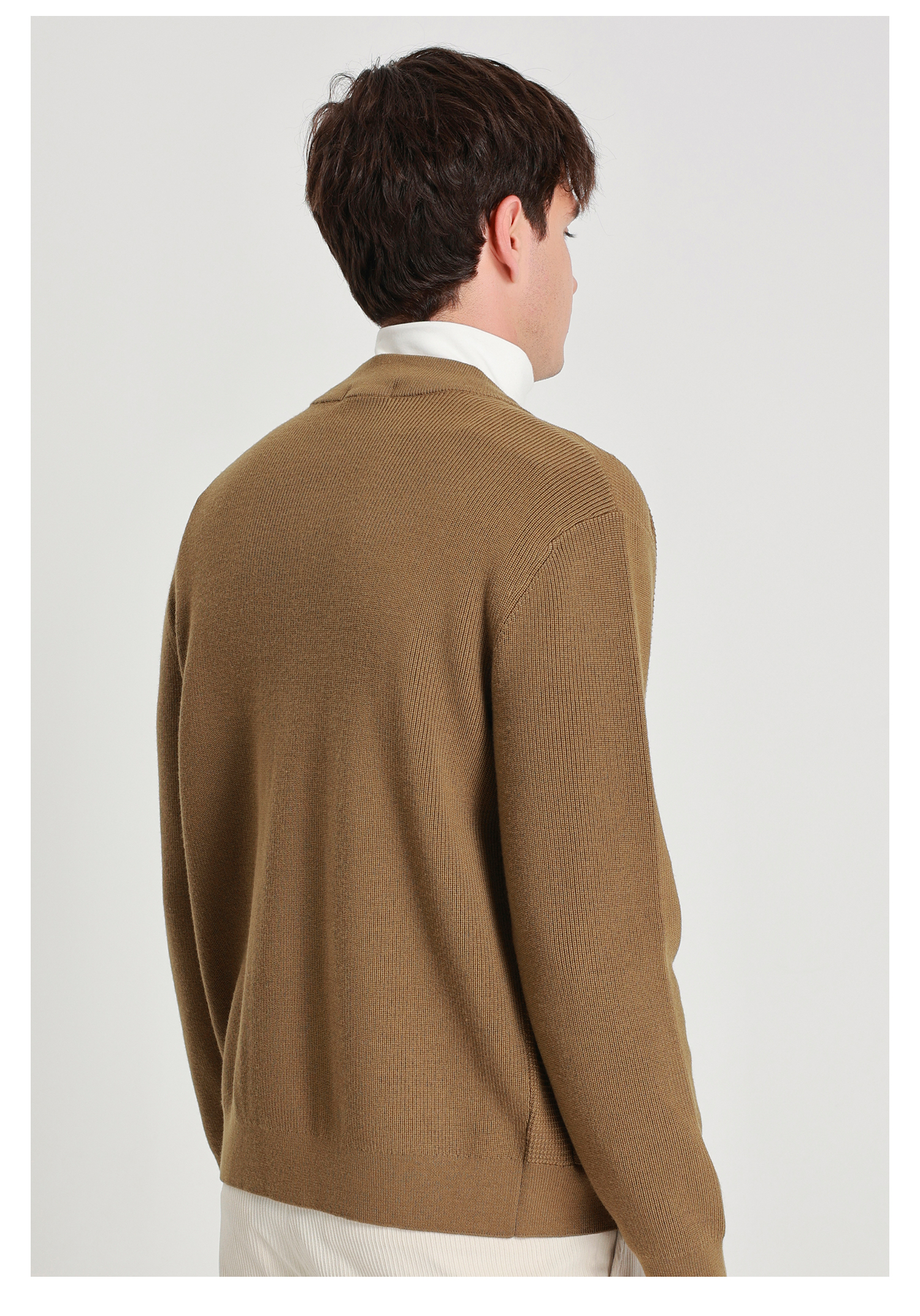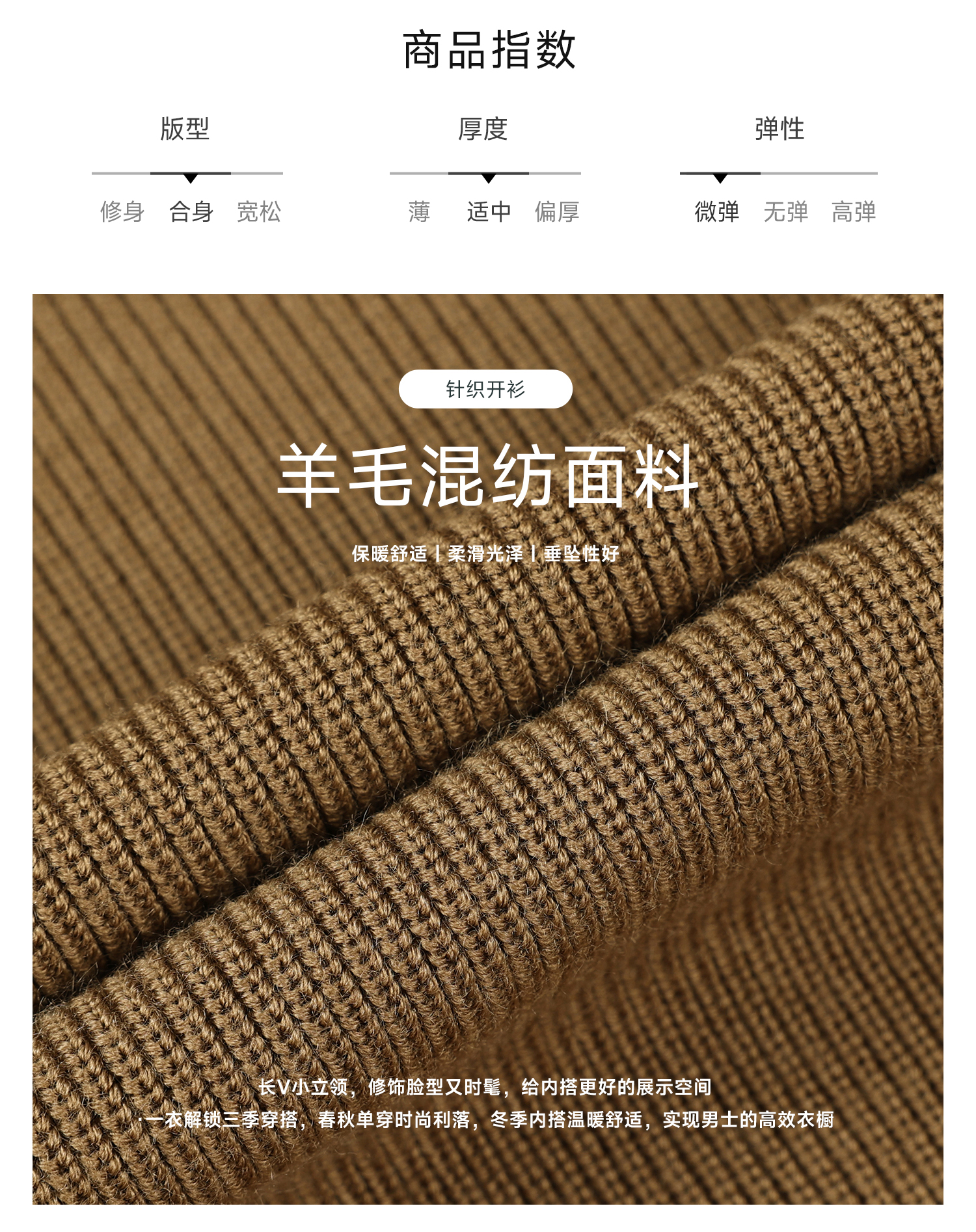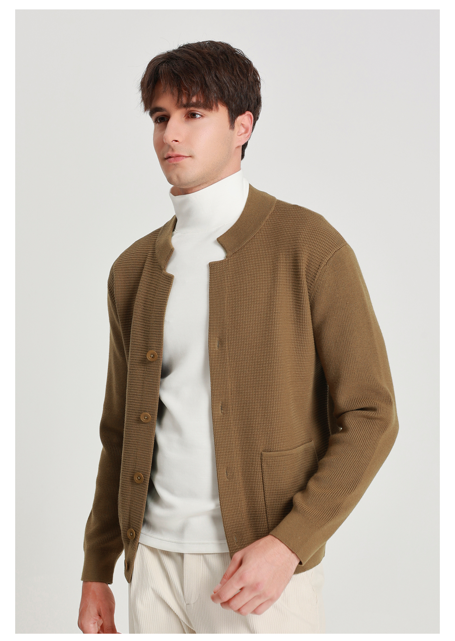 callisto燕麦卡其长V小立领针织开衫