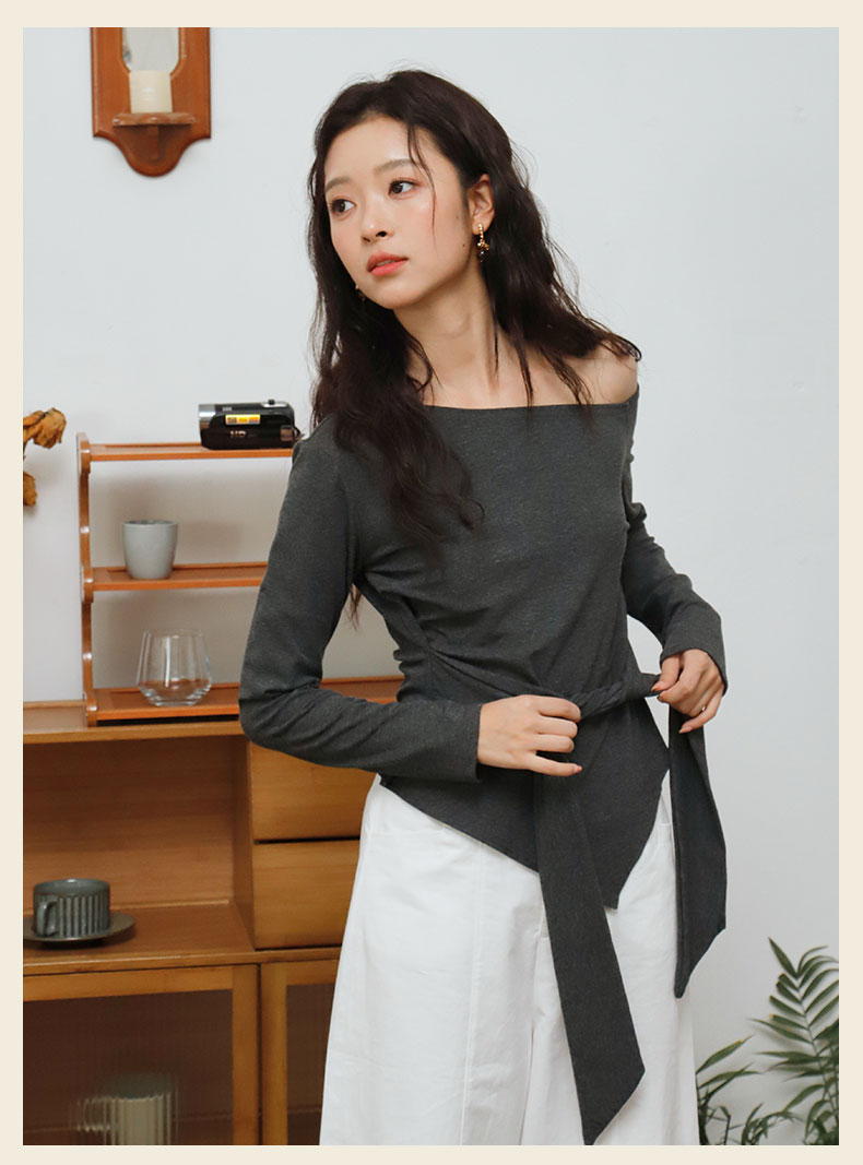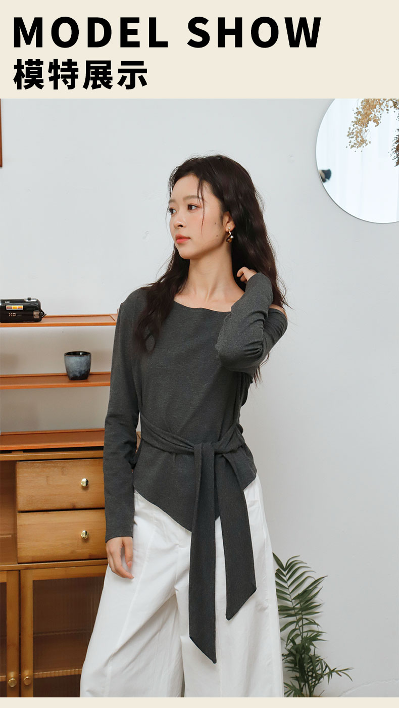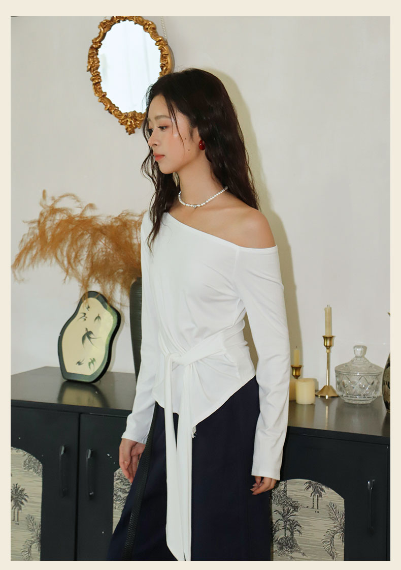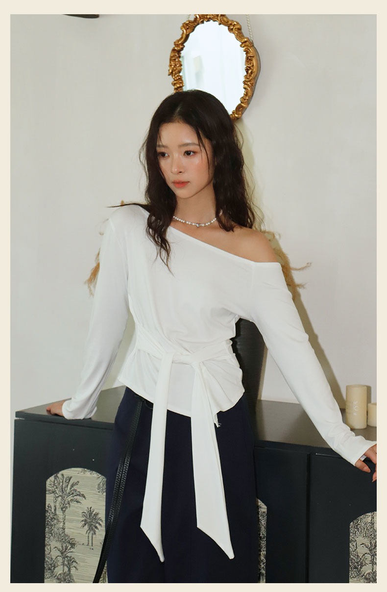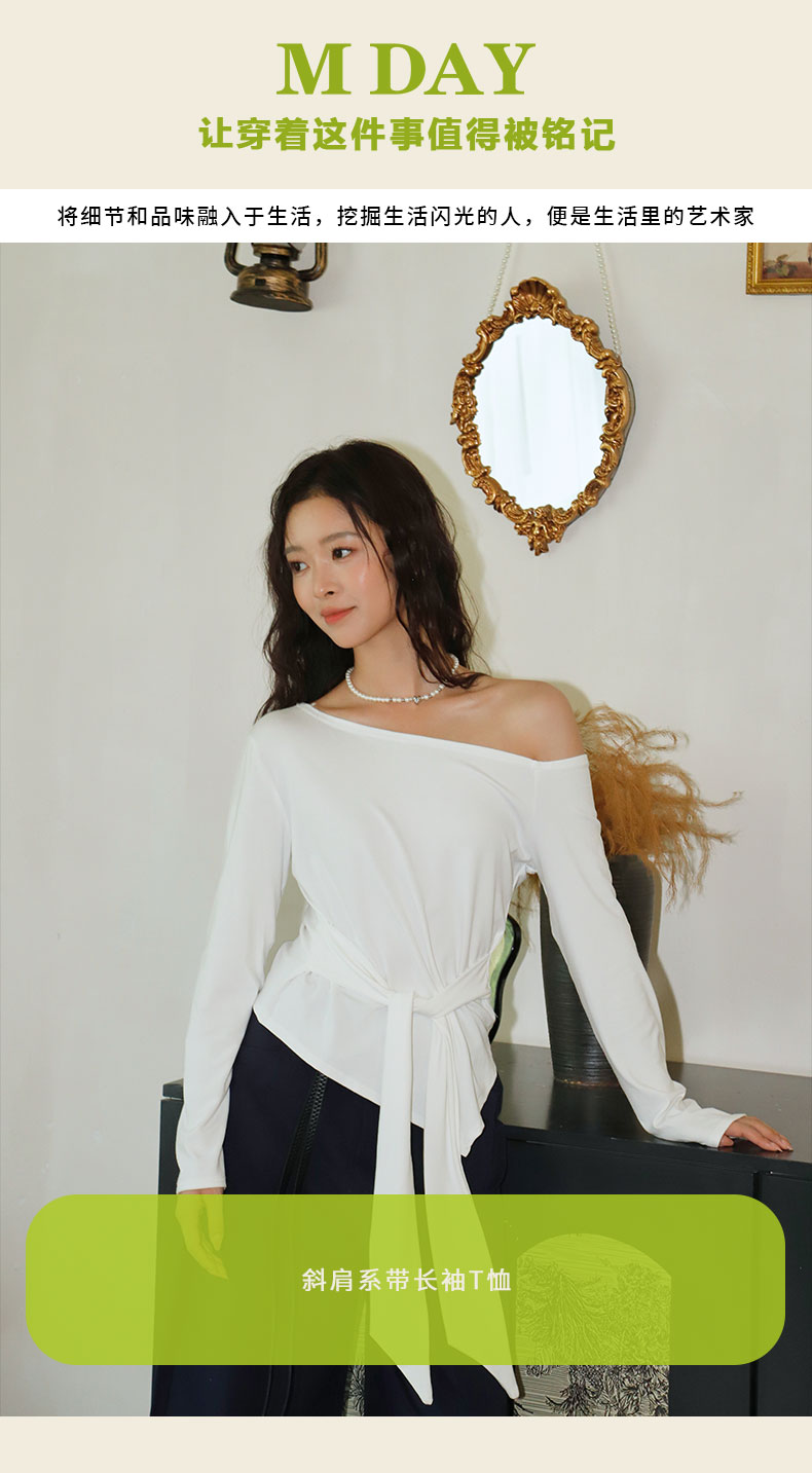 斜肩系带长袖T恤-纪念日百货门店同款164893503