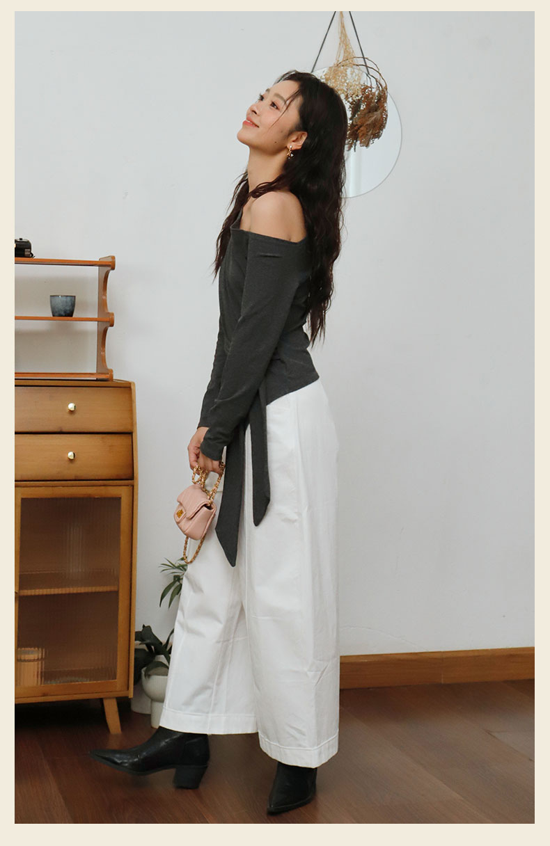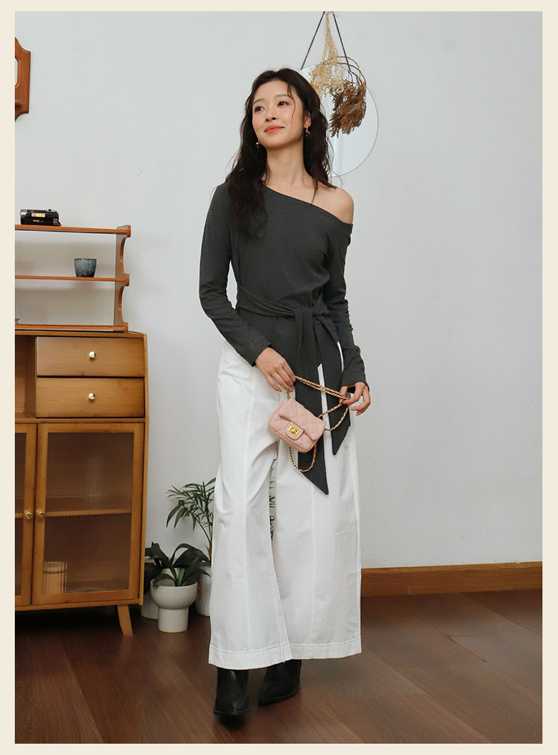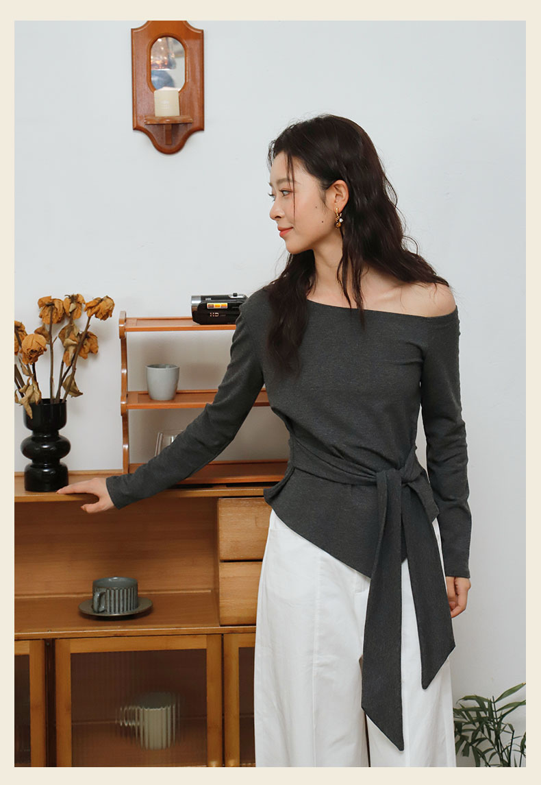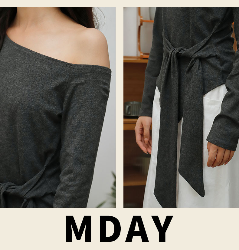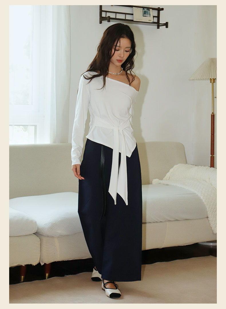 斜肩系带长袖T恤-纪念日百货门店同款164893503