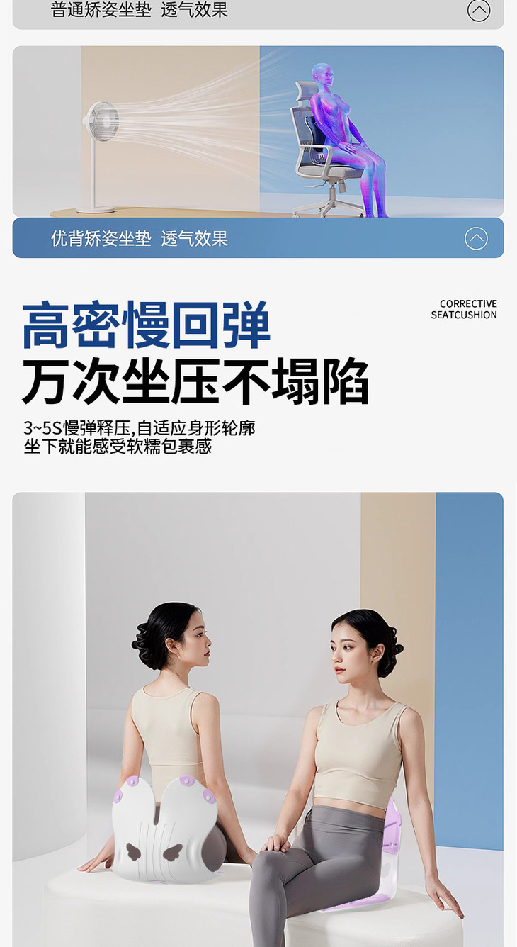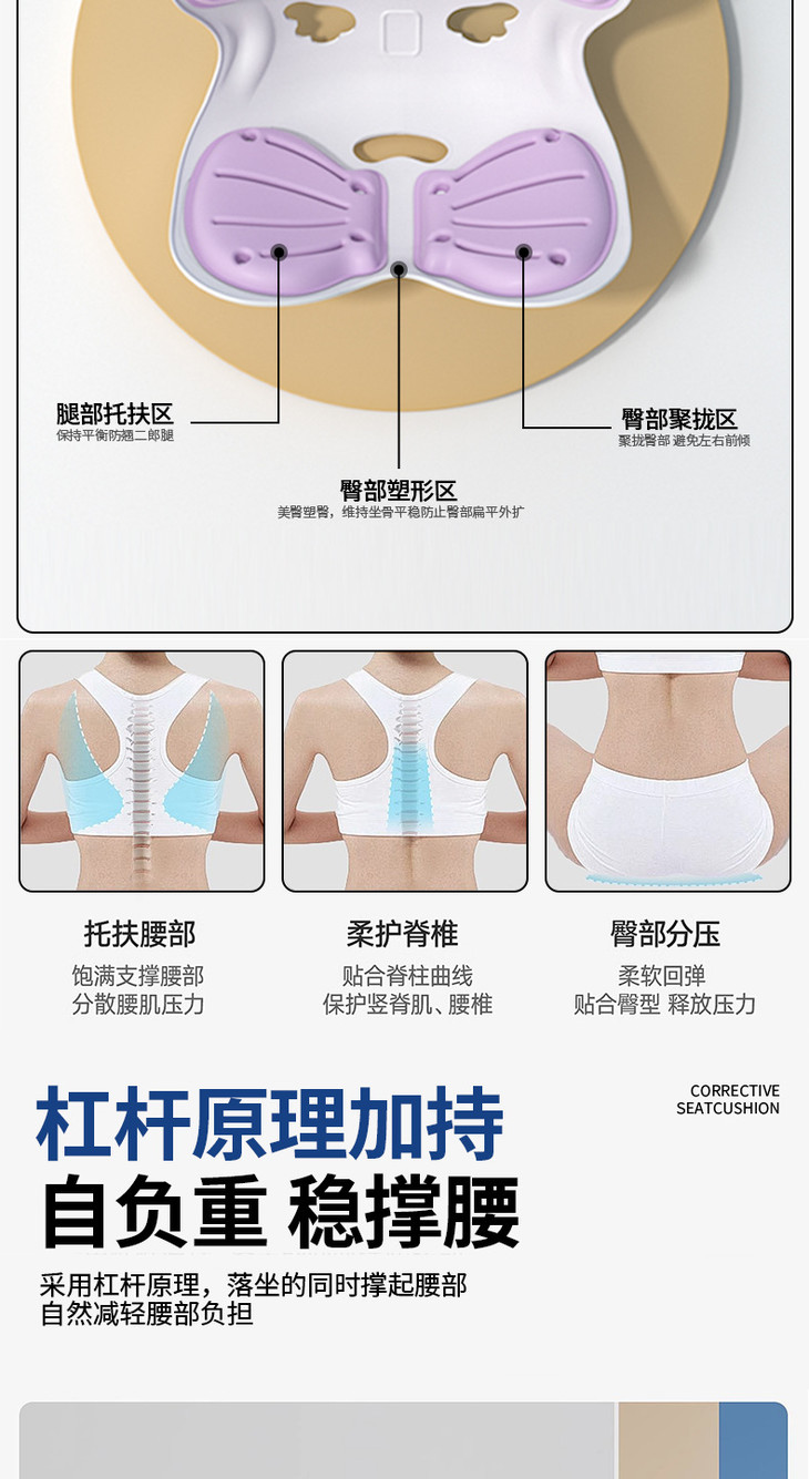 成人办公室护腰靠垫可拆卸学生坐垫椅坐垫坐姿椅矫正坐姿久坐不累