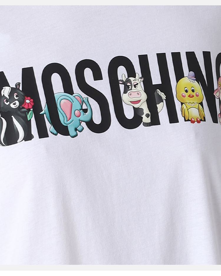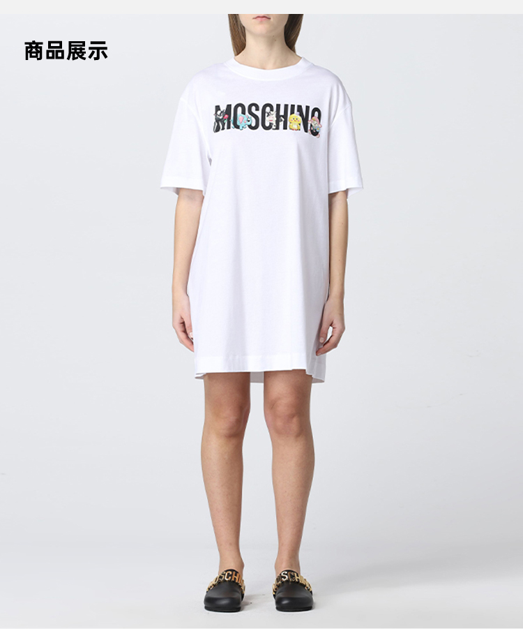 MOSCHINO 莫斯奇诺 女士棉质字母徽标印花圆领短袖T恤裙 白色 0463 0441 6001