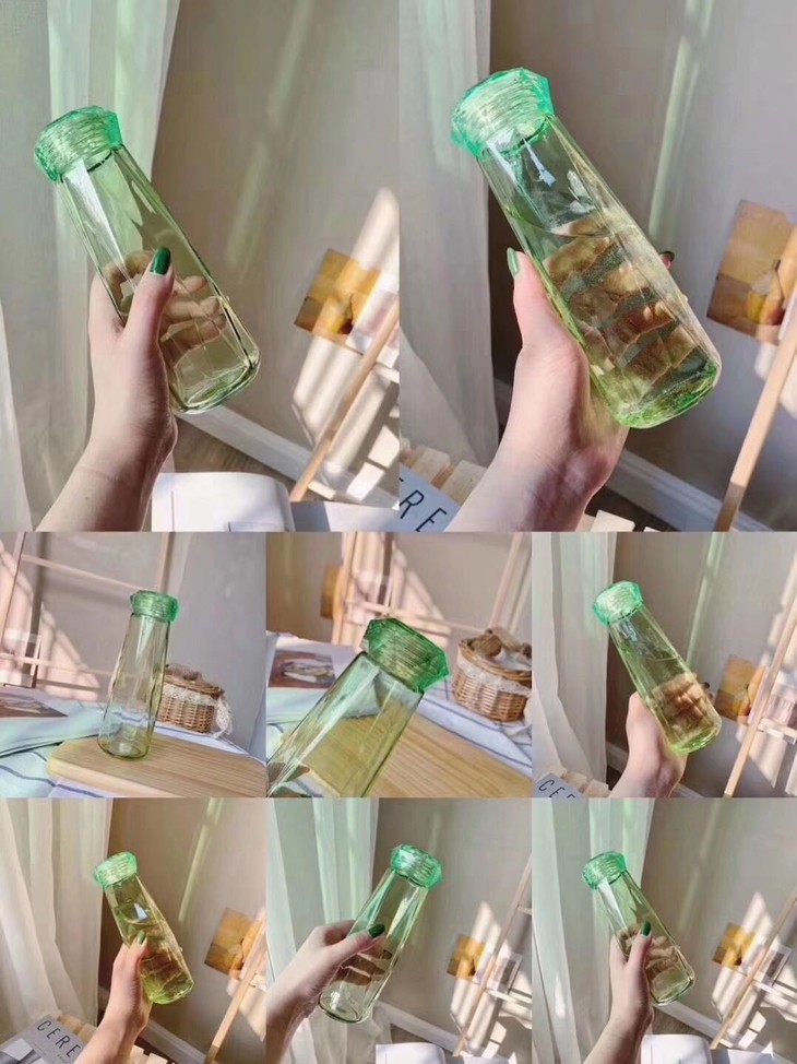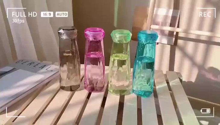 菱形钻石水晶冰杯,菱形切面,钻石时尚设计十螺纹外盖十密封垫十超强密封无铅玻璃,食品级材质,夏日水晶钻石冰杯