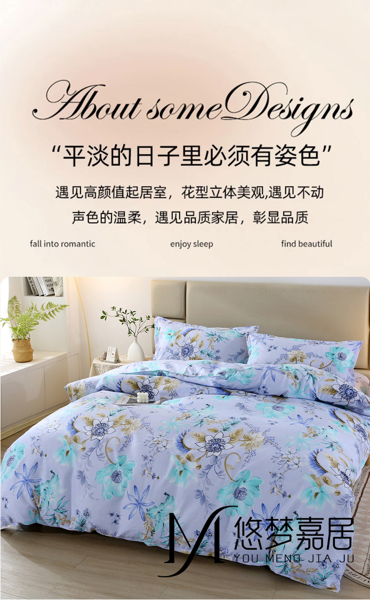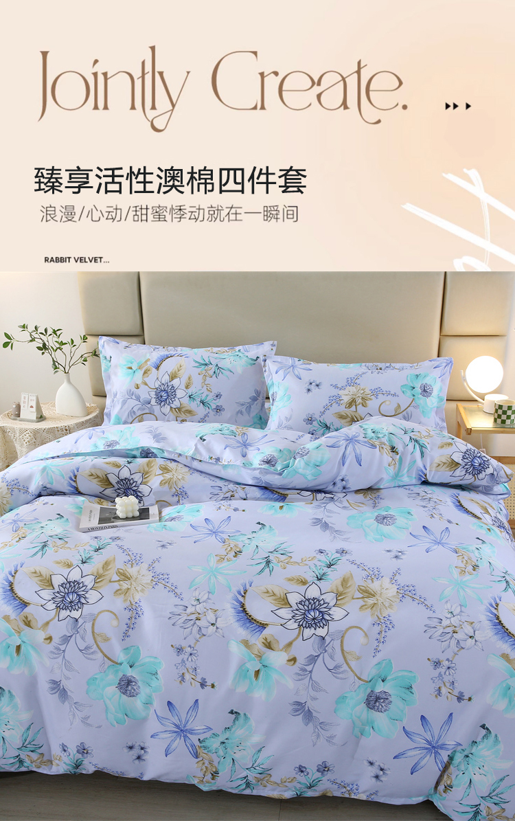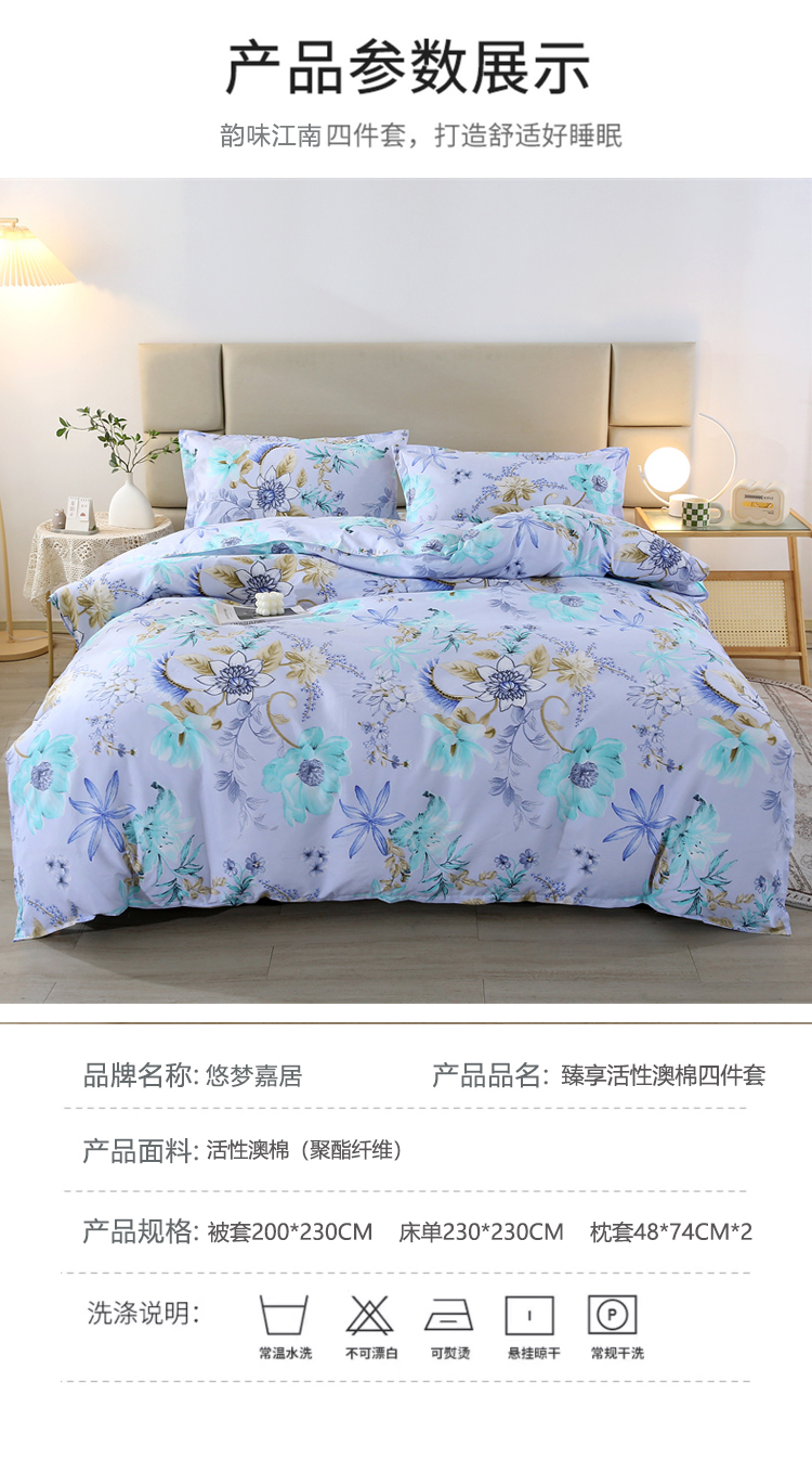 悠梦嘉居臻享活性澳棉四件套活性印染磨毛布印花套件双人四件套1.5/1.8床通用