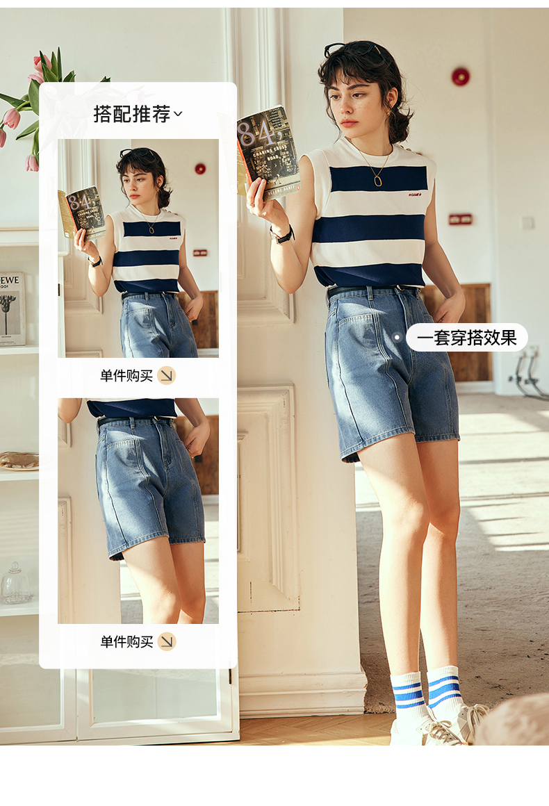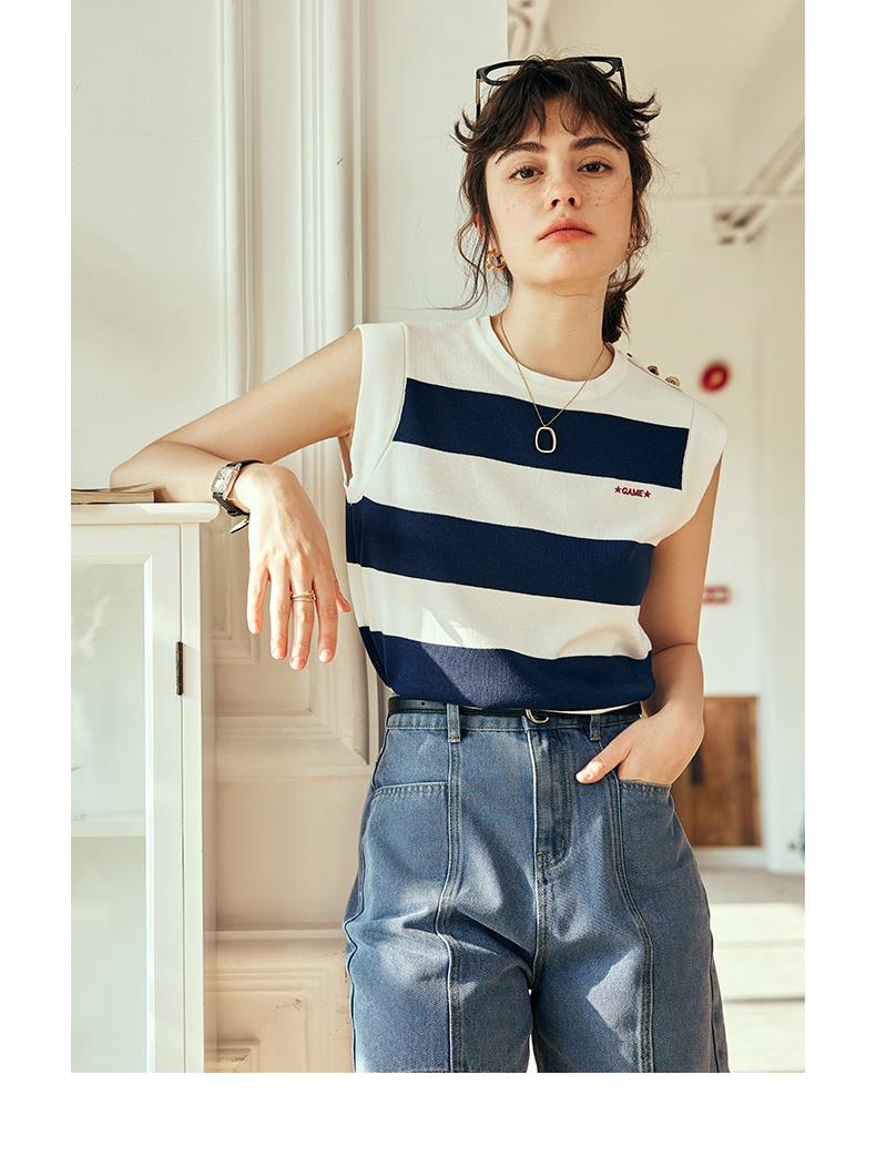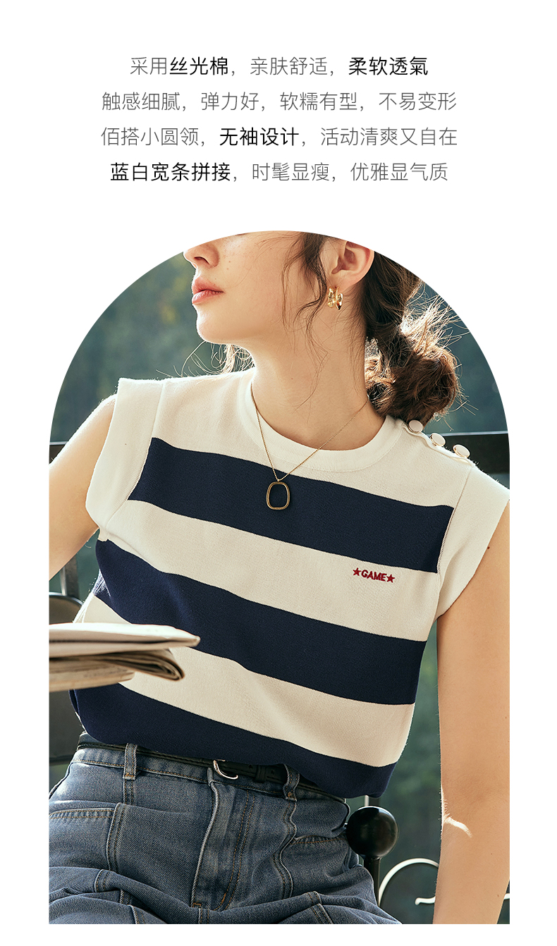 OLrain欧芮儿法式蓝白条纹针织衫女夏季2023新款字母刺绣无袖背心