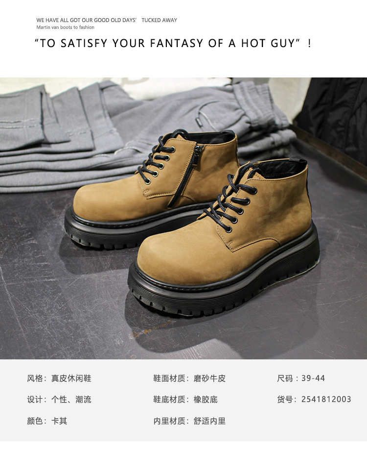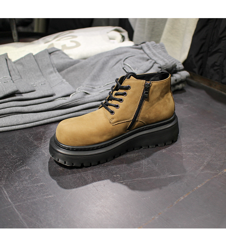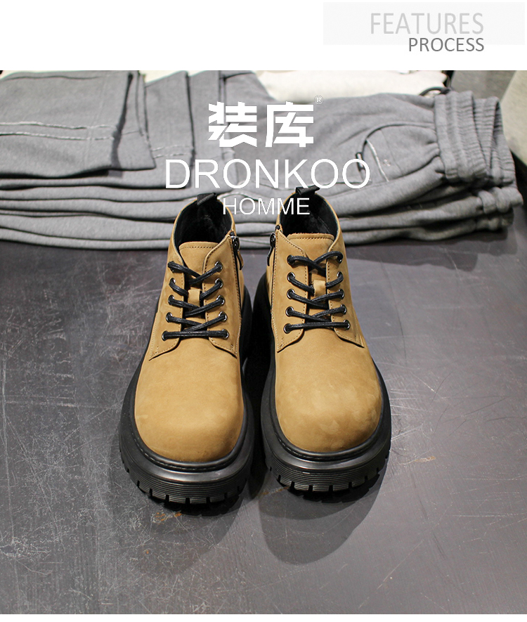 DRONKOO 2025 系带内侧拉链德比大头中帮真皮休闲鞋