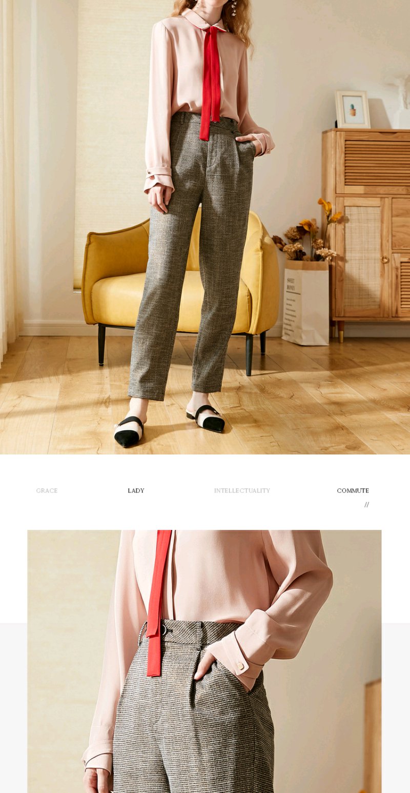 欧芮儿 新款高腰显瘦格子休闲裤女英伦风哈伦裤直筒裤
