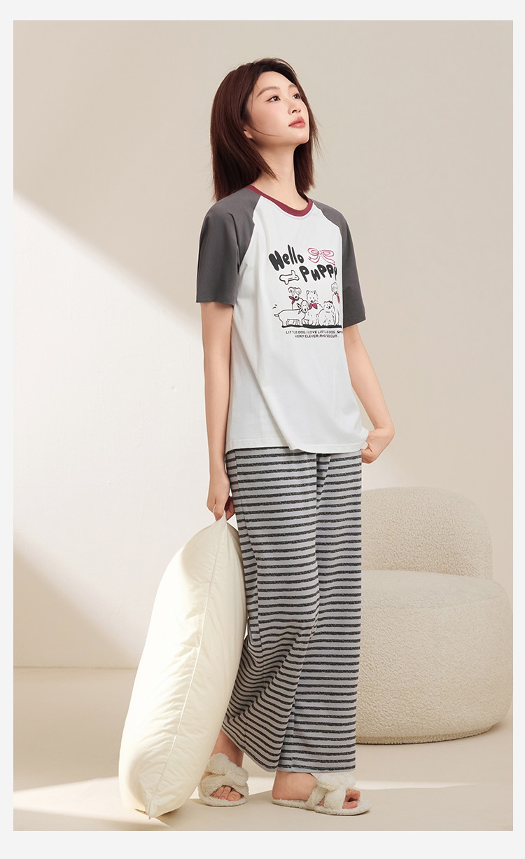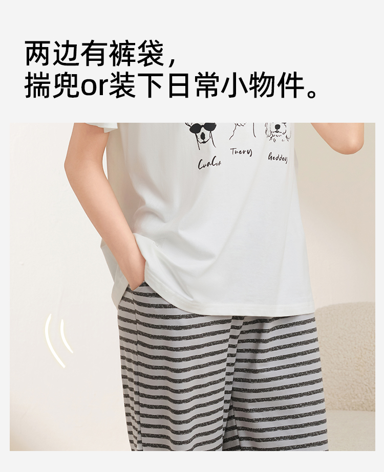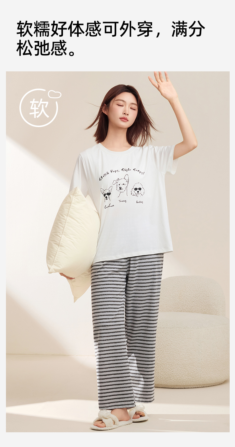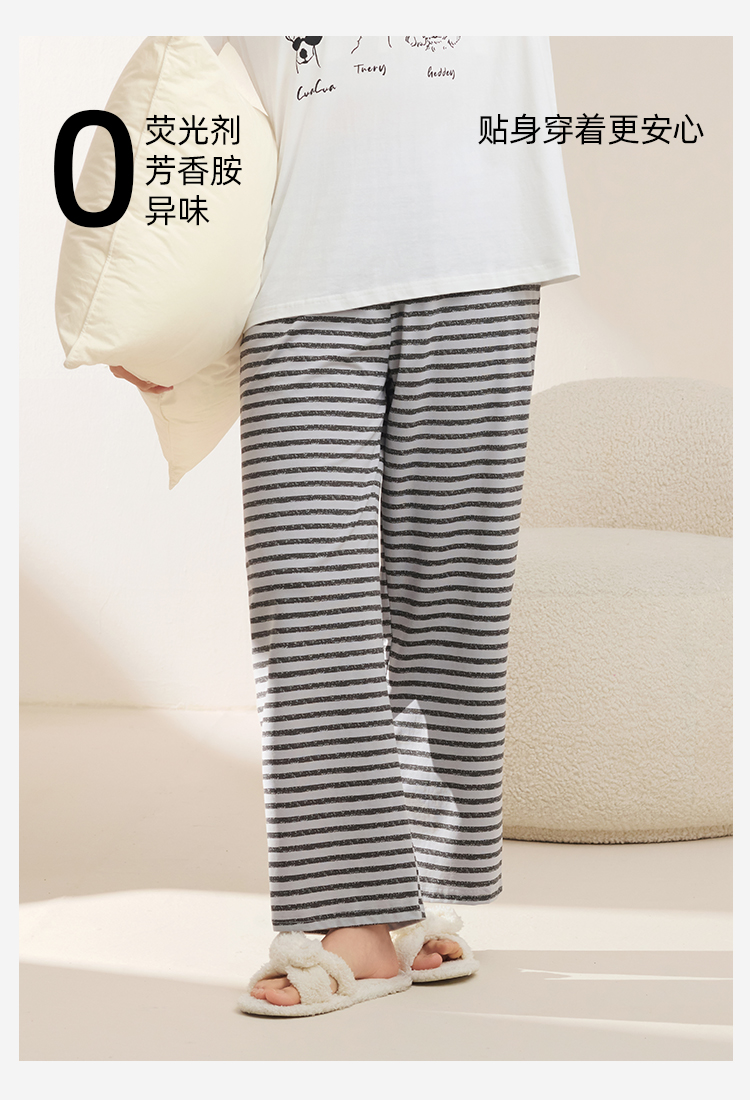 熳洁儿 时尚休闲裤条纹家居裤94%棉四季百搭可外穿25263201