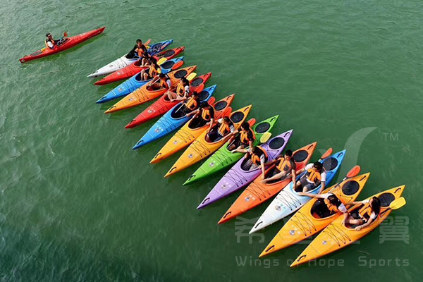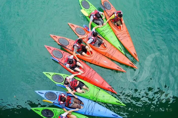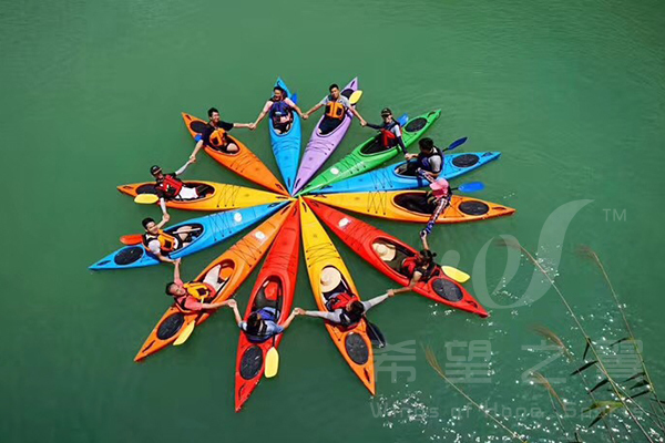皮划艇课程体验既具备常规拓展训练的紧张刺激,又带有水上活动特有的娱乐性,在水天一色间,释放激情感悟指数极高。