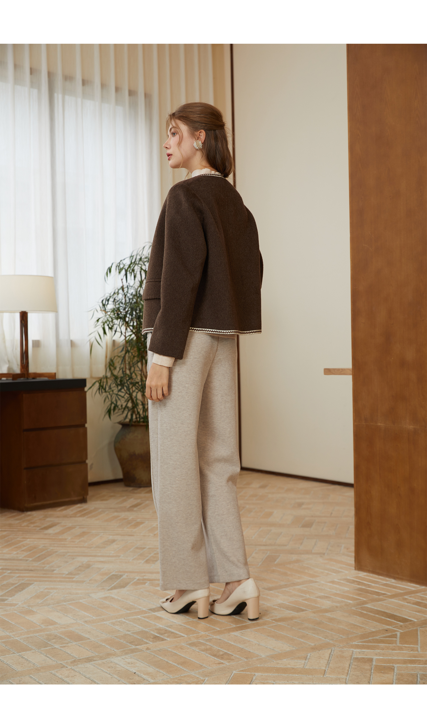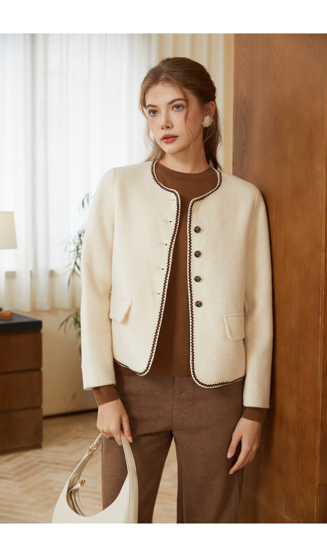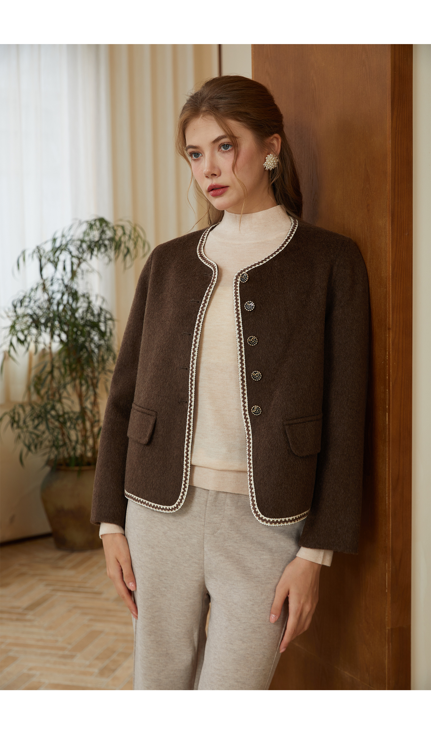 司歌绵羊毛双面尼短外套纽扣秋冬女Q92G0932