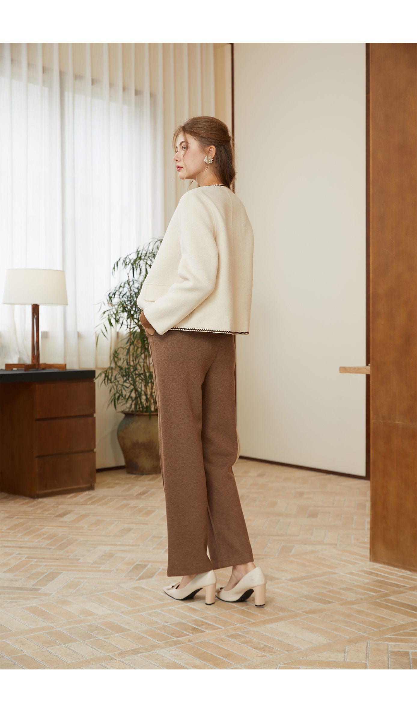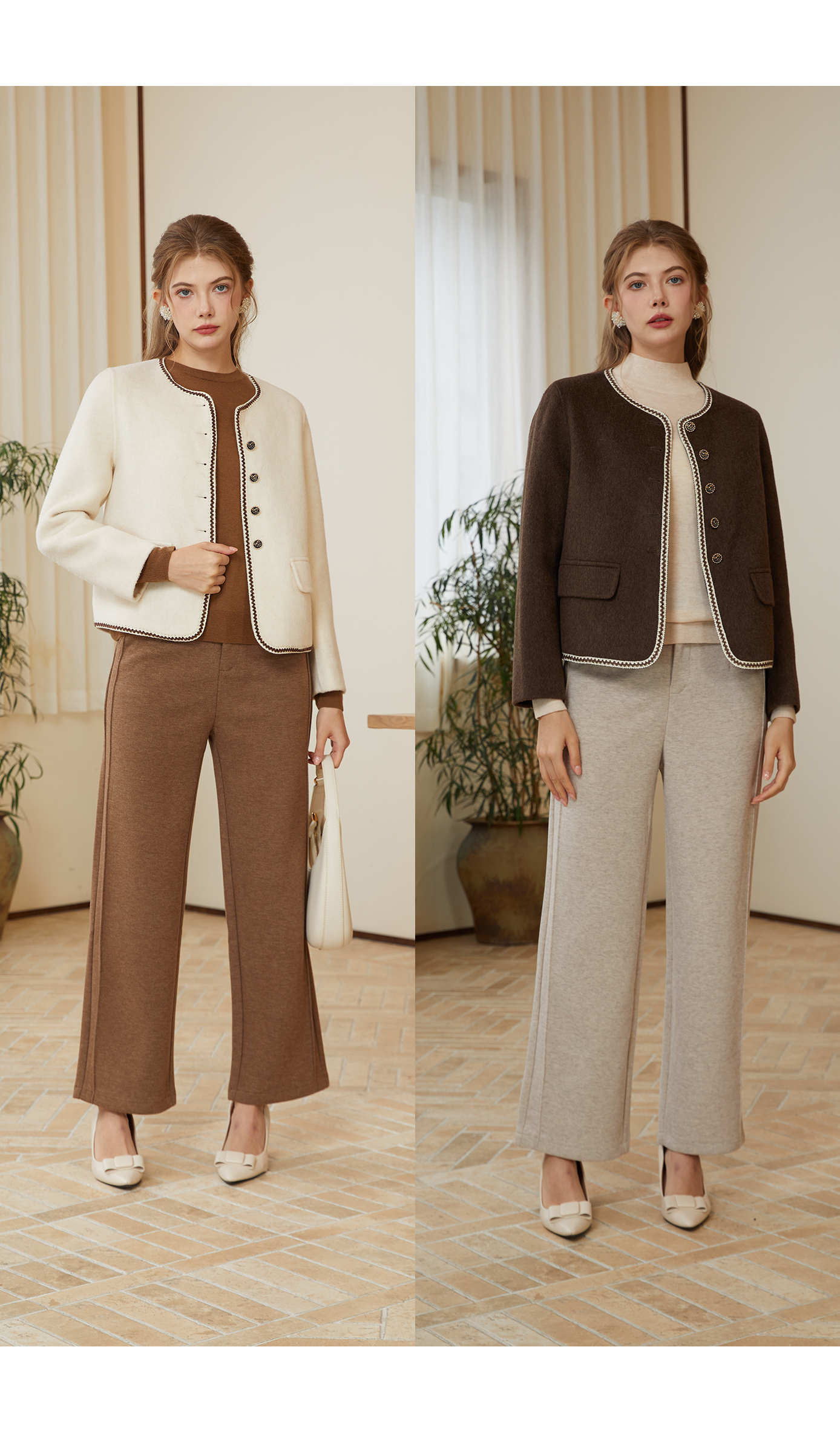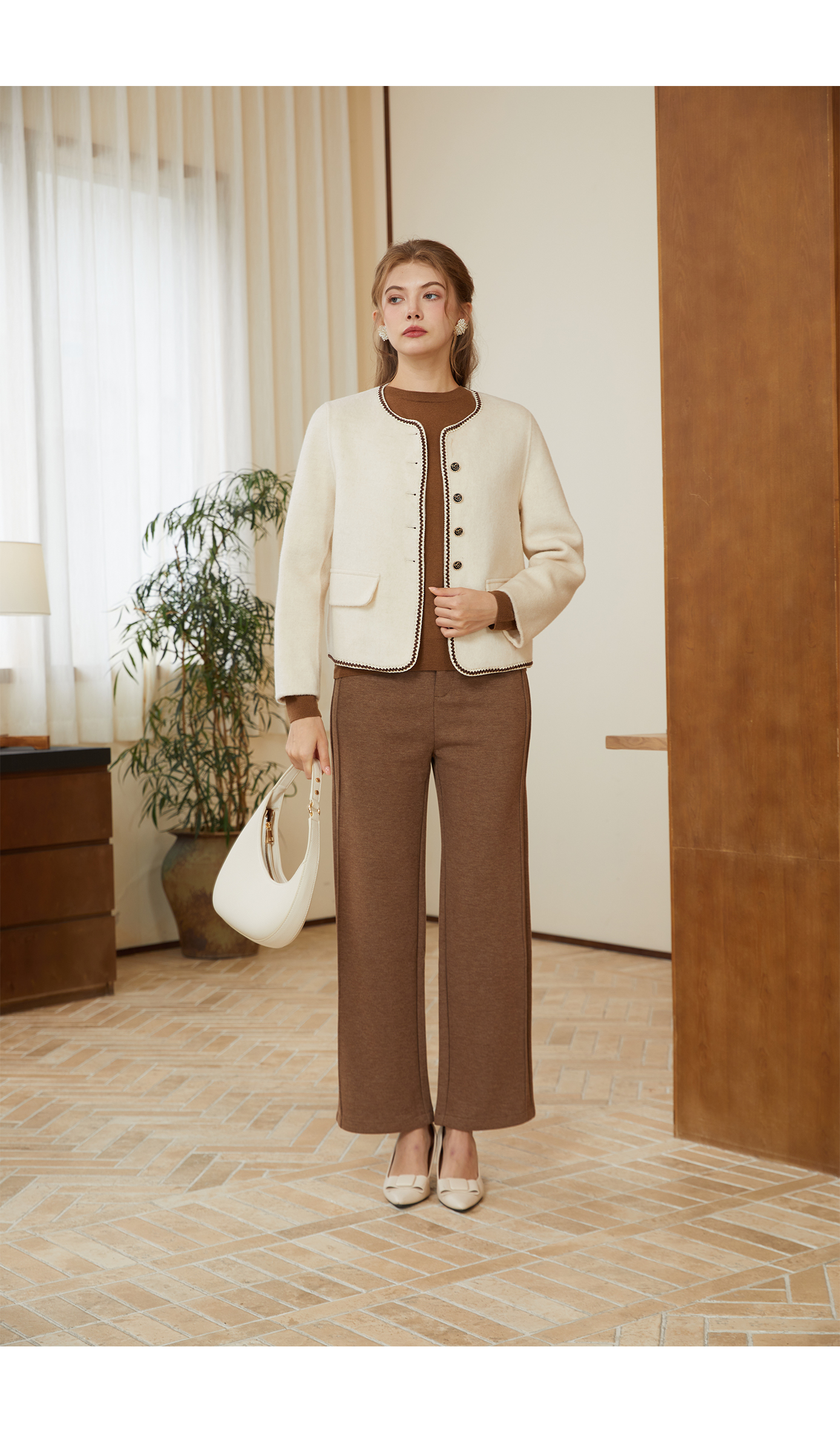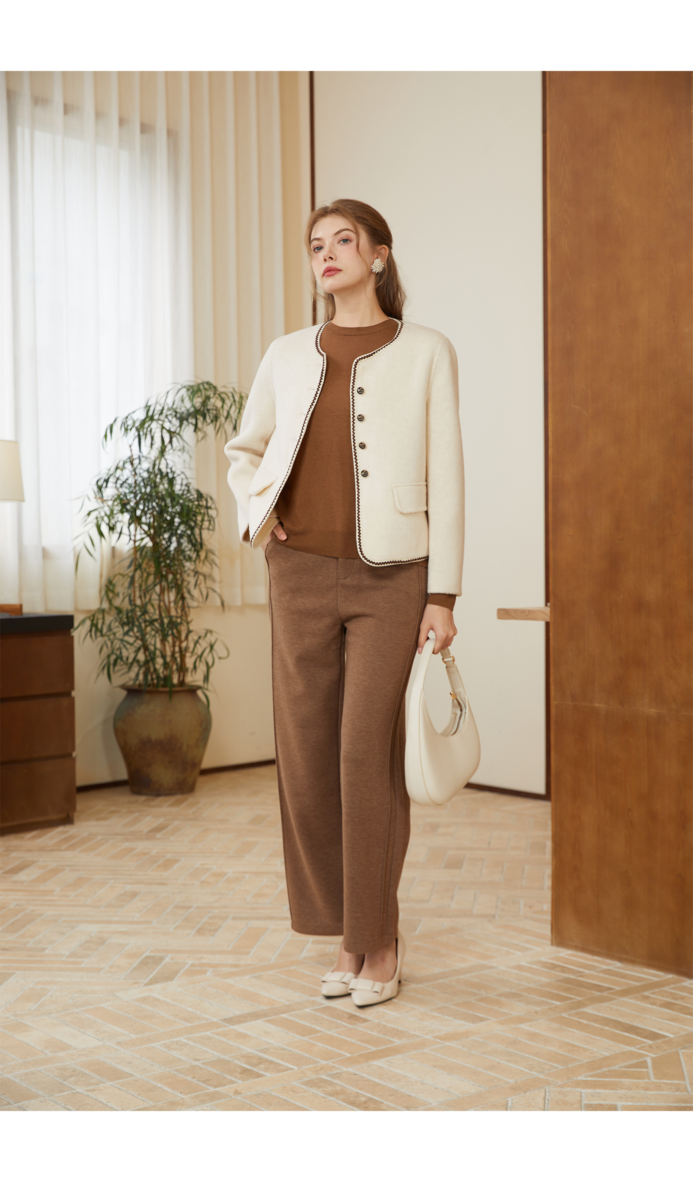 司歌绵羊毛双面尼短外套纽扣秋冬女Q92G0932