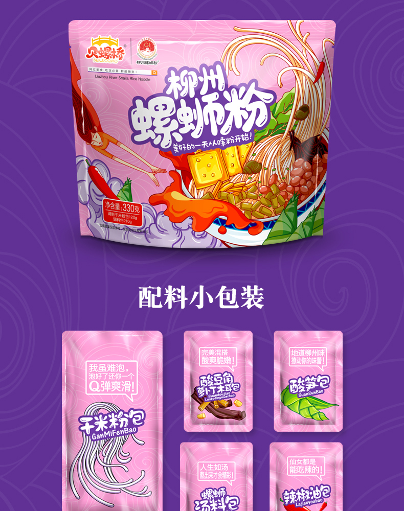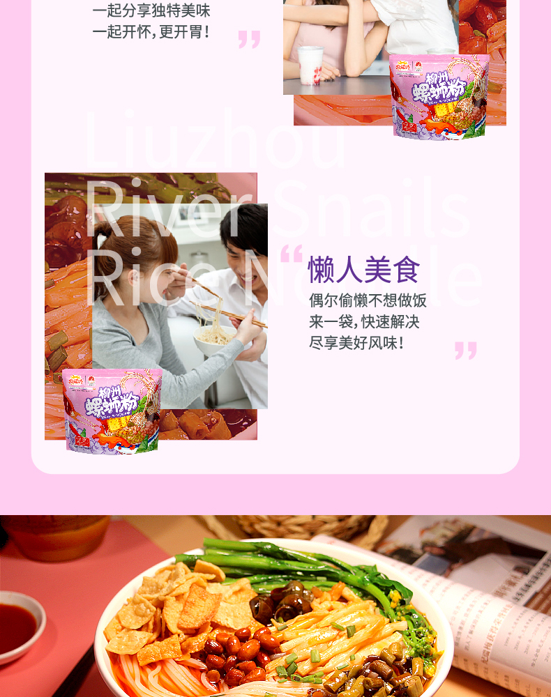 【尝鲜装】贝螺桥螺蛳粉*3包(粉色)广西特产柳州正宗螺狮粉螺丝粉米线速食酸辣粉
