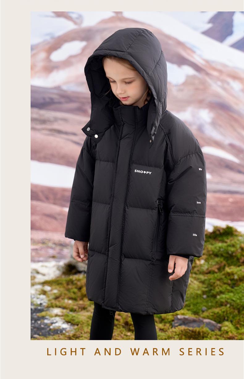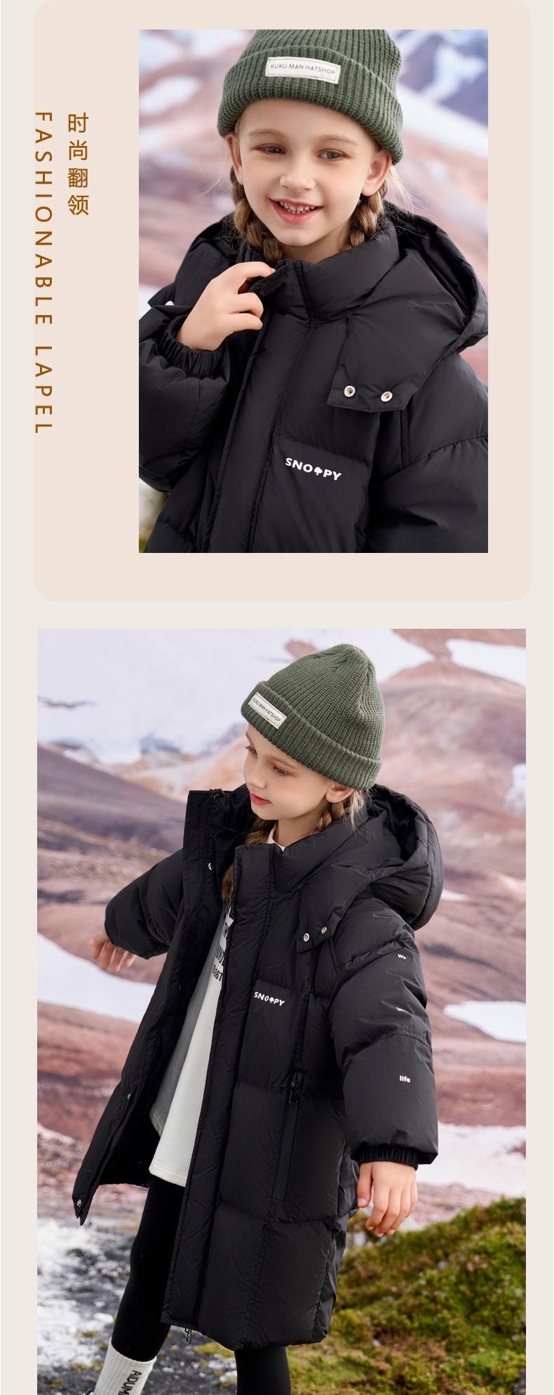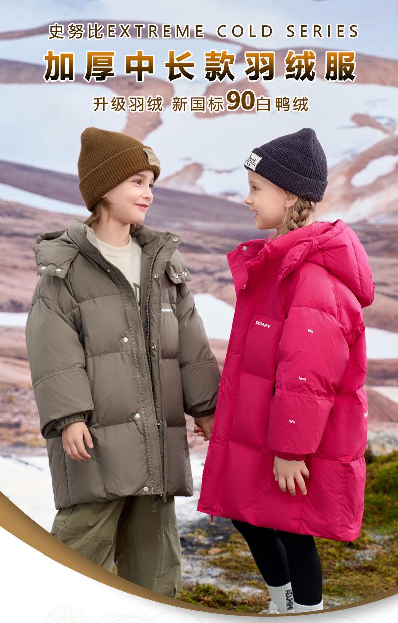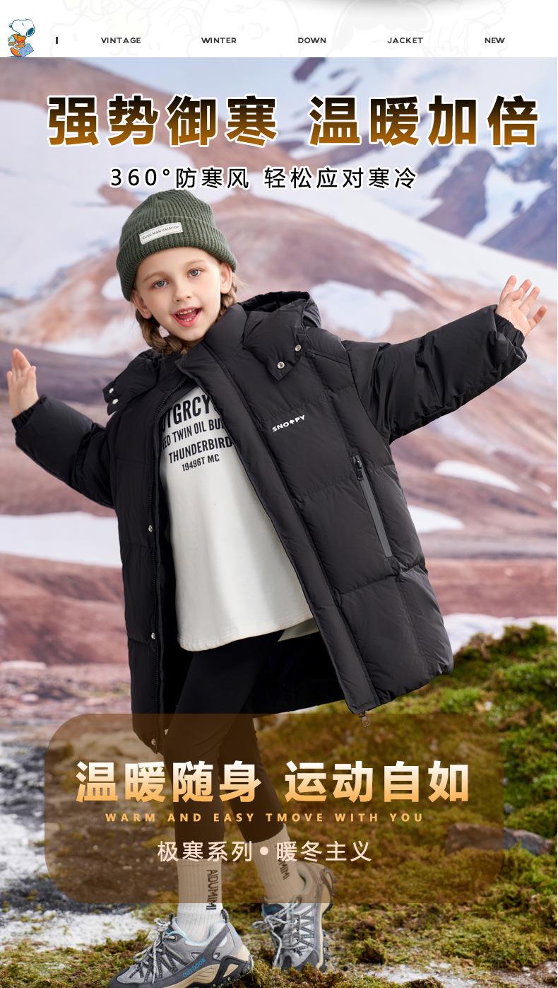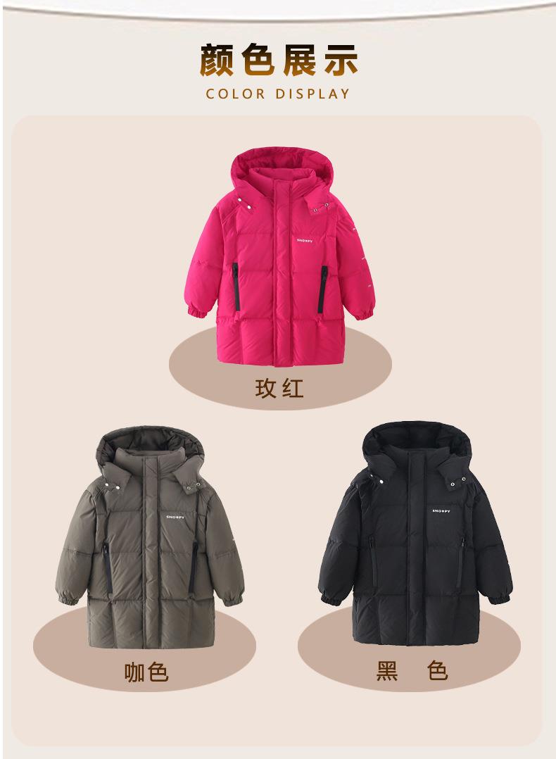 史努比儿童羽绒服加厚2024新款韩版中长款中大童冬季连帽保暖外套