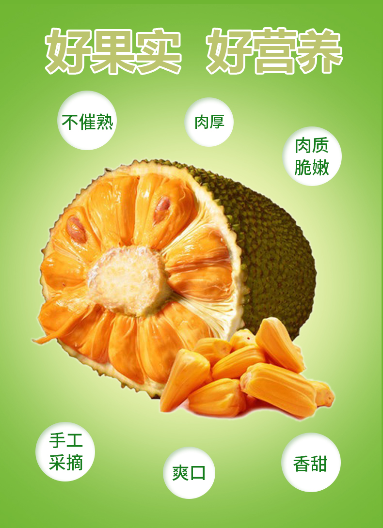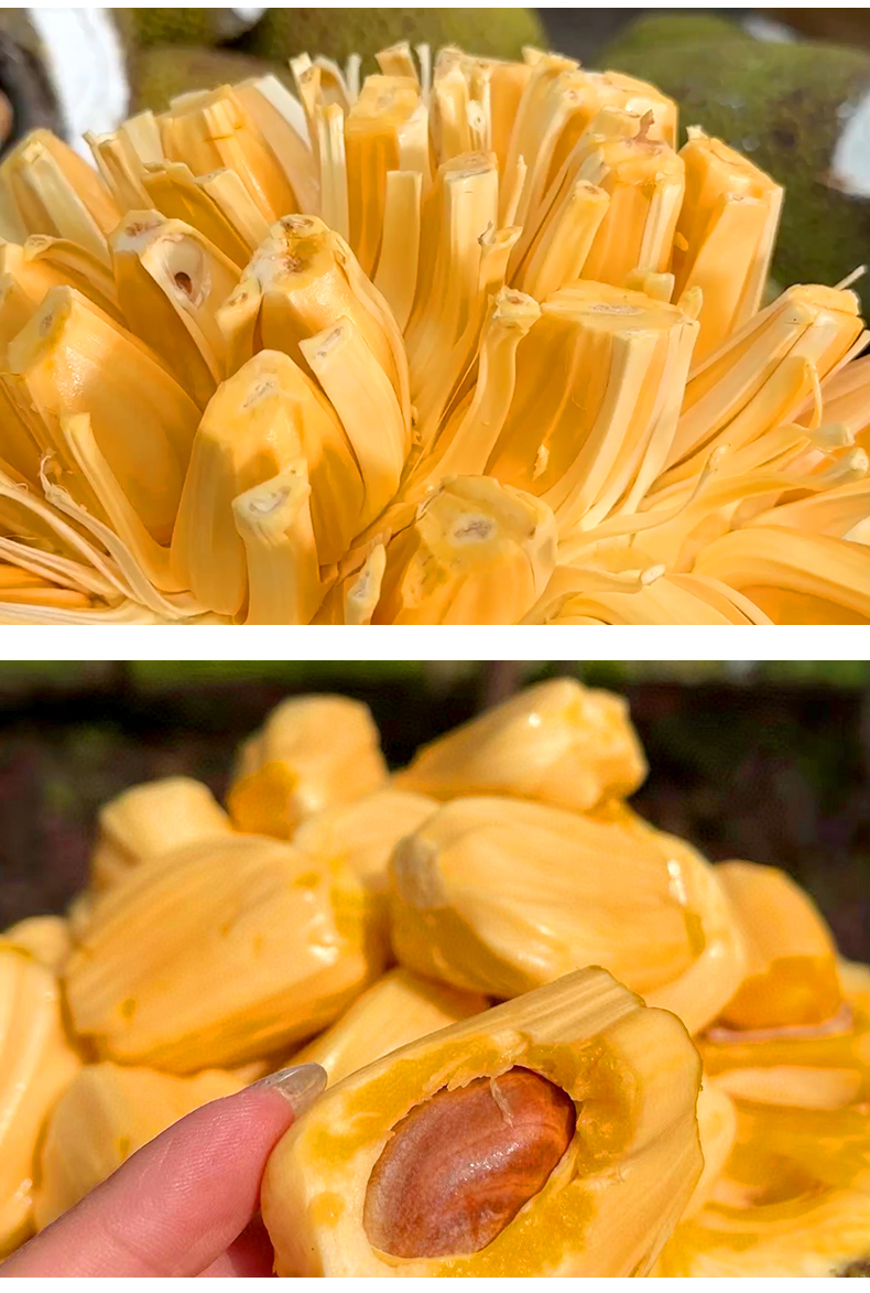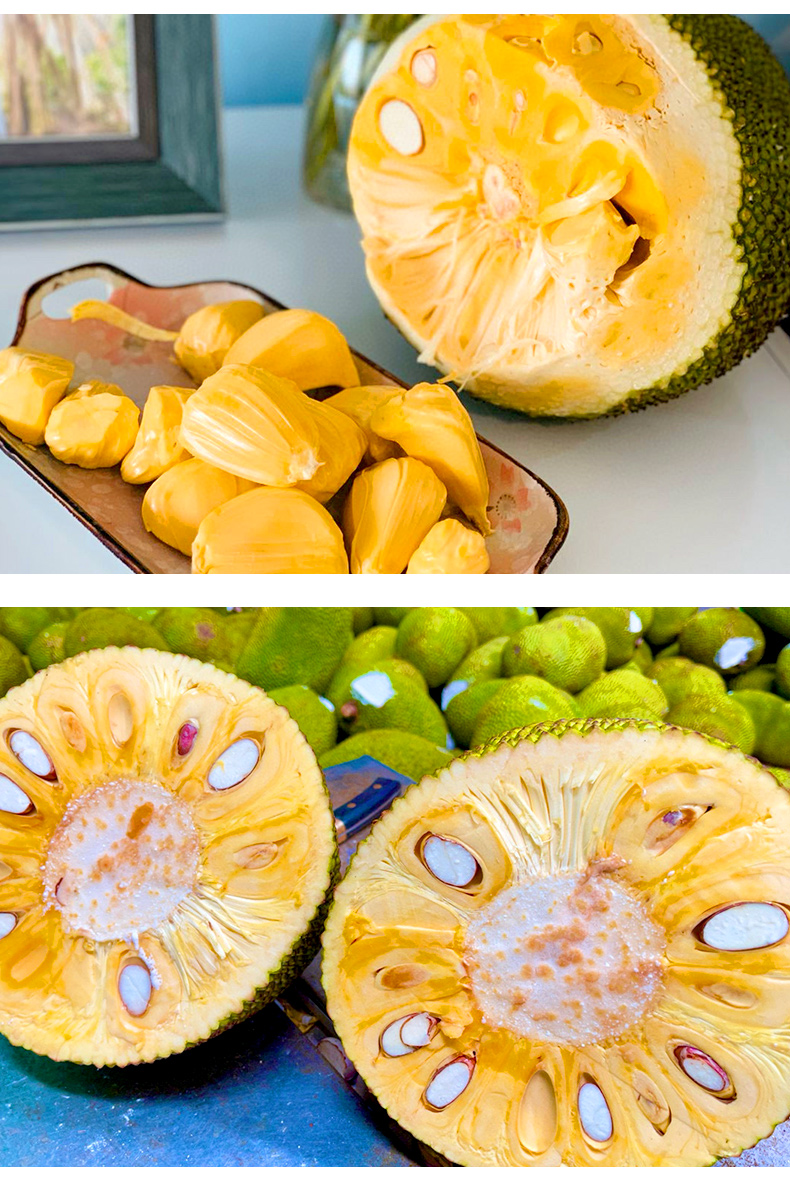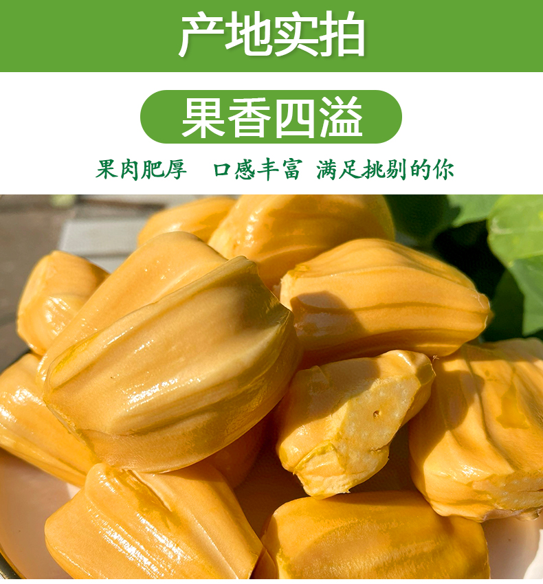 【温馨提示】菠萝蜜8-9成熟,收到用手按软了,有香味发出才熟哦,不熟别切开,按菠萝蜜的行规,生果切开不售后,售后时是按坏的比例赔付(拒绝坏一部分就说整个坏了不能吃了或者果子已经扔了的买家)。到件24小时内务必签收验货,如有问题请将果子和快递面单合拍(不要分开拍,无面单不受理)发给我们备案和跟进,否则超时坏果不售后