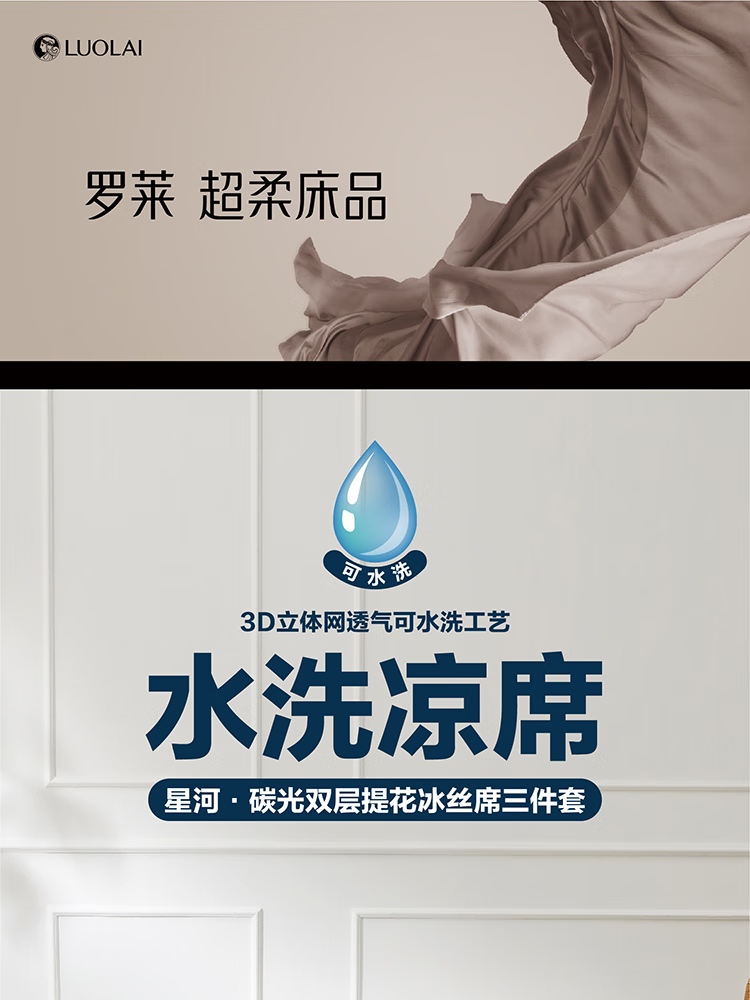 【罗莱 星河·碳光双层提花冰丝席三件套】 180*200cm 3D立体网透气可水洗工艺