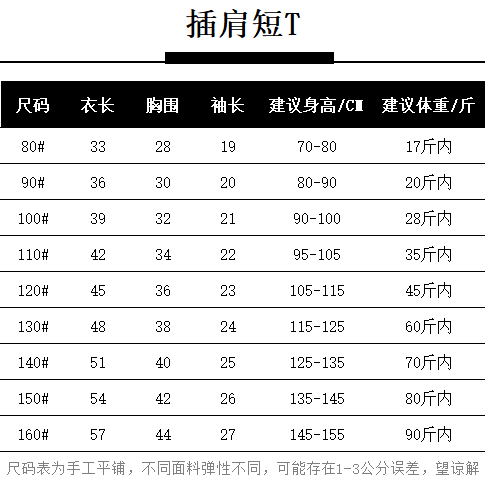 短T三个小花款尺码表: