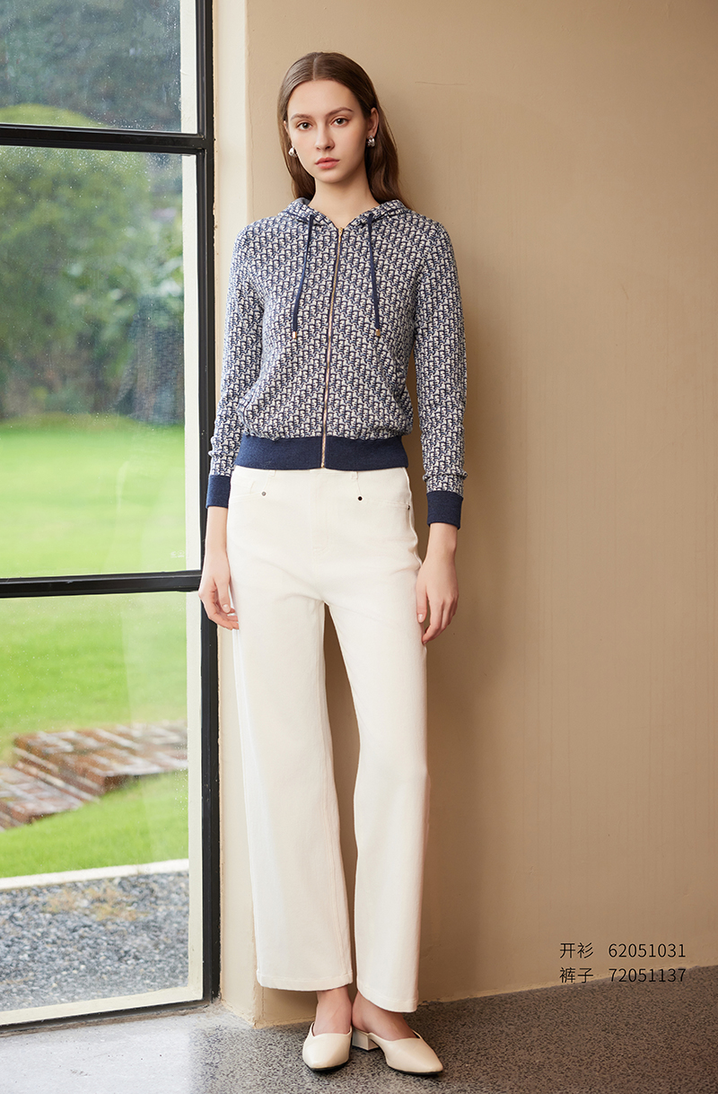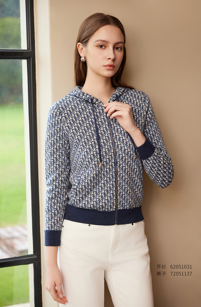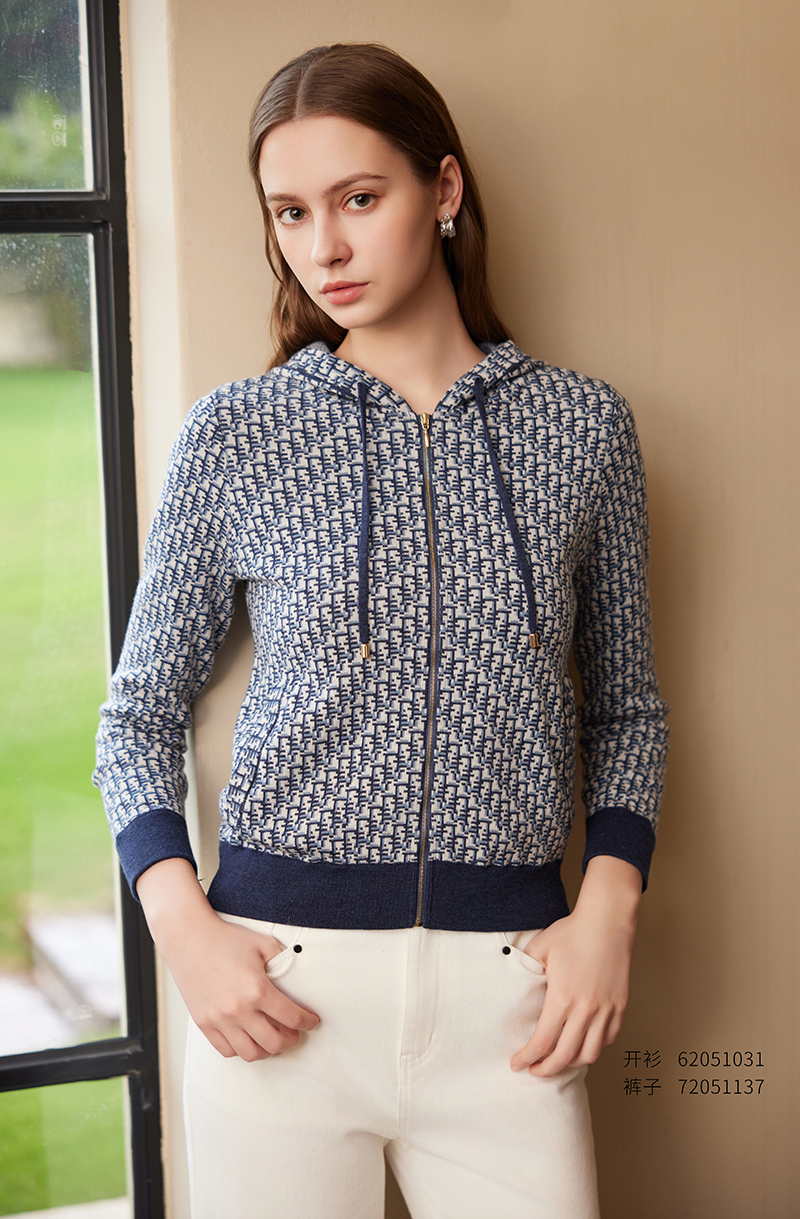 【连帽针织运动衫】25年春夏新品女士100%羊毛衫时尚九分袖针织外套